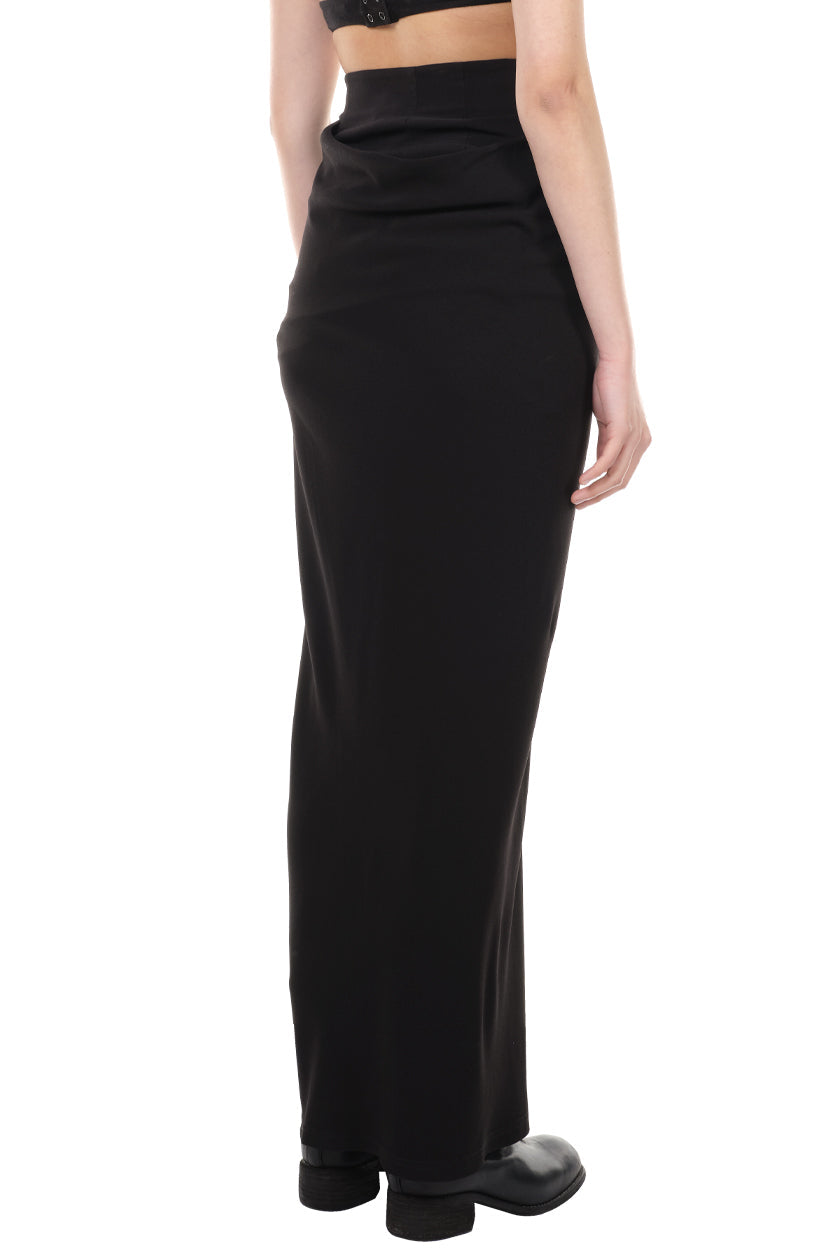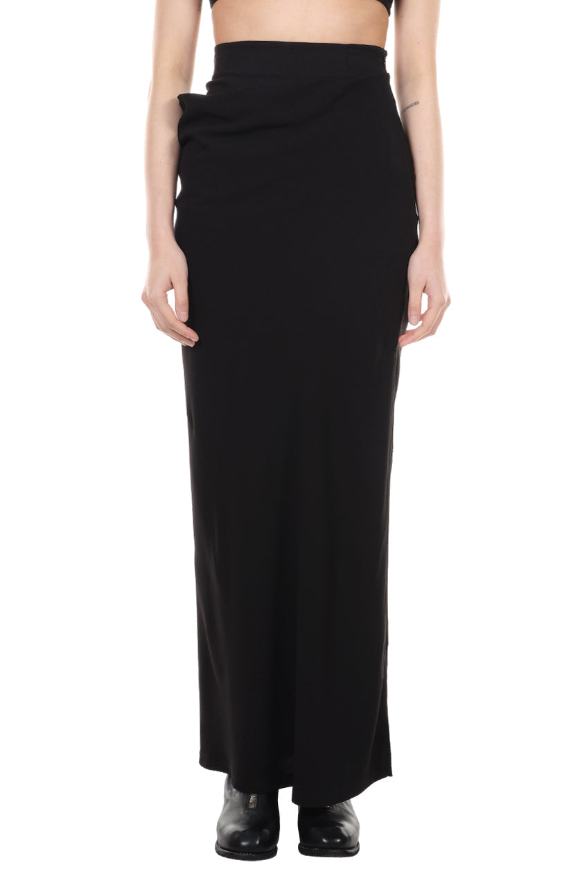 OUDE WAAG strikes a balance between Asian aesthetics and Western cutting. It is at the heart of designer’s philosophy: celebrating the power of women, yet simultaneously critiquing the ongoing objectification and idealisation of the body as you can see in the Draped Double Layer Slim Skirt from Oude Waag. Short skirt with longer draped layer. Zip closure on side. Soft stretchy fabric. Slit on side. Pocket a back. Slim fit.
