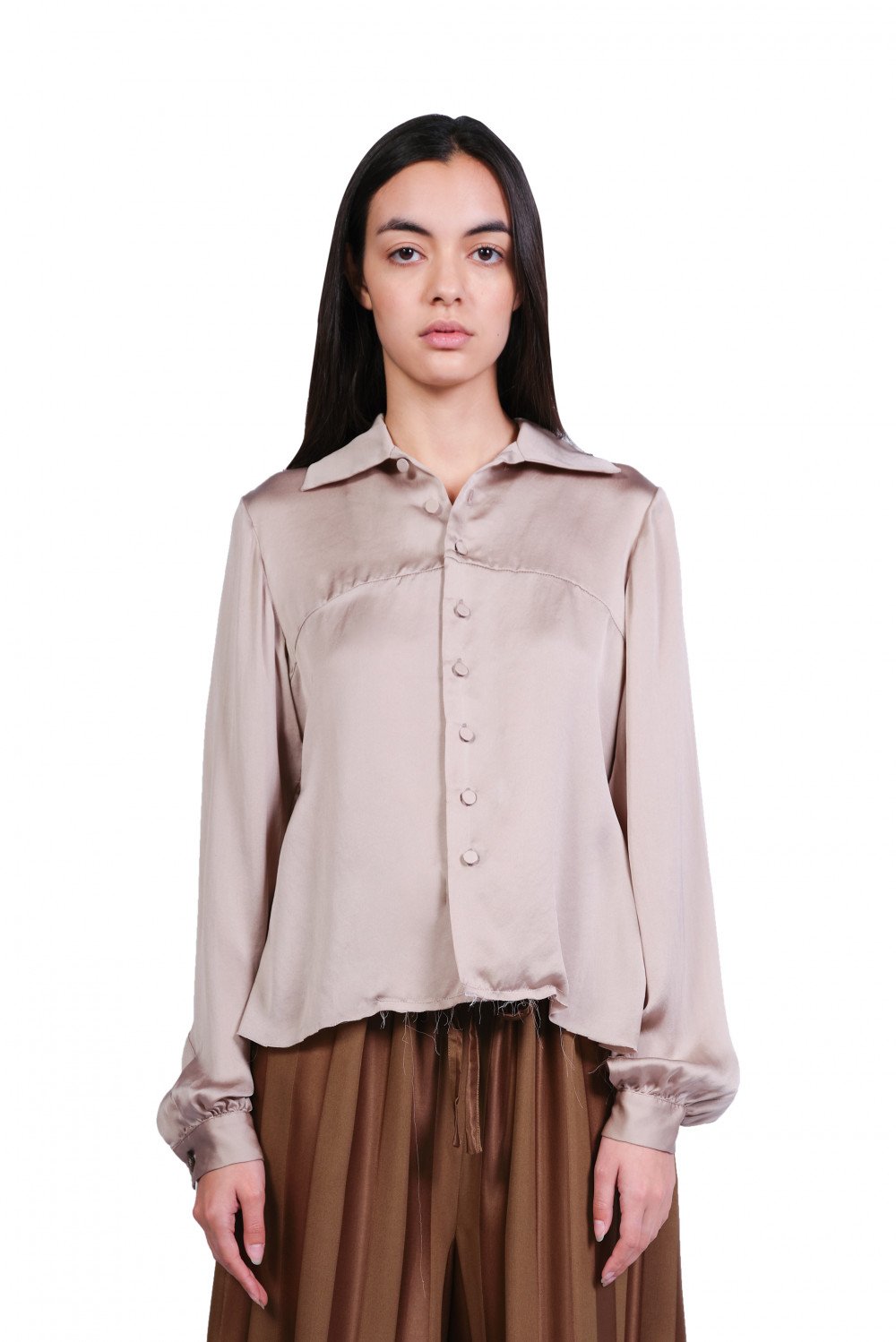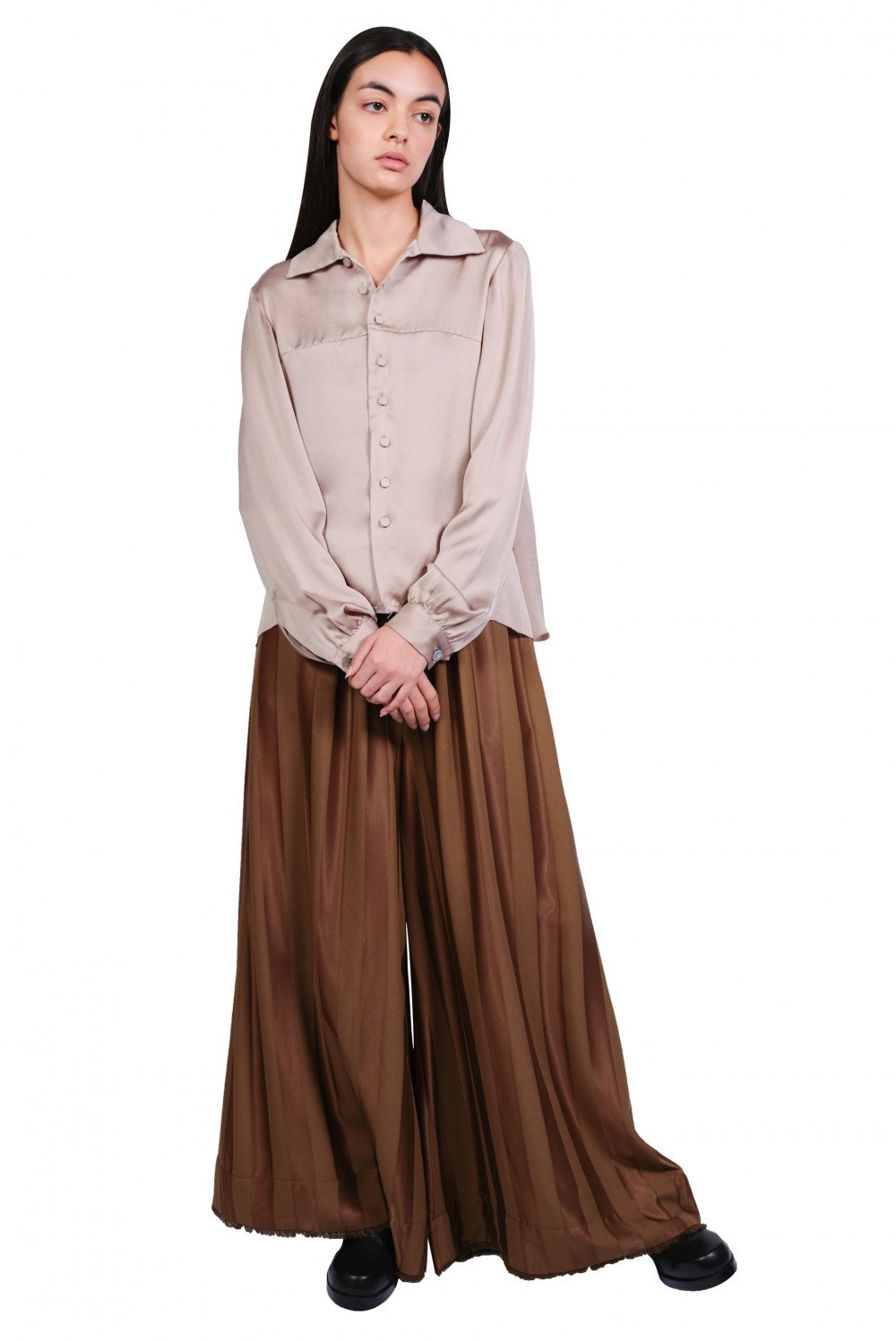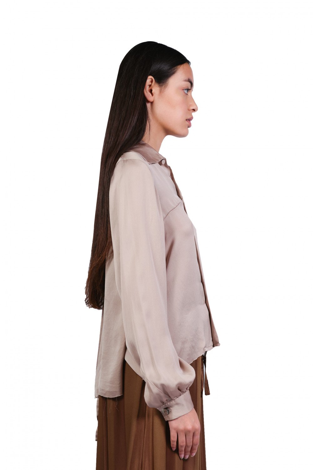 A Tentative Atelier focuses on crafting idiosyncratic collections where each piece of clothing has its own identity, creating a timeless and romantic look as seen in the Drapy Washed Shirt.