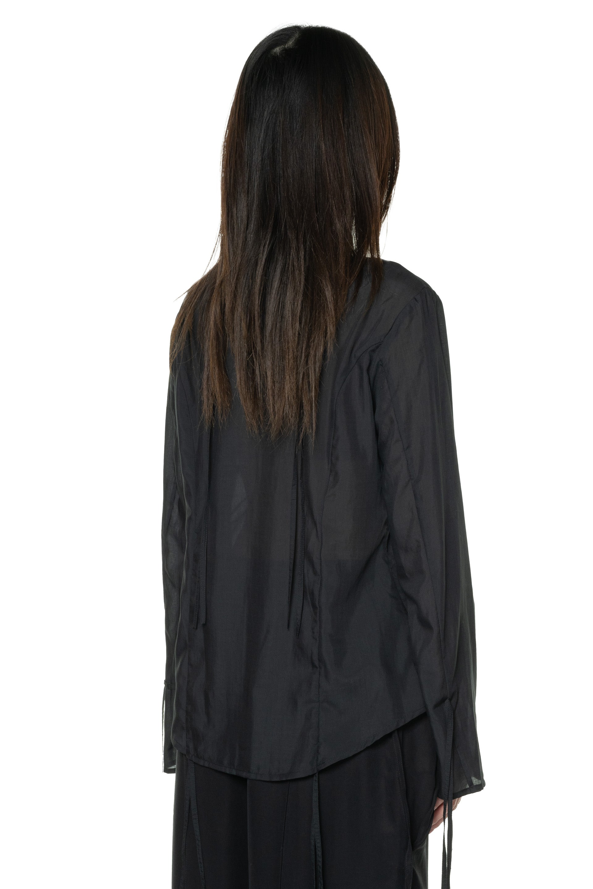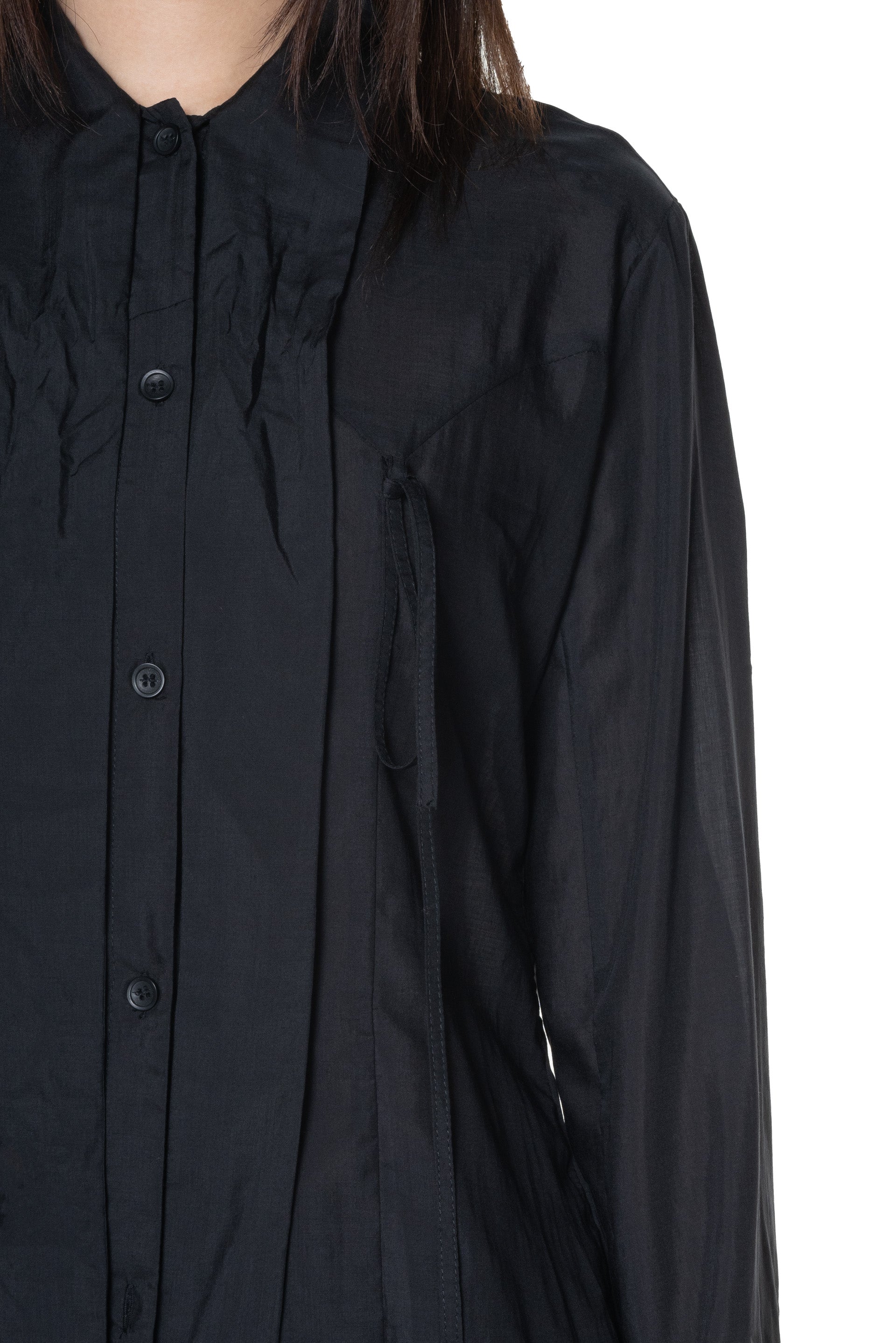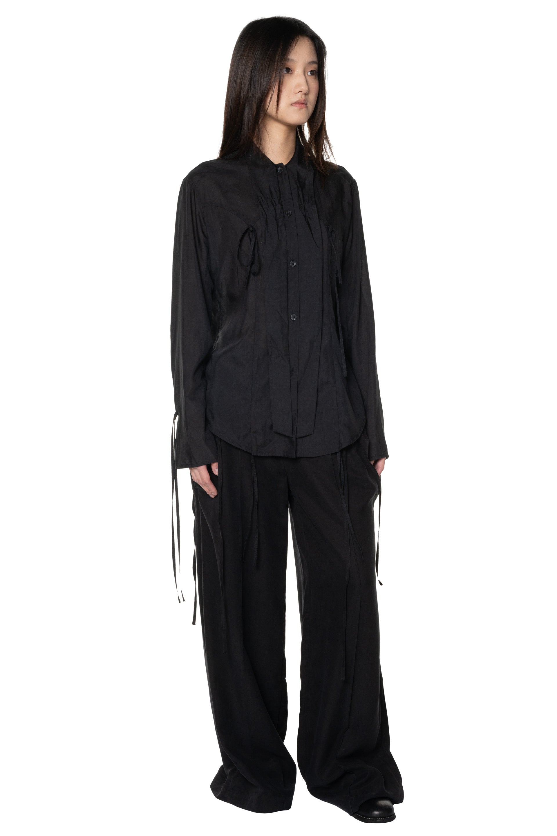 Professor. E Drawstring Shirt. Long sleeves. Button closure at front. Button closure at cuffs. Plastron details at front. Strings details throughout.