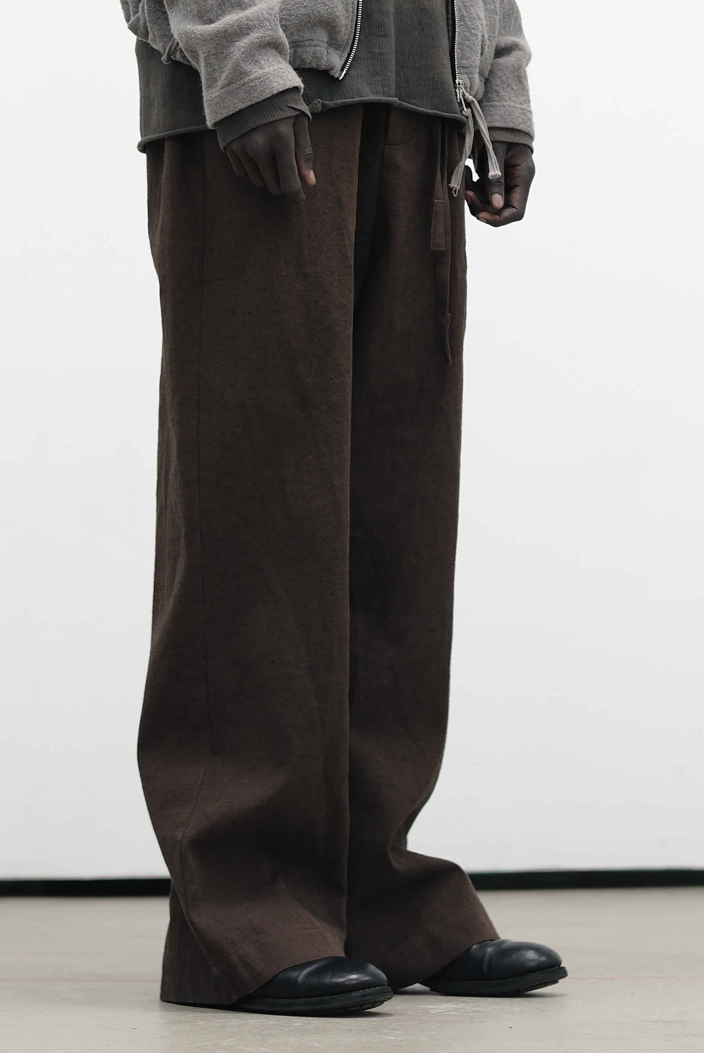 ATTEMPT reconstructs different styles and elements to create a new aesthetic system. By taking a more experimental approach to creation and production, which involves an understanding of the past and the current form of society, Attempt is creating an aesthetic form that is anchored in the present but different from it. It must ultimately be a product that cannot be defined as seen with the Drawstring Straight Trousers Brown.