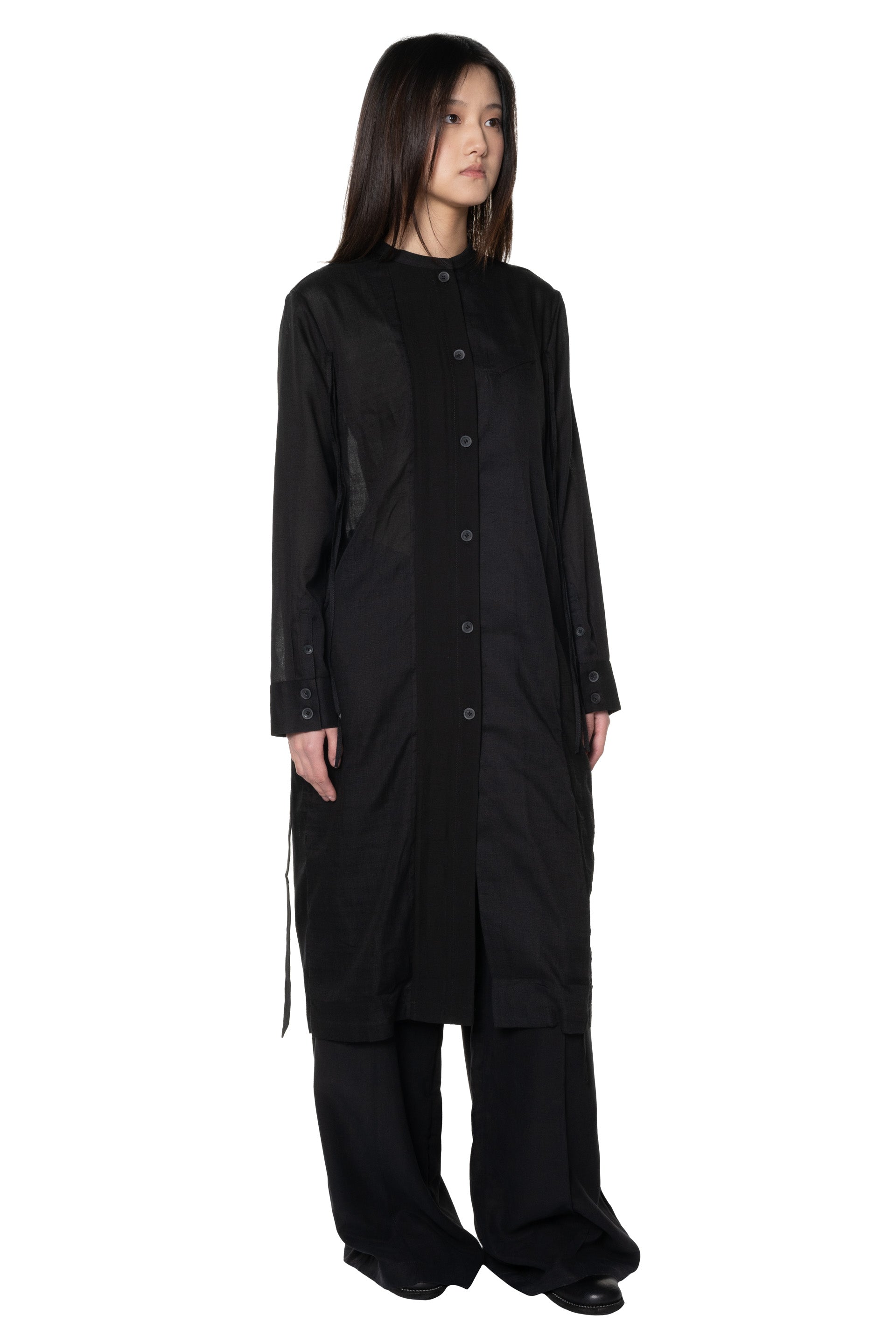Professor. E E Long Shirt. Long sleeves. Button closure at front. Button closure at cuffs. Plastron details at front. Strings details throughout. Round collar.
