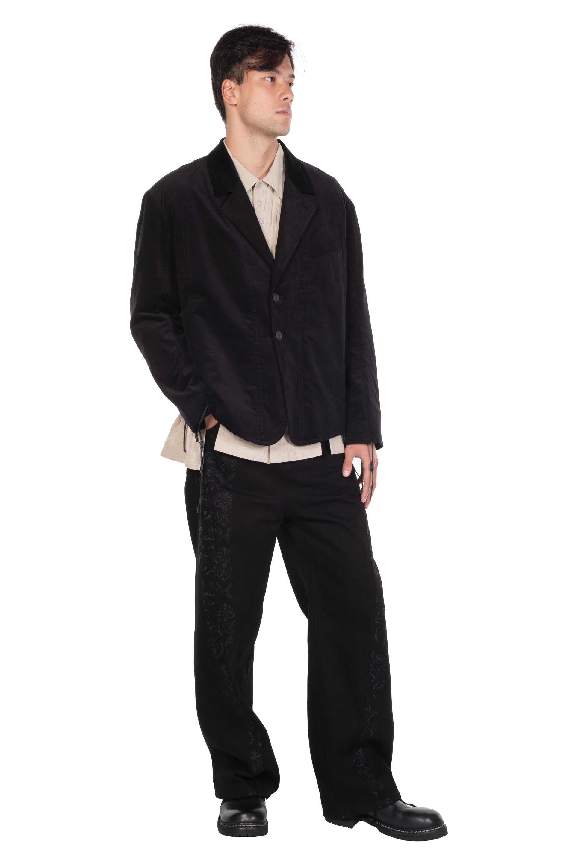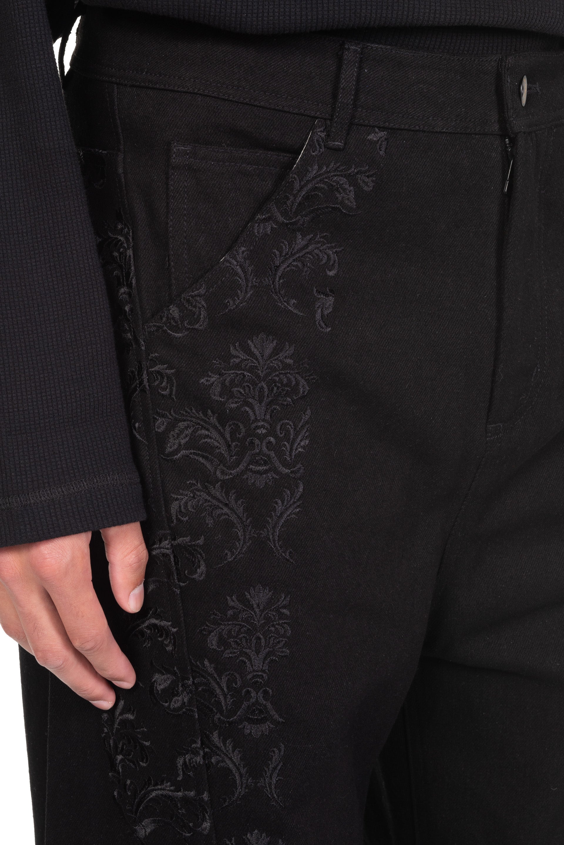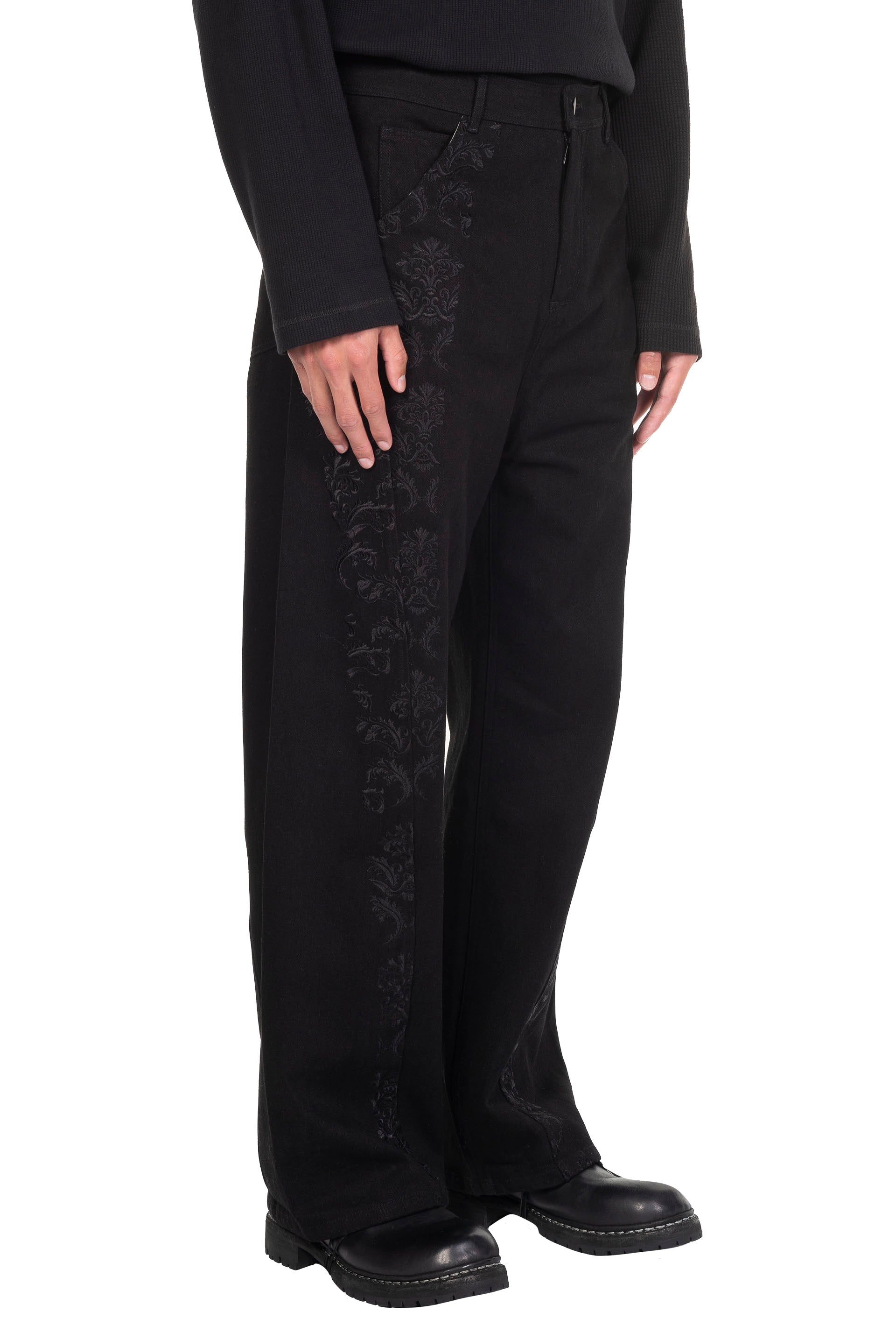 Professor. E understands the time of aesthetics from the use of cotton, hemp and wool. Fabric stitching, patching, designs without edge trimming, deconstruction, and reproduction are all Professor. E's signature elements creating classic immortal designs that can be viewed with the E Skater Jeans Black