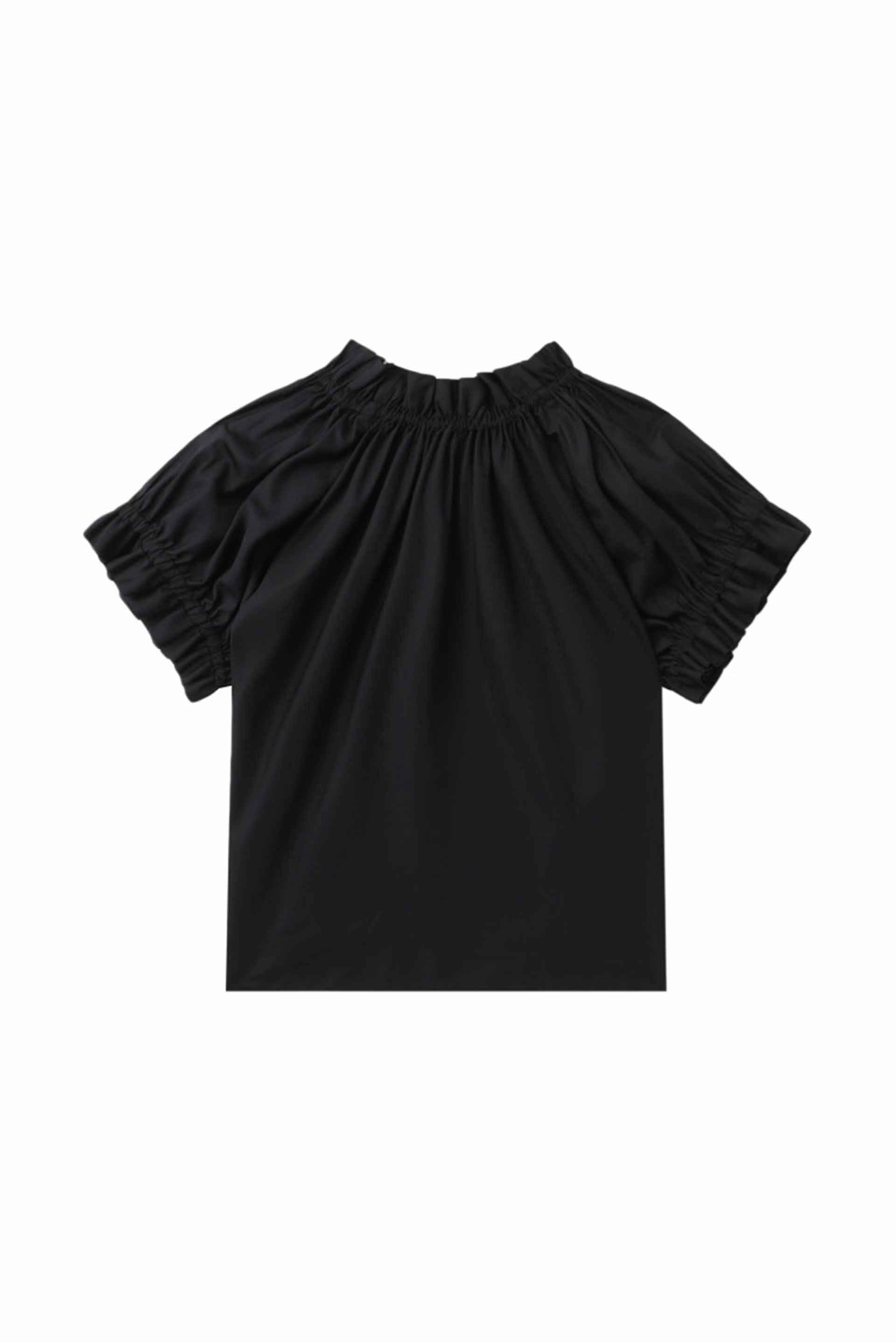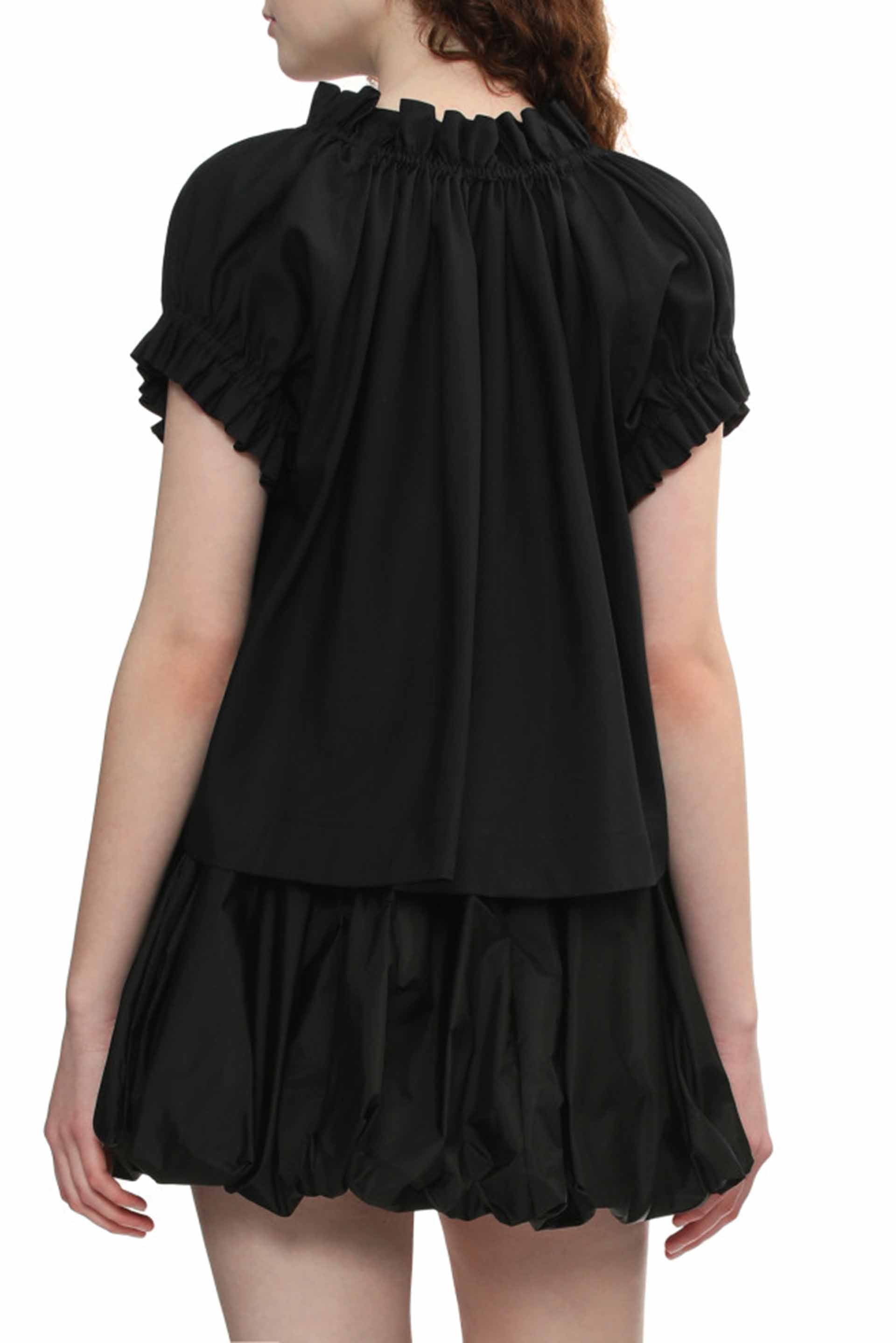 Simone Rocha gathered ruffle top. Mock neck. Short puff sleeves. Elasticated trim. Straight hem.