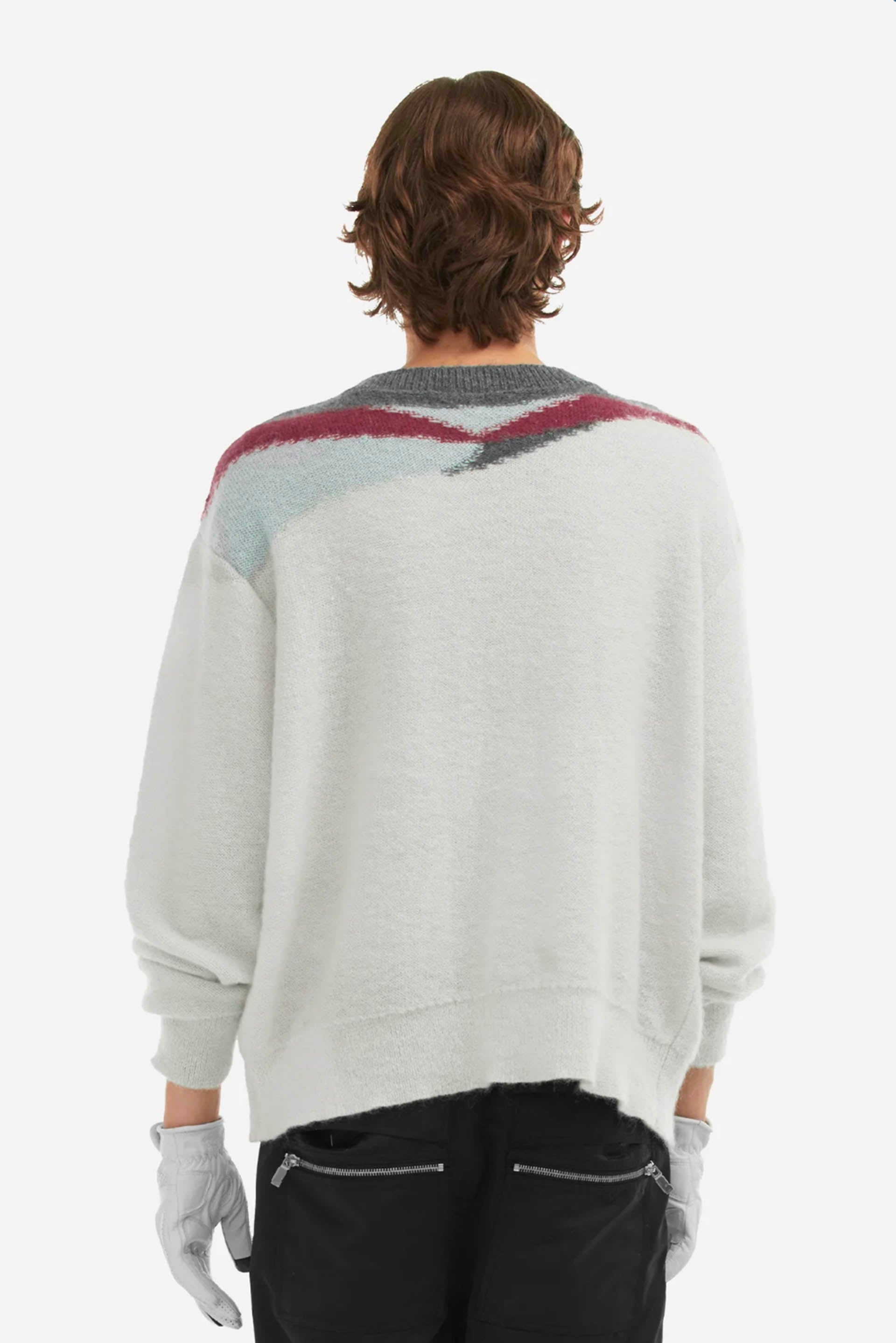 C2H4 concept ranges from hypothetical space scientists producing sport and streetwear-inspired designs creating an intergalactic underground culture. Using her studio as a laboratory, Chen’s meticulously elevates wardrobe cornerstones as seen with the Ellipse Panelled Mohair Sweater Cream.