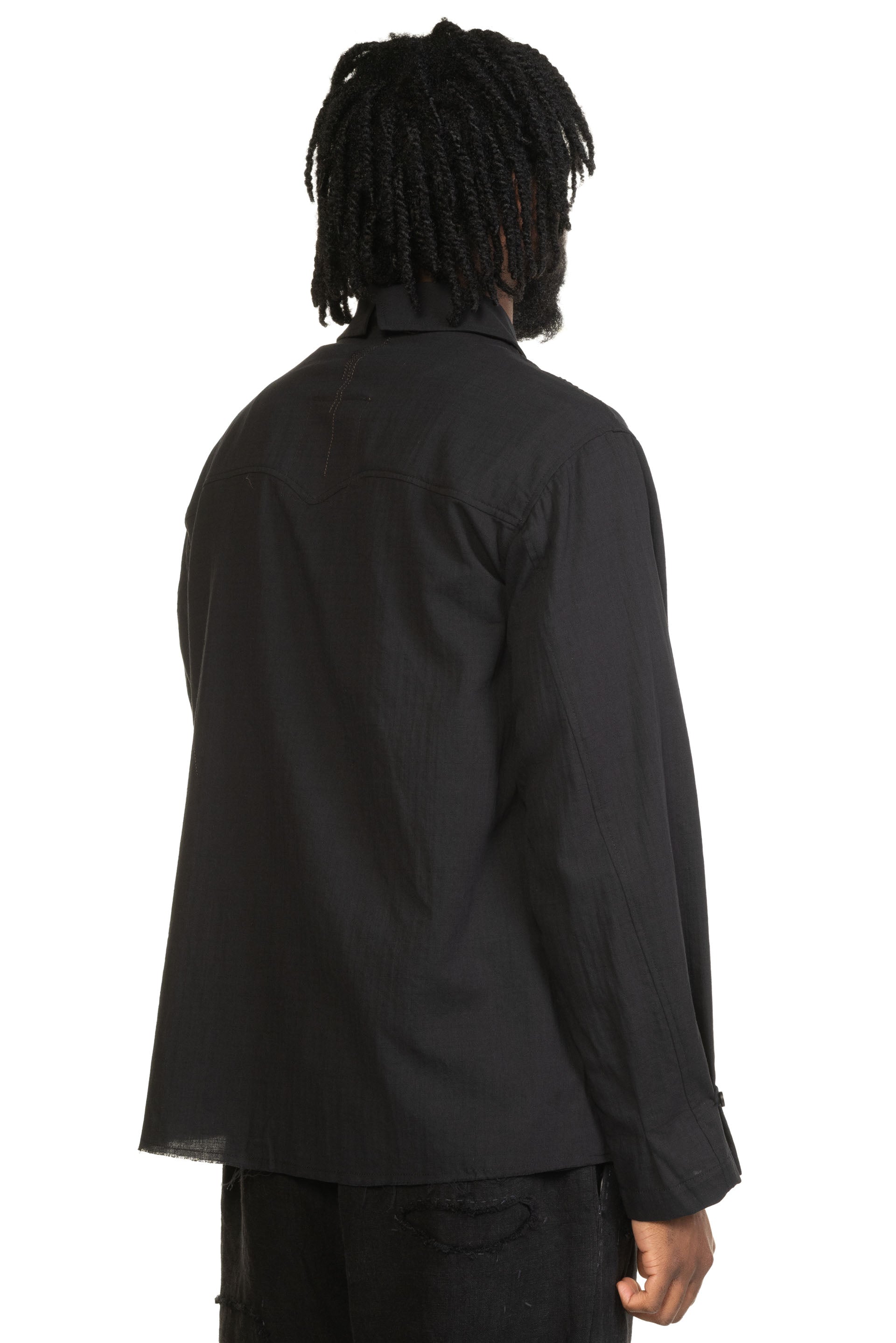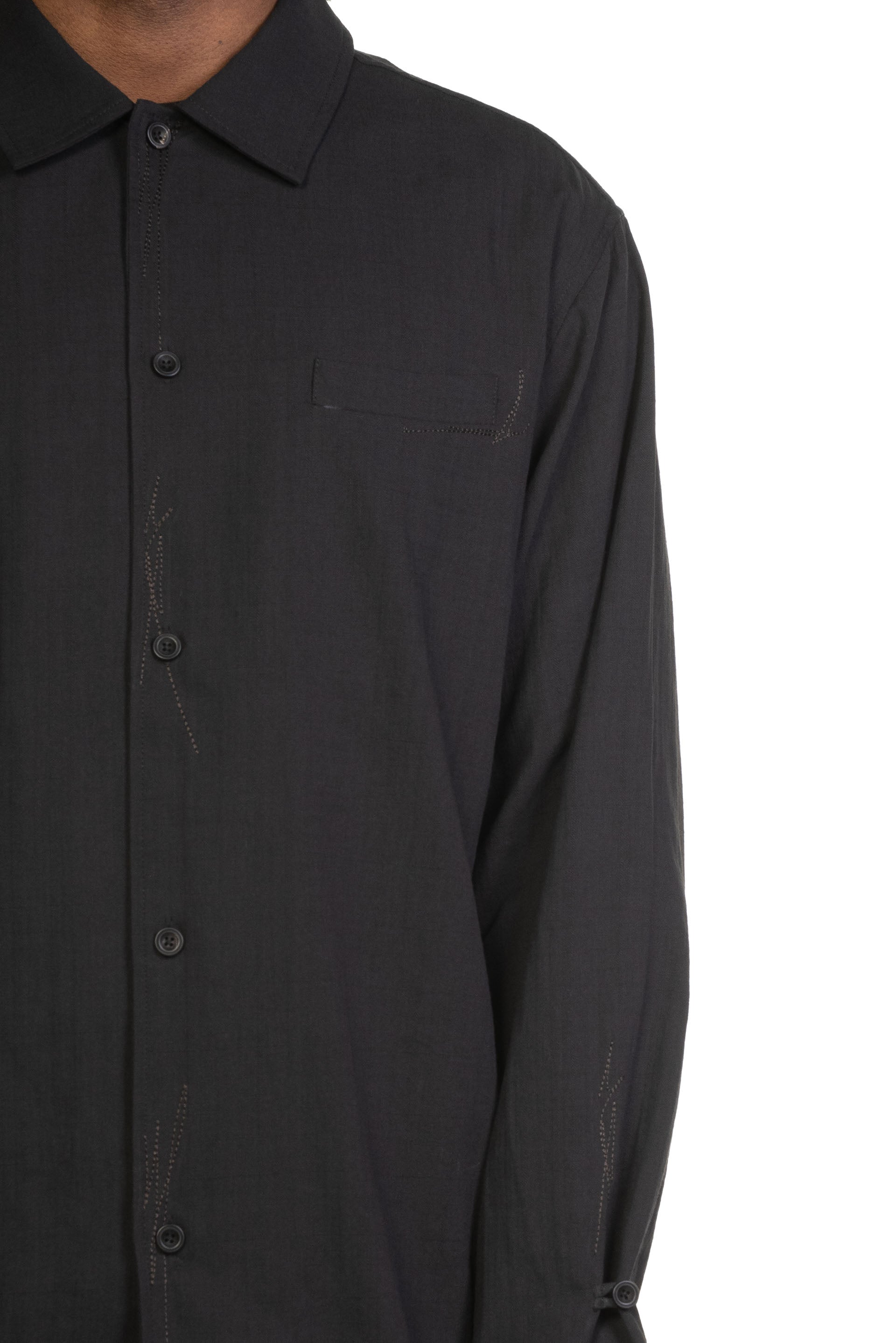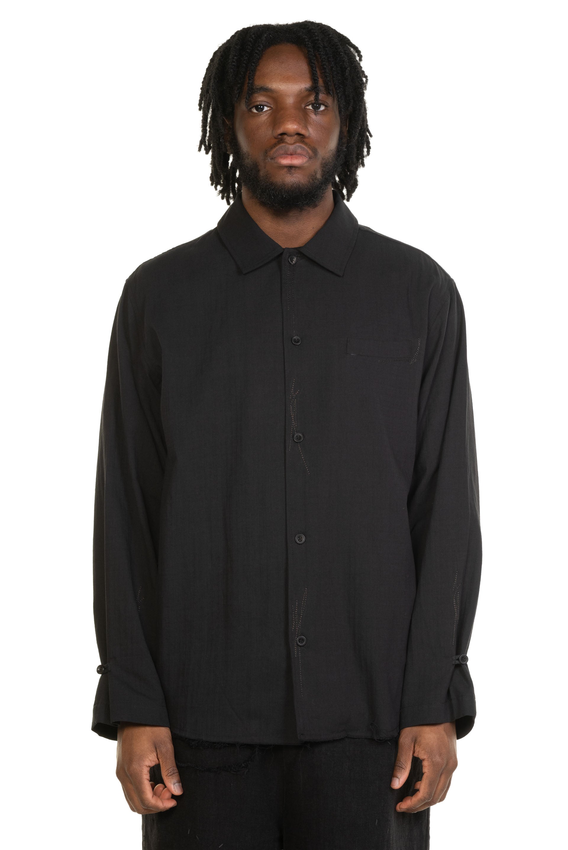 Professor. E understands the time of aesthetics from the use of cotton, hemp and wool. Fabric stitching, patching, designs without edge trimming, deconstruction, and reproduction are all Professor. E's signature elements creating classic immortal designs that can be viewed with the Embroidered Shirt Black