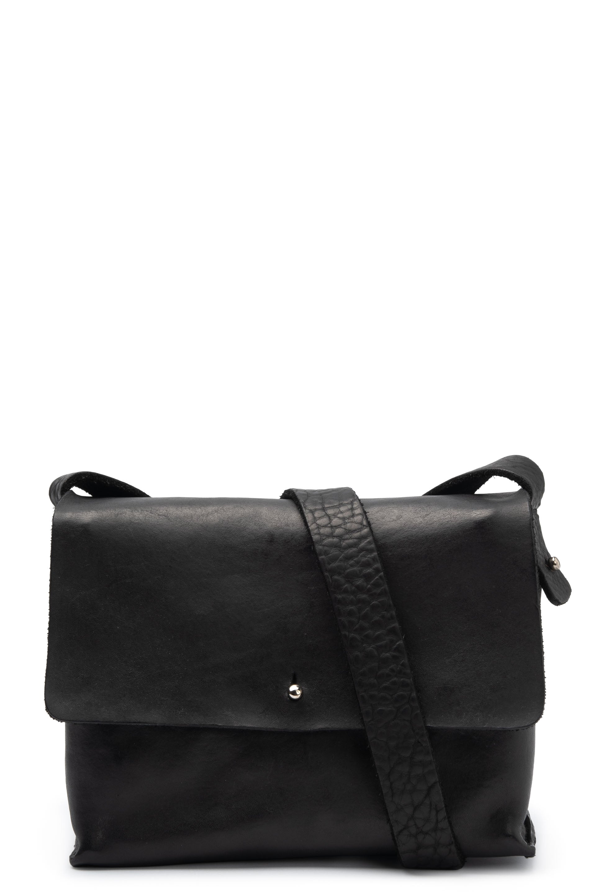 Guidi Medium cross body Bag. Stud closure at front. Handmade in Groppone Cow Leather. The storage space is divided into three sections.