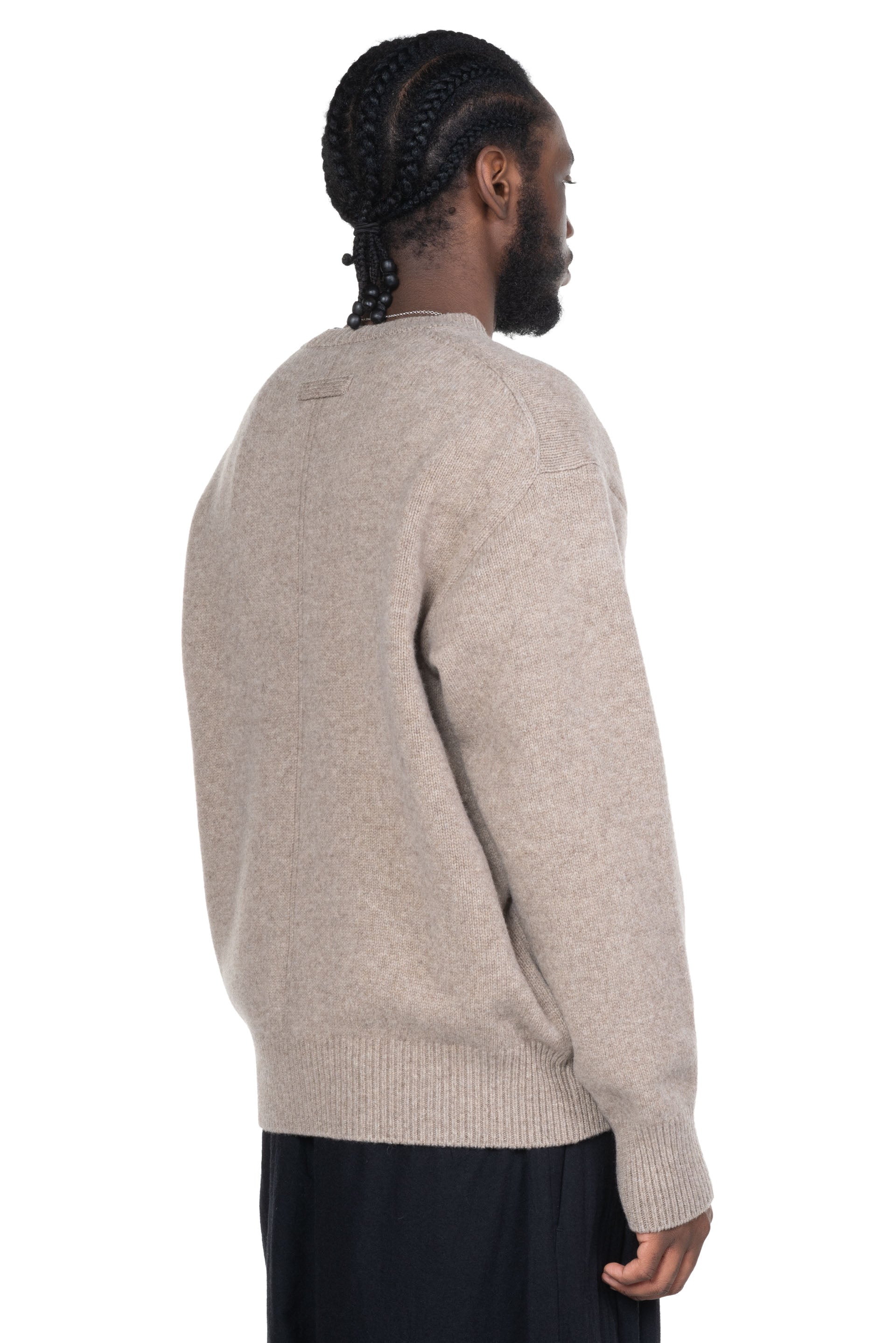ssstein crewneck sweater made from 19.0μ Super Fine Lambs Wool. It is knitted with a slightly dense gauge and lightly fulled, achieving a refined surface with subtle volume and elasticity. Adding finishing process to create a luxurious and sophisticated texture.