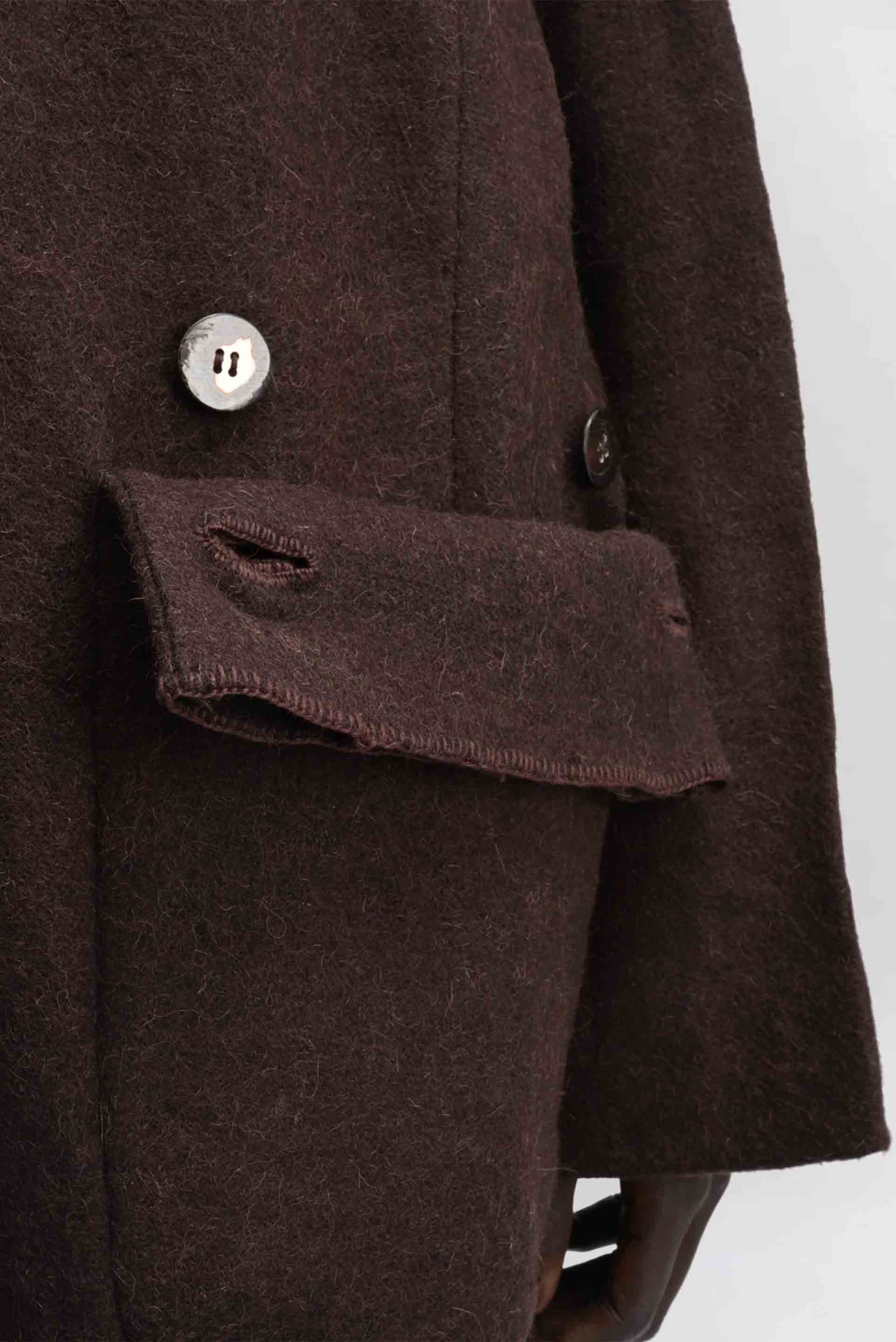 Handwoven on traditional looms, hand-felted yak and sheep wool in a rich brown hue. Crafted by skilled artisans’ group, working from 1960, using dark brown yarn in the Himalayan Plateau. Each piece is finished with natural ceramic buttons glazed in a rough black and shell buttons to match.