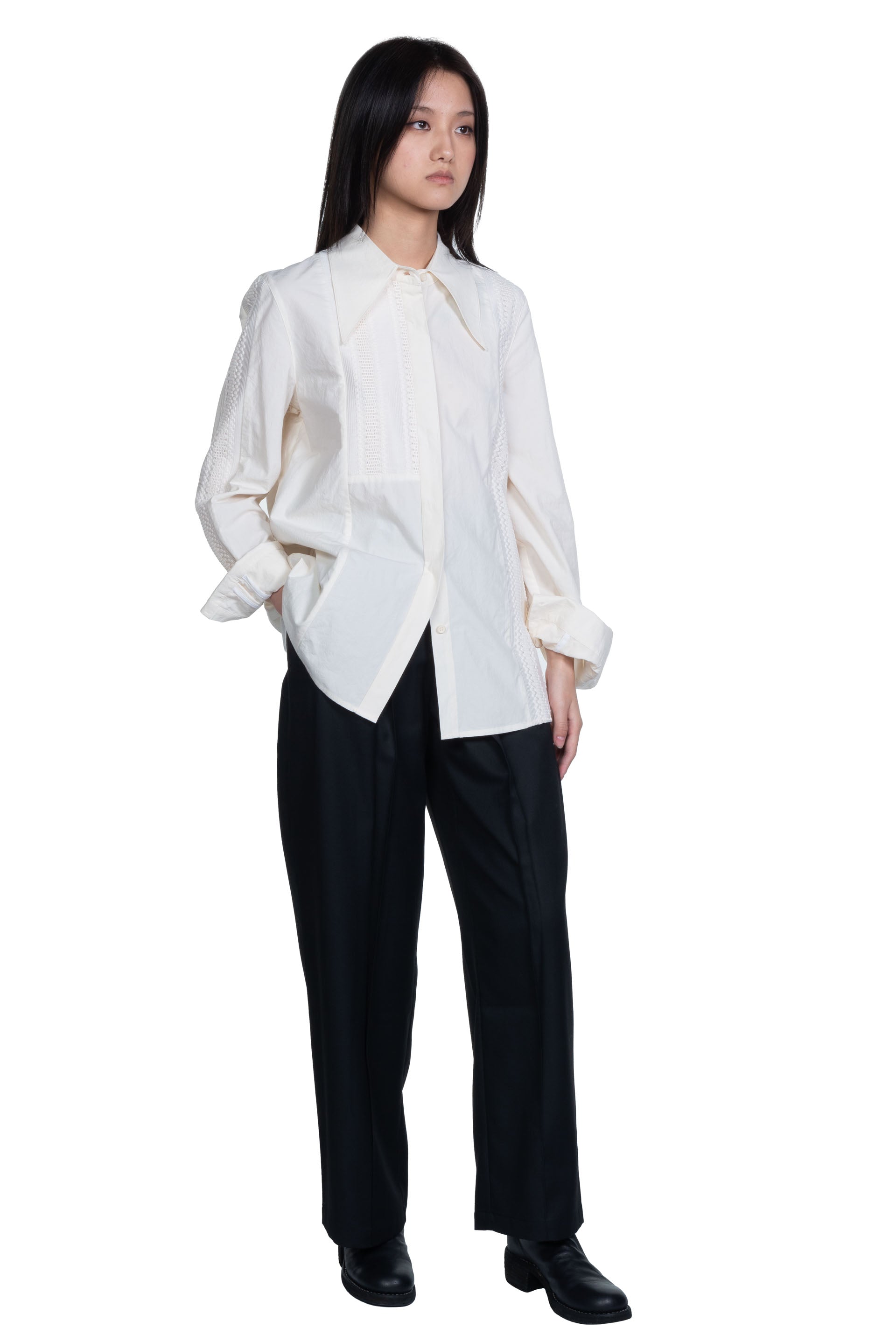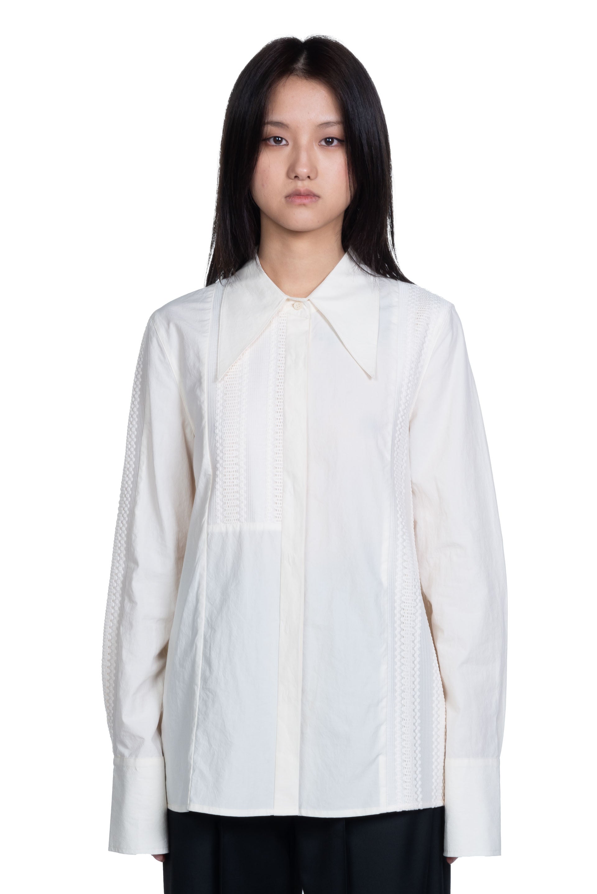 ii delivers a sense of originality, simplicity, spontaneity and a hint of childlike innocence pushing boundaries among ages to present qualitative collections with timeless touches designed for independent individuals as seen with the Feather Puzzle Shirt from ii sense. Long sleeves. Button closure at front. Long collar detail. Feather details throughout. Button at cuffs.