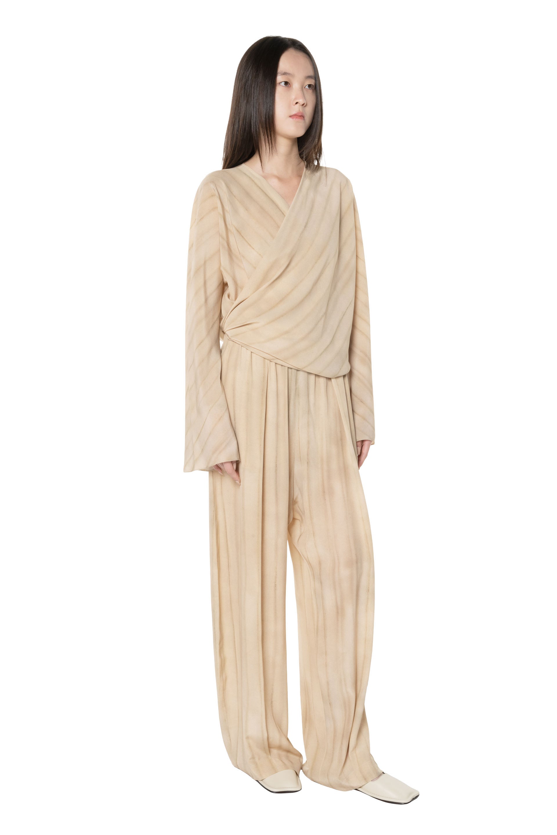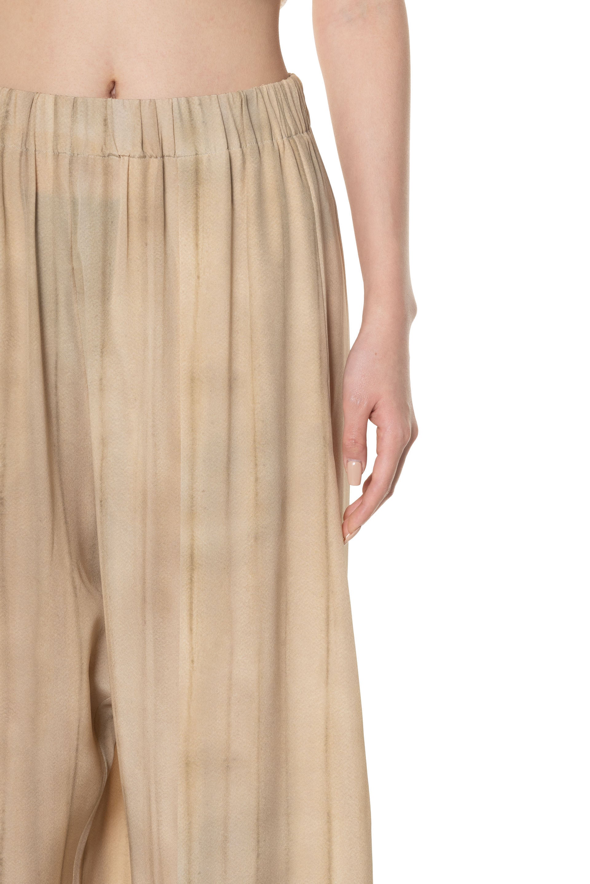 Cortana Fedra Print Pants in Ivory. Fedra silk pants with a loose fit, elastic waistband, wide leg slightly tapered at the ankles, and side pockets and front pleats for added fluidity. This exclusive print is based on a watercolour painting by Cortana's creative director. Pairs with the Fedra blouse in the same print.