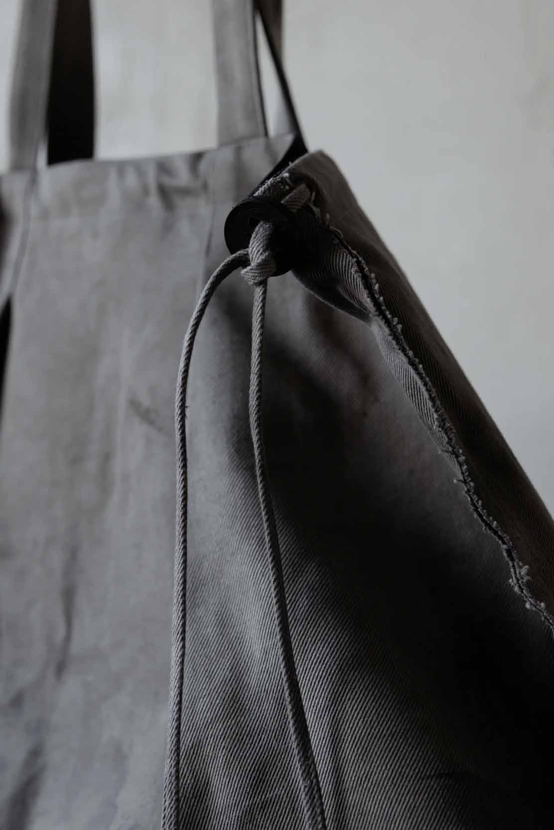 Professor. E understands the time of aesthetics from the use of cotton, hemp and wool. Fabric stitching, patching, designs without edge trimming, deconstruction, and reproduction are all Professor. E's signature elements creating classic immortal designs that can be viewed with the FM Aged Tote Black