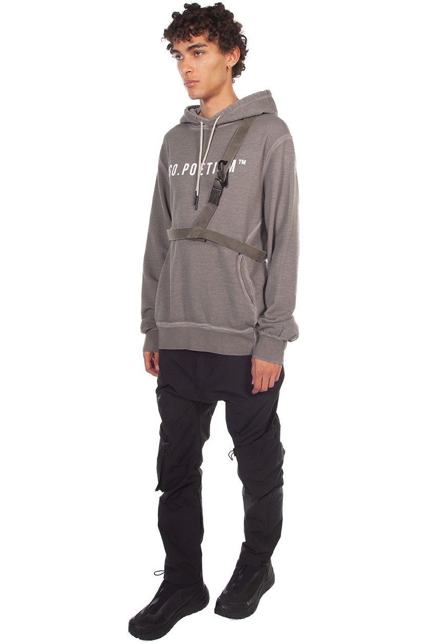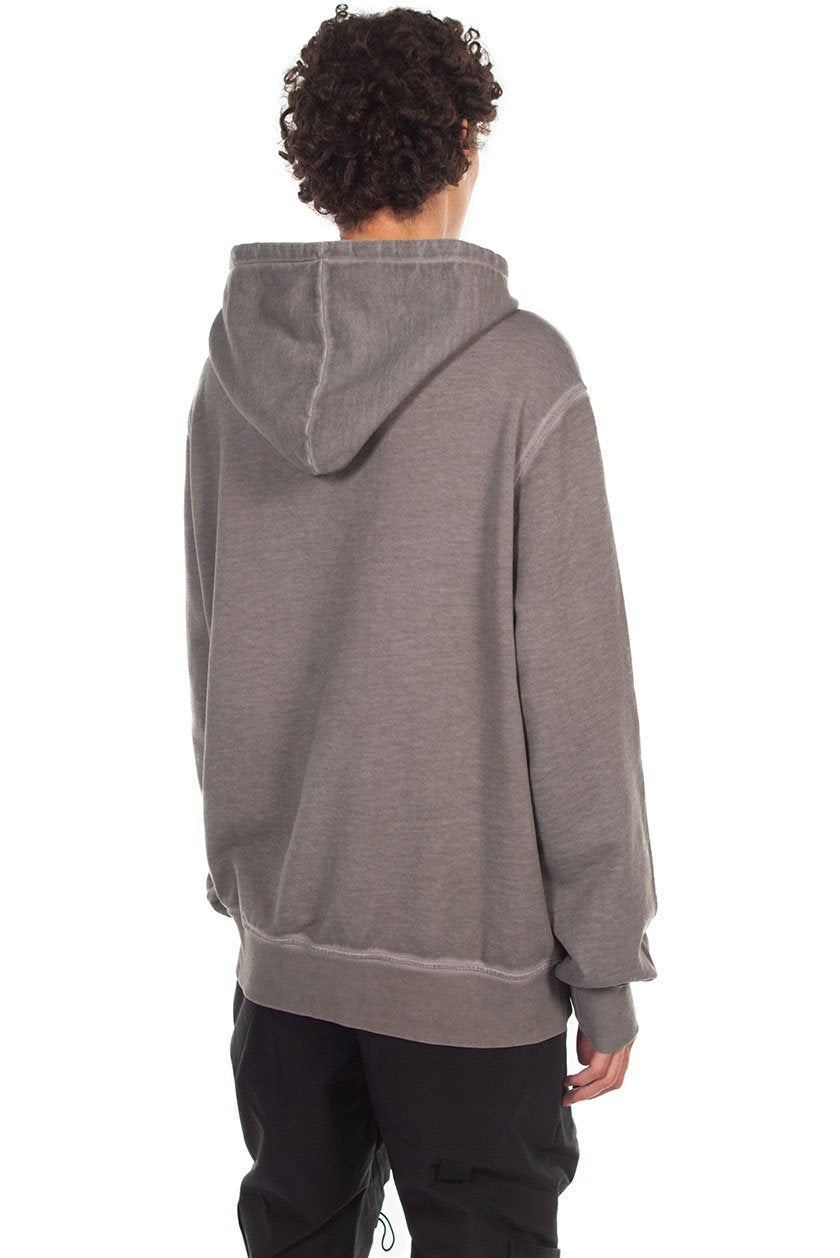 Hood with drawstring closure. Small serigraphy logo print on left front chest. Large serigraphy print on the back. Dropped shoulders. Long sleeves. Front pockets integrated in curved side seam. Fitted cuffs. Straight hem.
