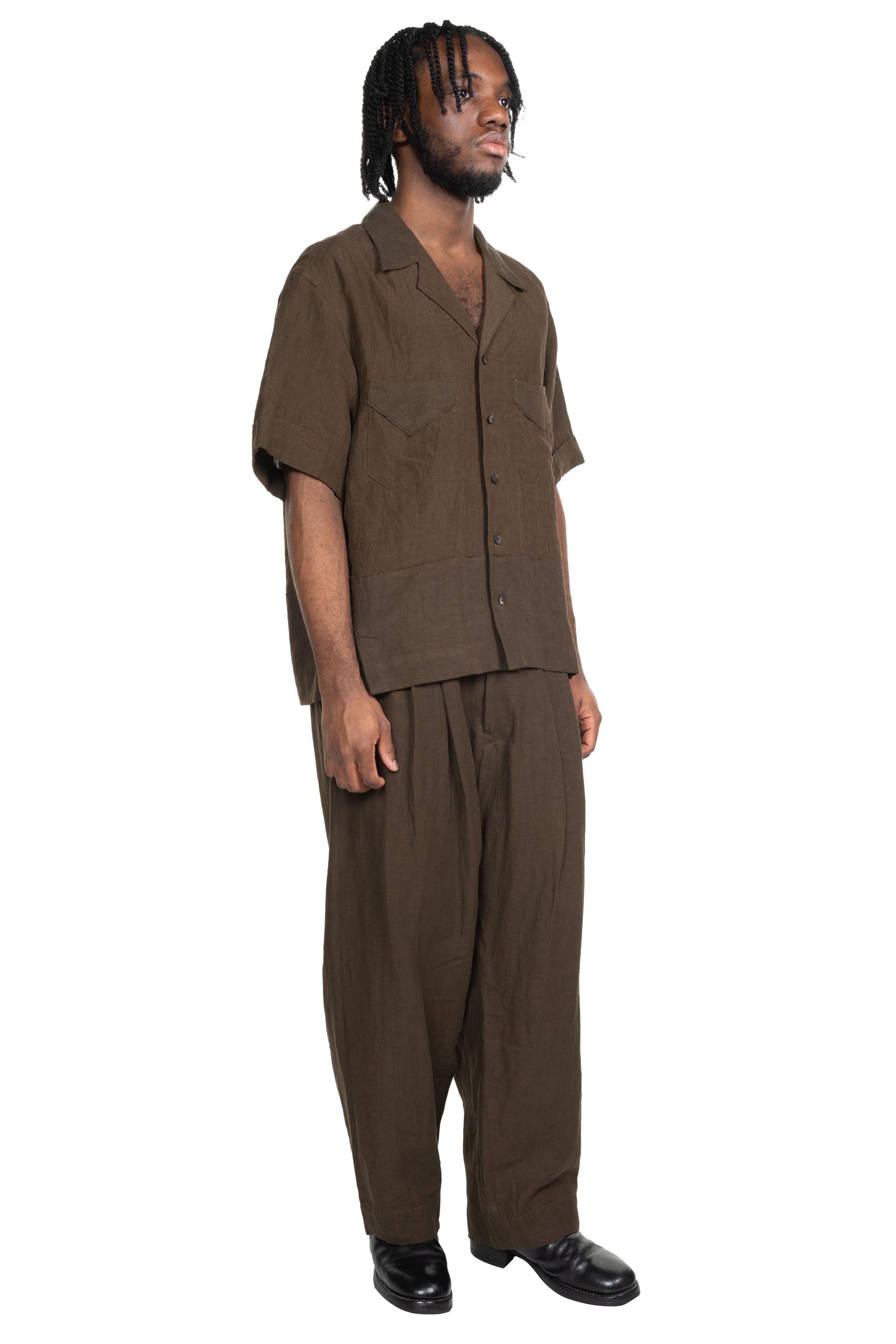 With a colour palette of purples, greens, and greys, Ziggy Chen’s designs evoke the textures of aged architecture and the natural world. The garments feel as natural as they look, combining softness with structure. Seamlessly blending Eastern and Western influences, Gnartricate captures the essence of timeless beauty, from fluid silhouettes to intricate patterns. Ziggy Chen continues to redefine the intersection of tradition and modernity in fashion as seen with the Front Pleats Wide Leg Trousers.