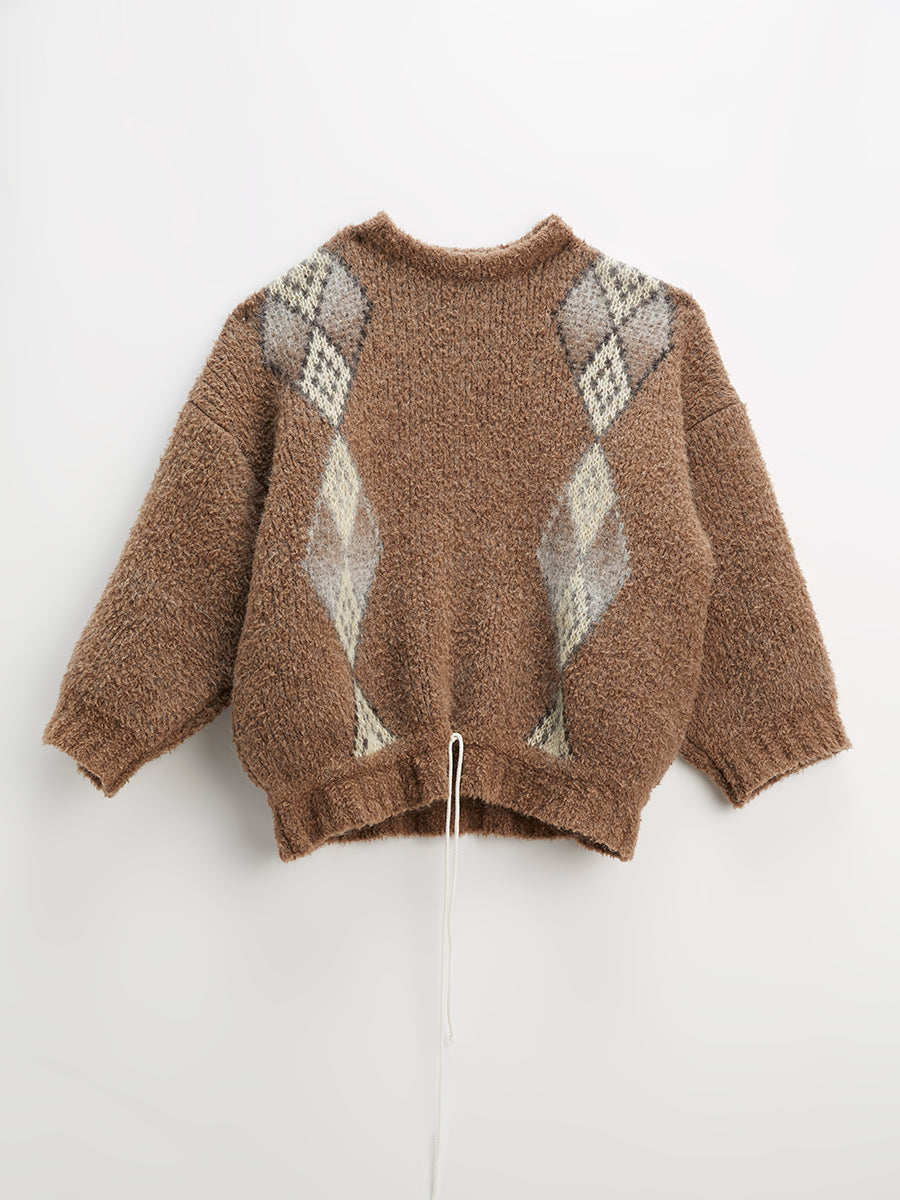 Long sleeves. Round neck. Boxy fit. Strings at front. Pattern throughout.