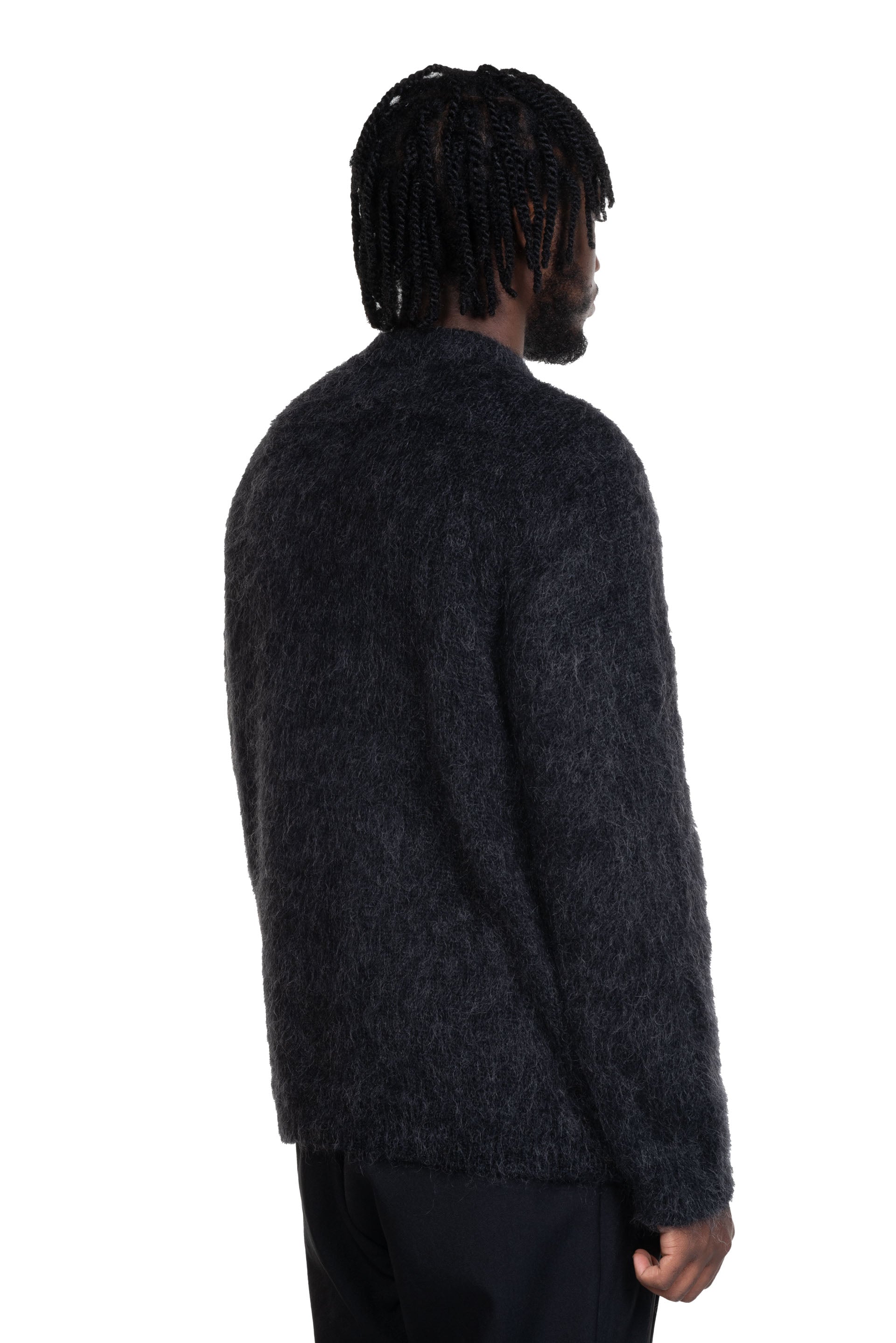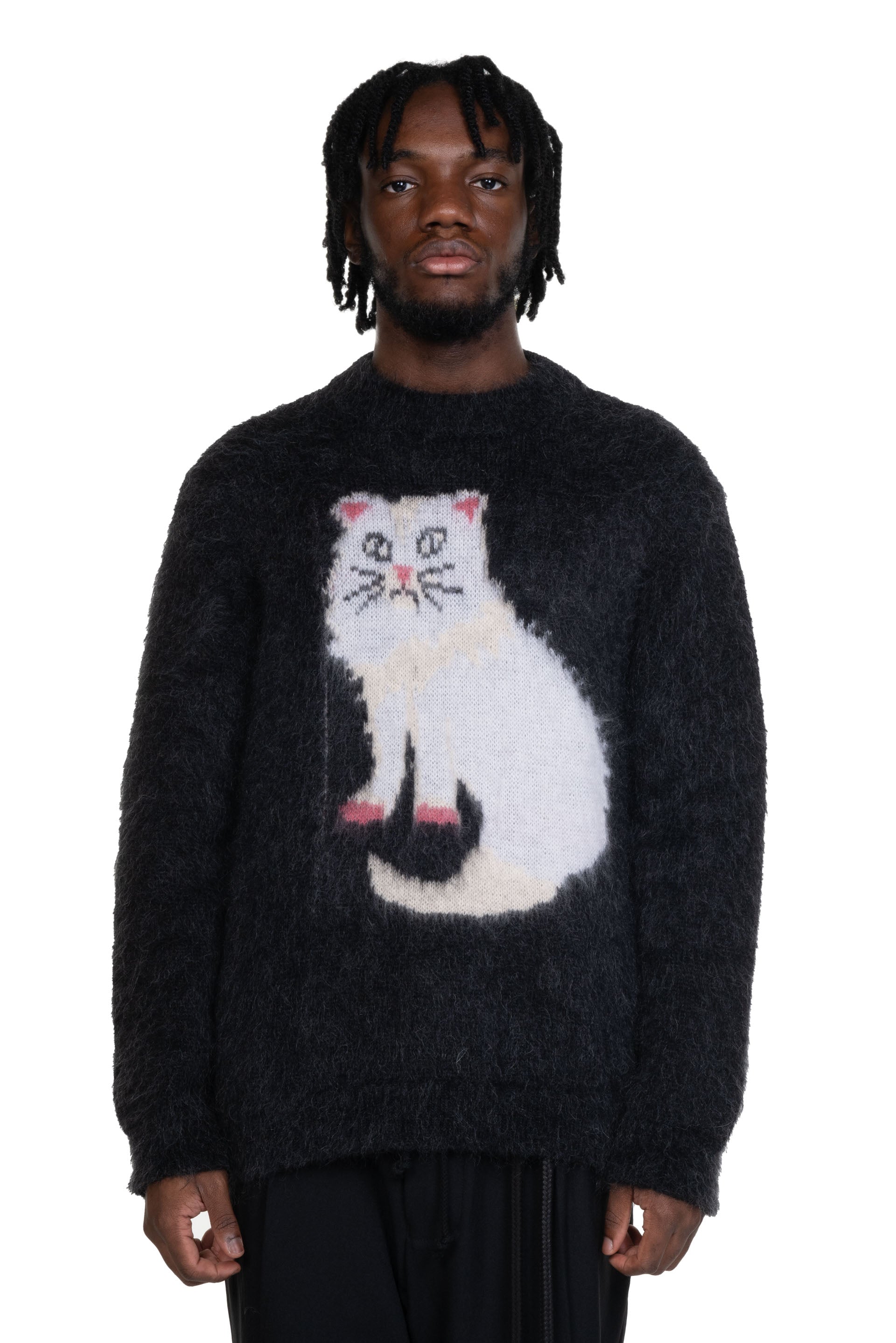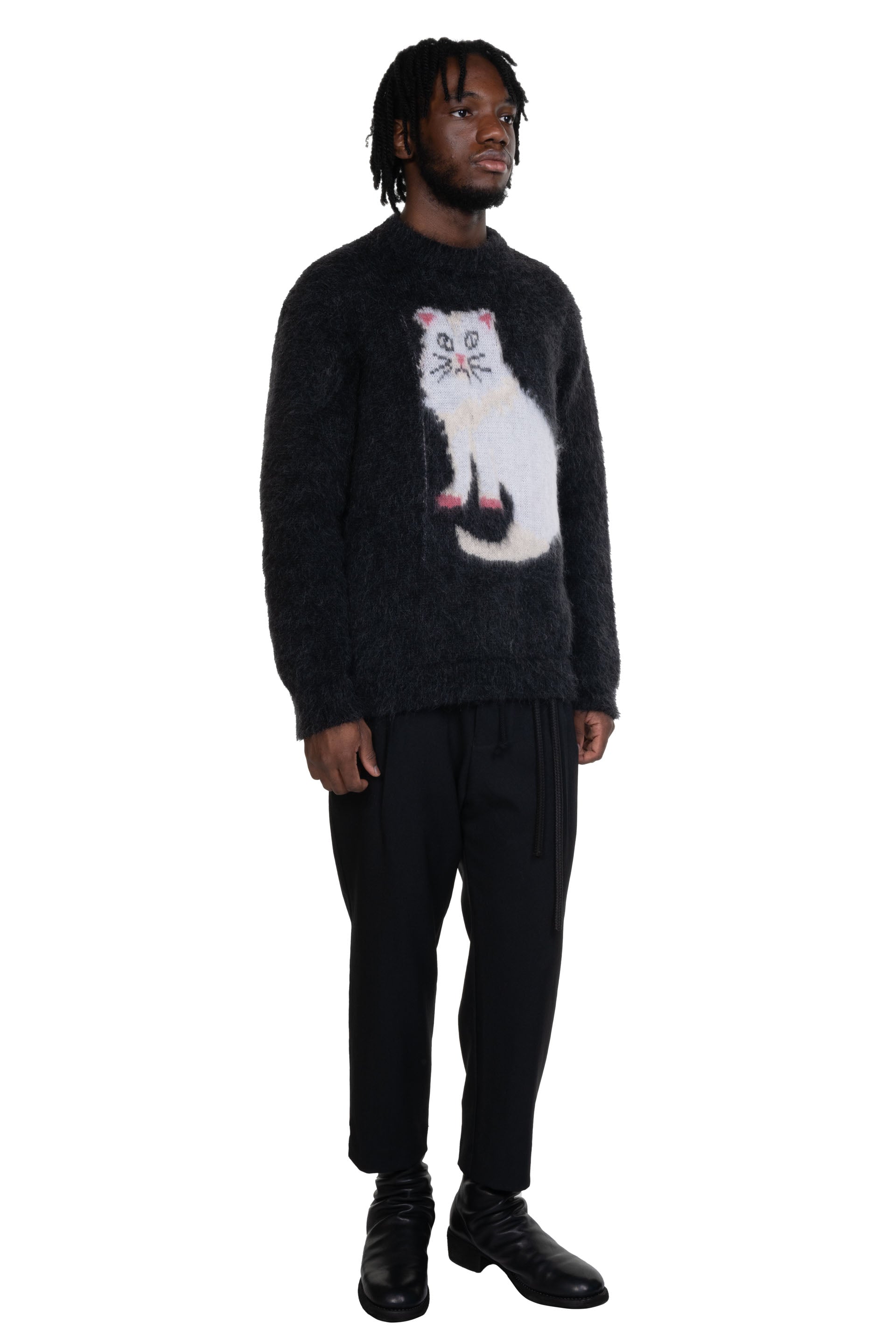 Heavily inspired by quintessentially Italian subcultures and movements, Magliano imbues menswear fundamentals with a dark, off-beat and playful attitude as seen with the Gattone Knit. A feeling of undoneness, fluidity, and melton details that nearly dissolve into clothing; volumes that collapse with sensuous delight; and colours that are hazy and elusive.