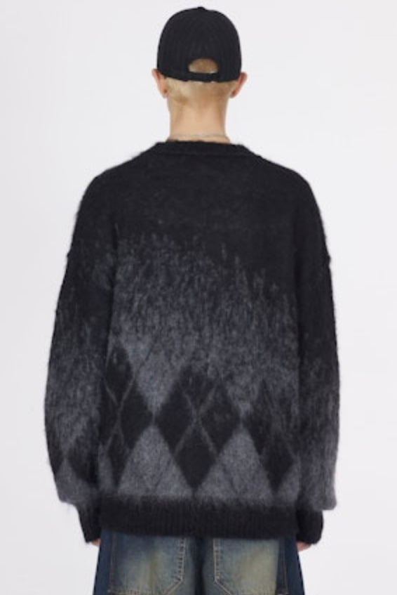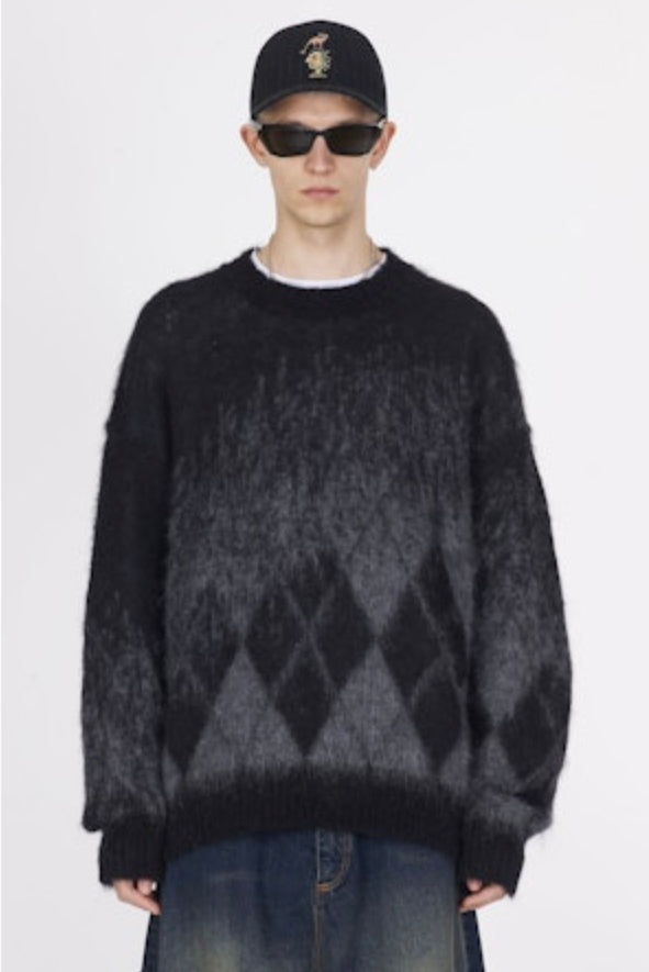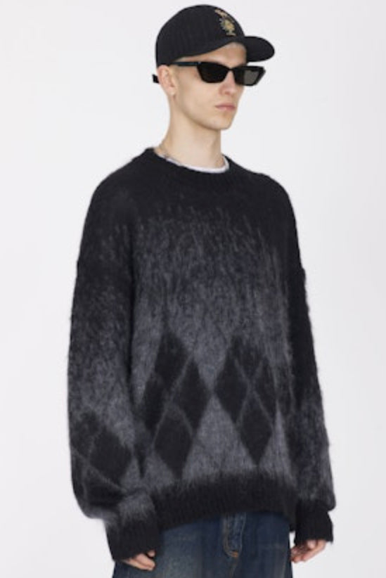 Gauzed Mohair Crew-Neck Sweater Check Black