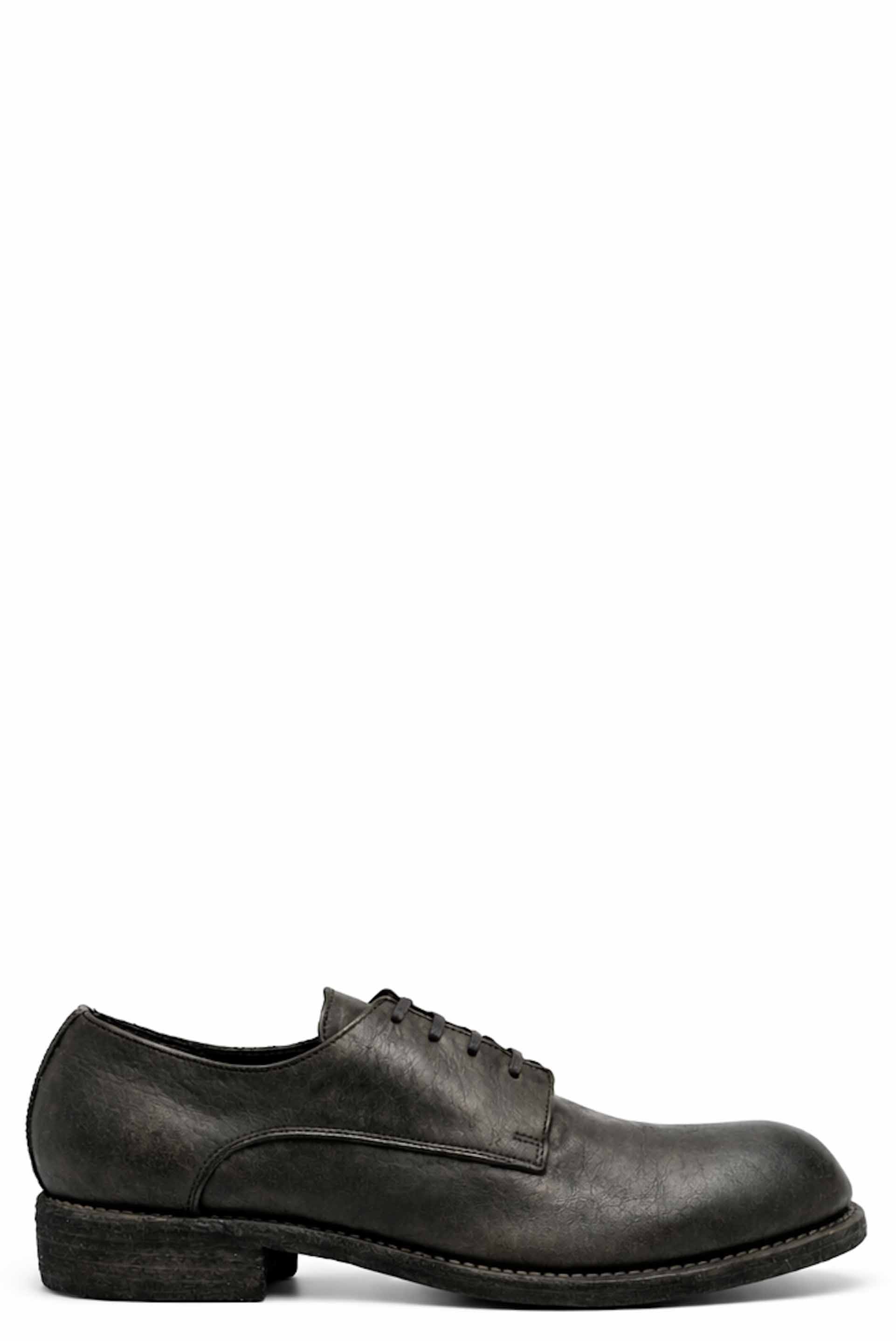 GR02 leather lace-up shoes from Guidi. Green leather tonal stitching. Almond toe. Front lace-up fastening. Branded insole. Low heel. Flat sole. Extra leather laces included.