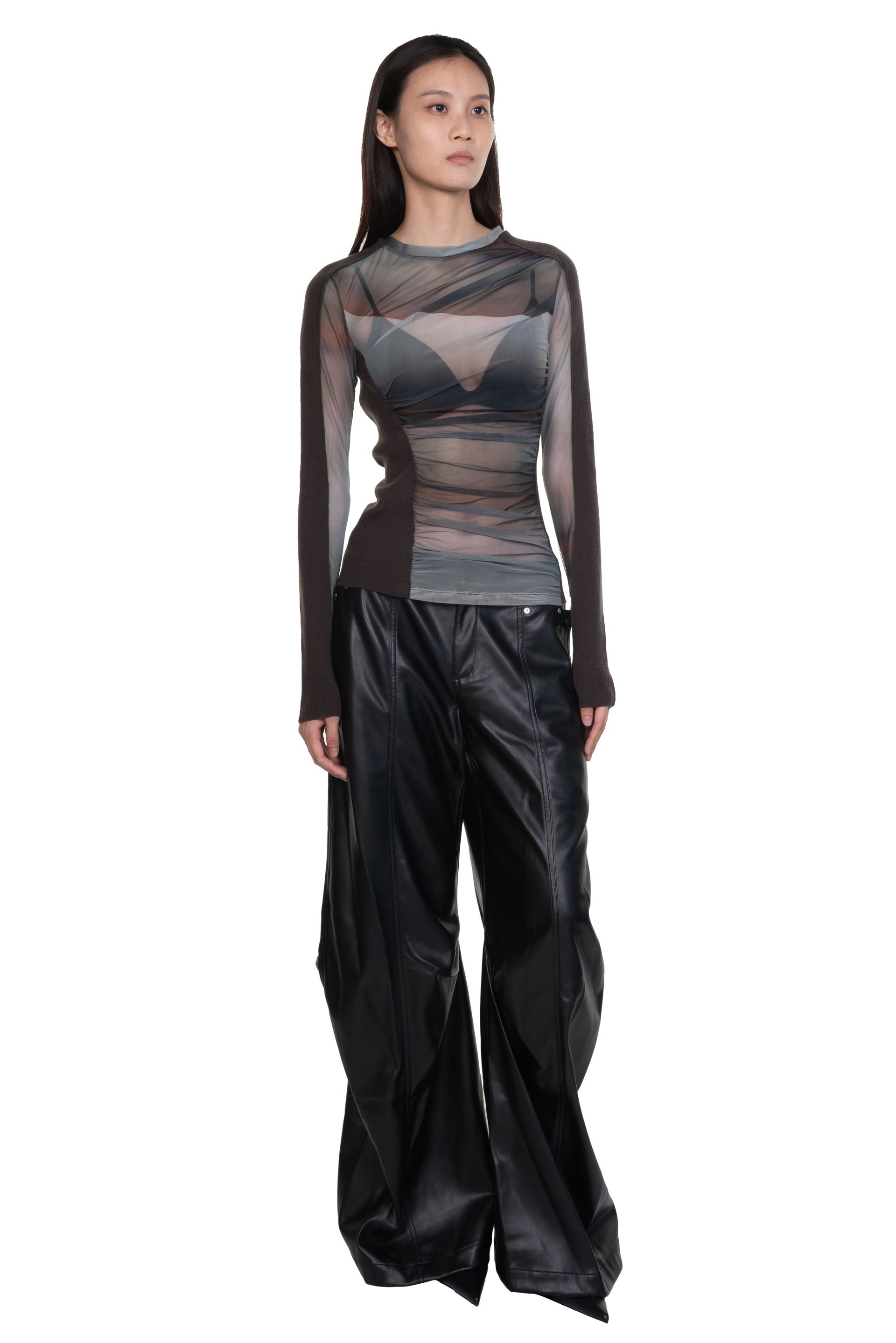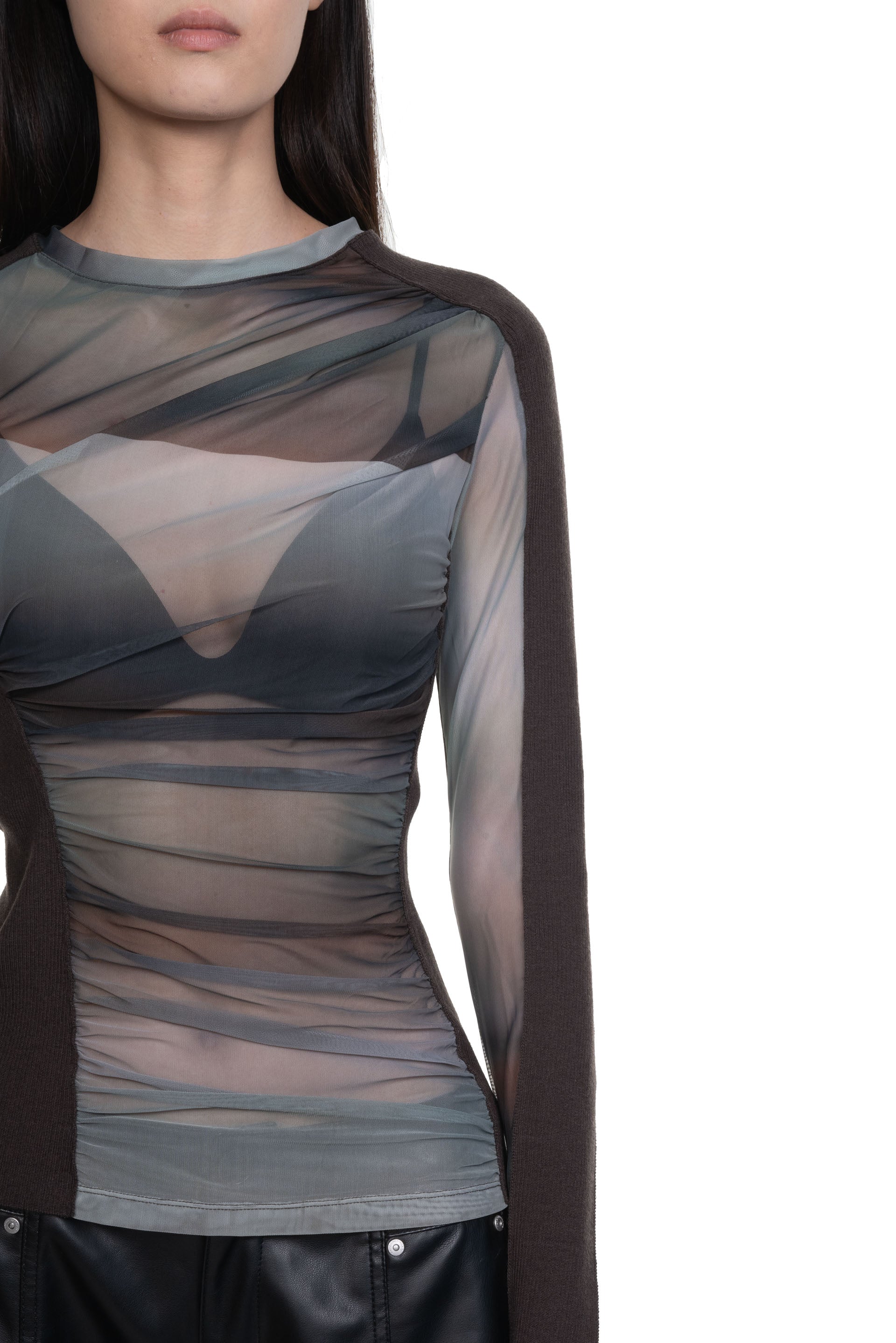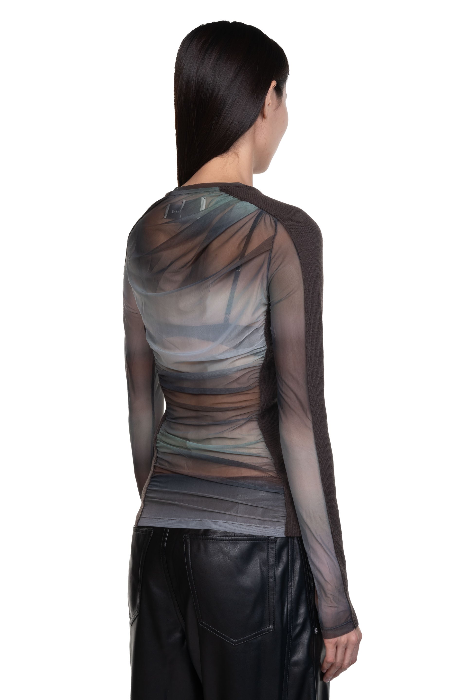 Feng Chen Wang top with gradient print. Long sleeves. Round neck. Deconstructed with mixed fabric. Slim fit.
