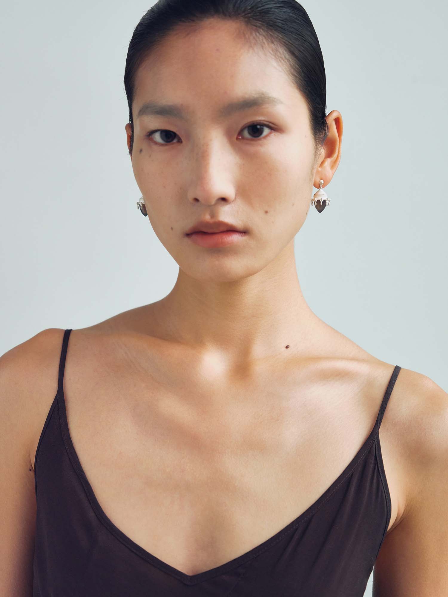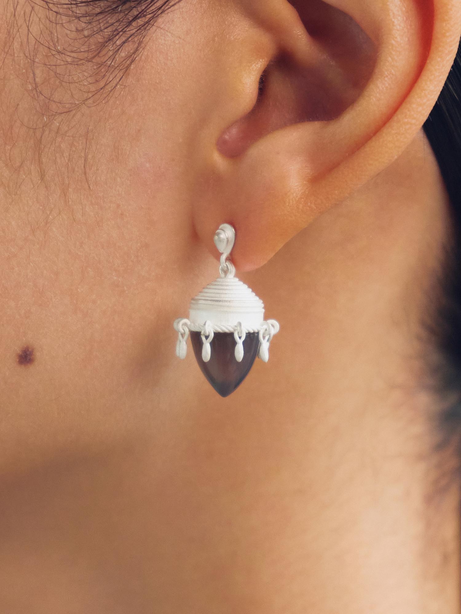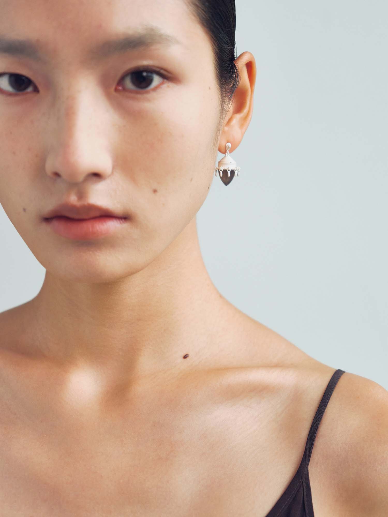 OLIO E ACETO is raw and authentic. It is about the companionship between people, and objects like the matte white surface becoming a blank canvas to be filled by the wearer as seen with the Grey Agate Beaded Earring.