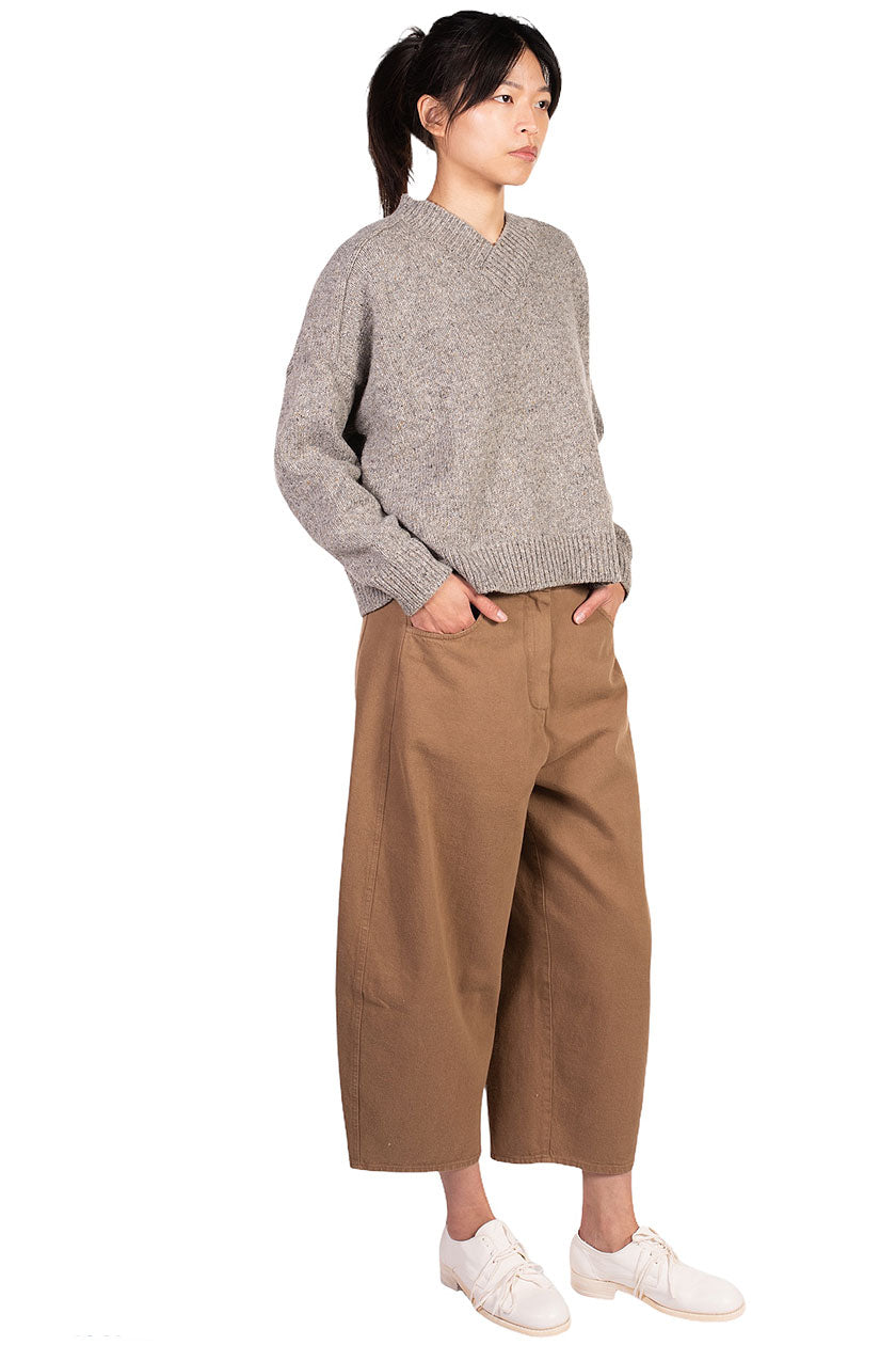 Monica Cordera’s collections are composed of limited edition garments with minimalist designs that seek purity and simplicity, timeless earthy tones in recycled linen and cotton as seen with the Grey Soft Wool Sweater.