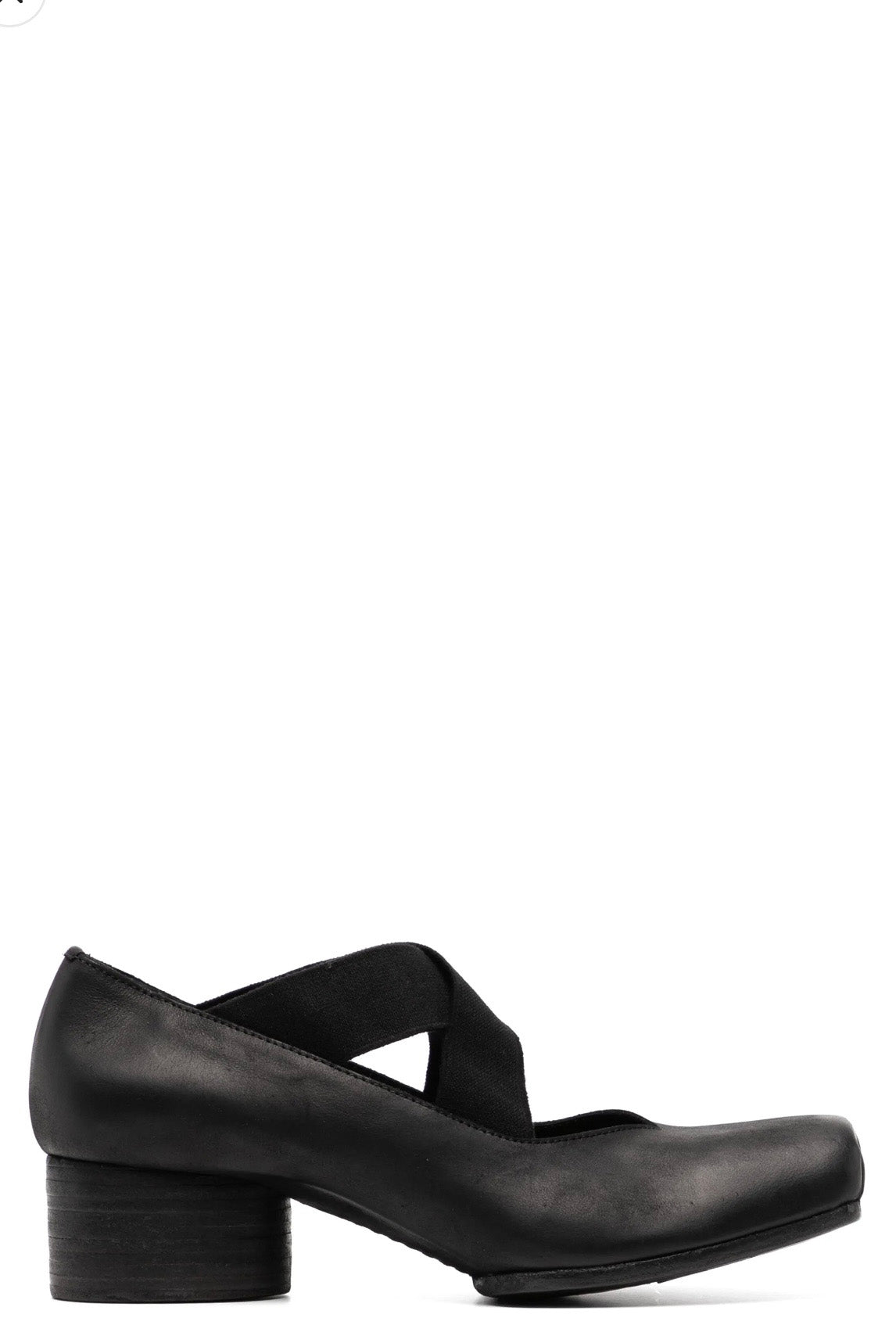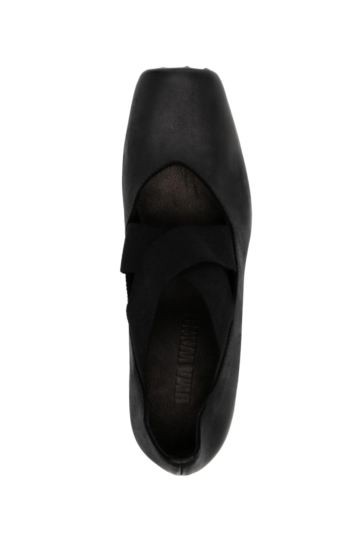 UMA WANG High Ballet Shoes Black. High heel. Elasticated crossed straps at top. Square toe. Signature design.