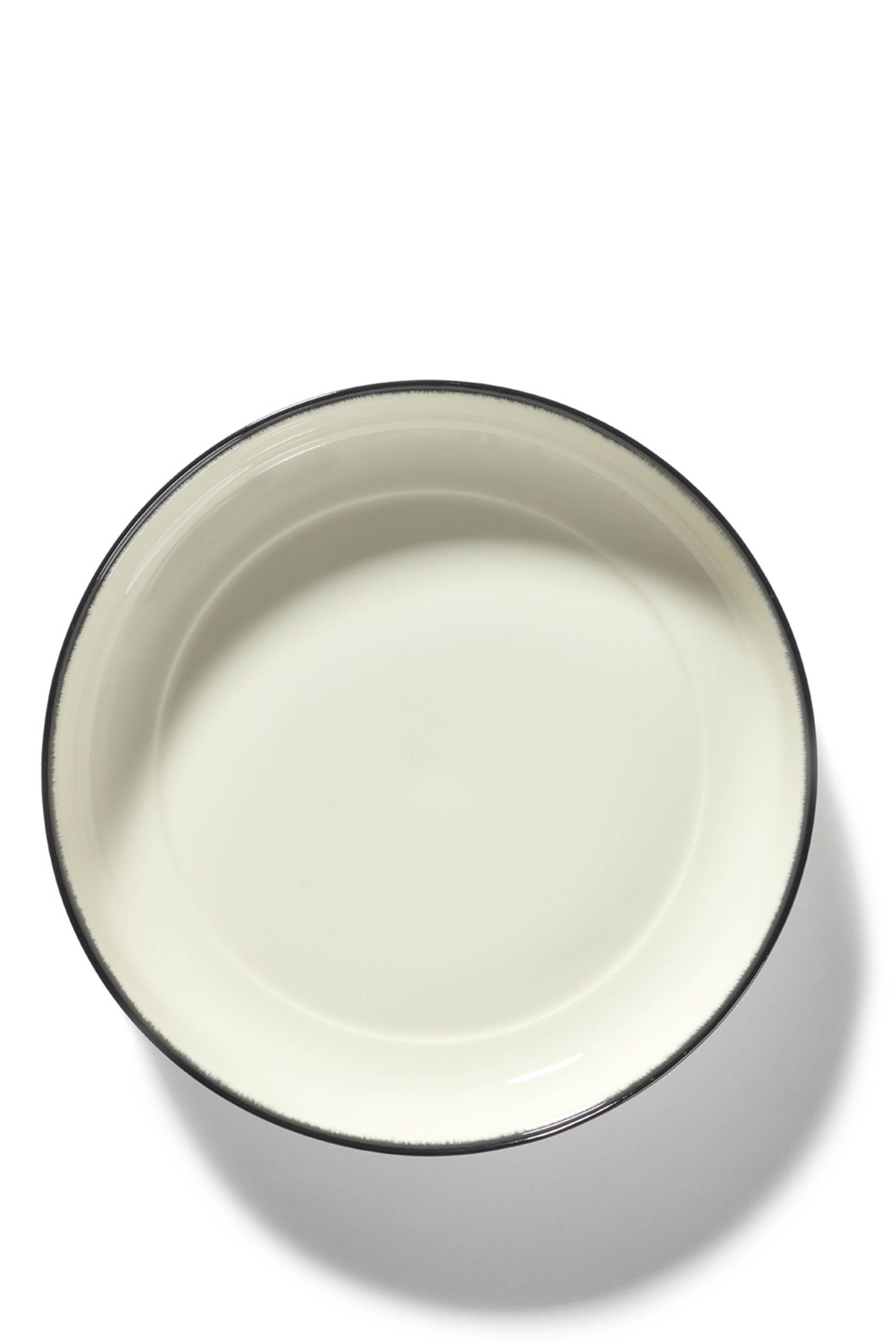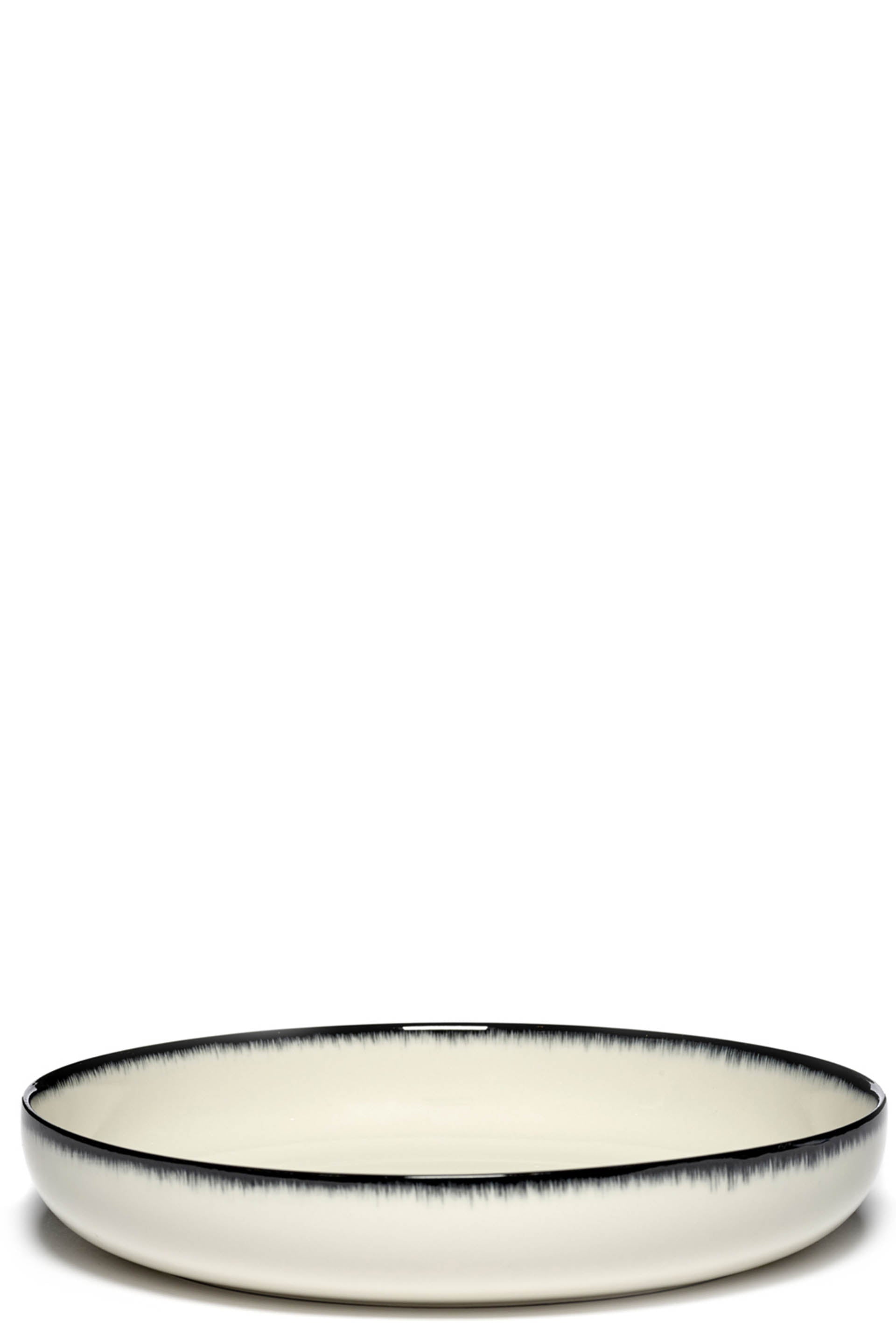 Set of 2 Ann Demeulemeester x Serax bowl-shaped High plates in off-white/black. Hand painted ‘dégradé’ in several layers. Designed by Ann Demeulemeester.