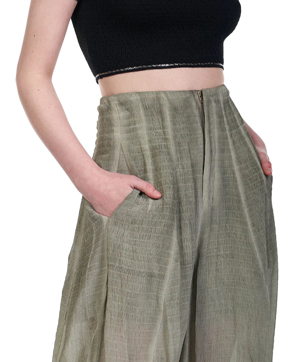 Phaedo stretch-silk trousers. Concealed zip fastening at front. High rise, tapered leg, two welt pockets at sides, all-over textured panels, silver-toned hardware, straight hem. True to size. Lightweight, slight stretch.Colour: Grey. Composition: 99% silk,1% elastane; 100% cotton.