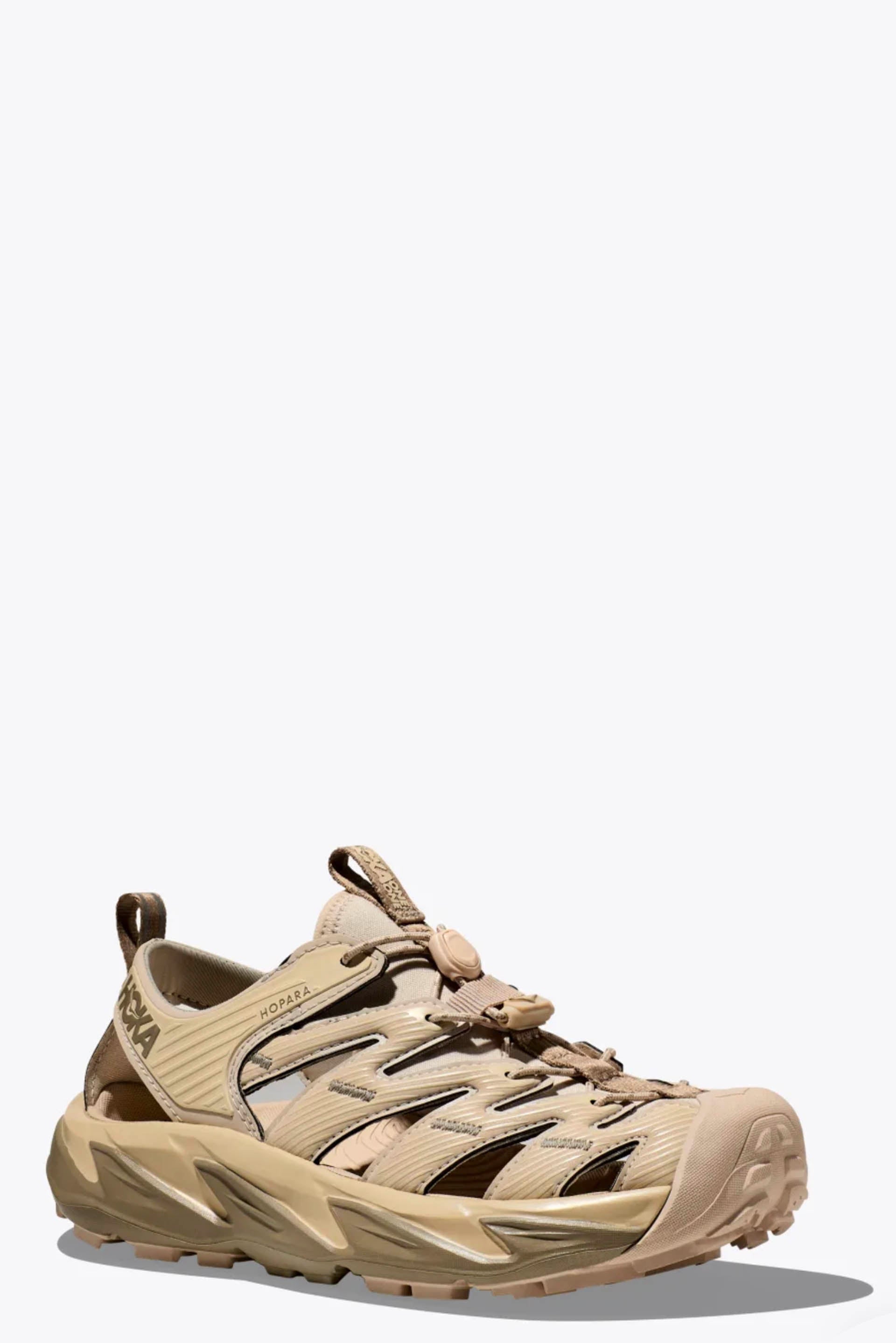 A true outdoor explorer, the Hopara easily navigates through any terrain, wet or dry. Designed through the HOKA lens, this shoe will blow other mountain sandals out of the water. The Hopara has a synthetic upper with strategic cutouts for drainage while still providing a secure lockdown. It includes a neoprene collar for flexibility and comfort plus a quick-lace system. Providing a responsive yet cushion feel thanks to a rubberised EVA midsole, the Hopara also features a rubberised toe cap for protection and a sticky rubber outsole for traction in a variety of conditions. Add in 4mm multidirectional lugs for even more grip and the Hopara is your key to adventure.