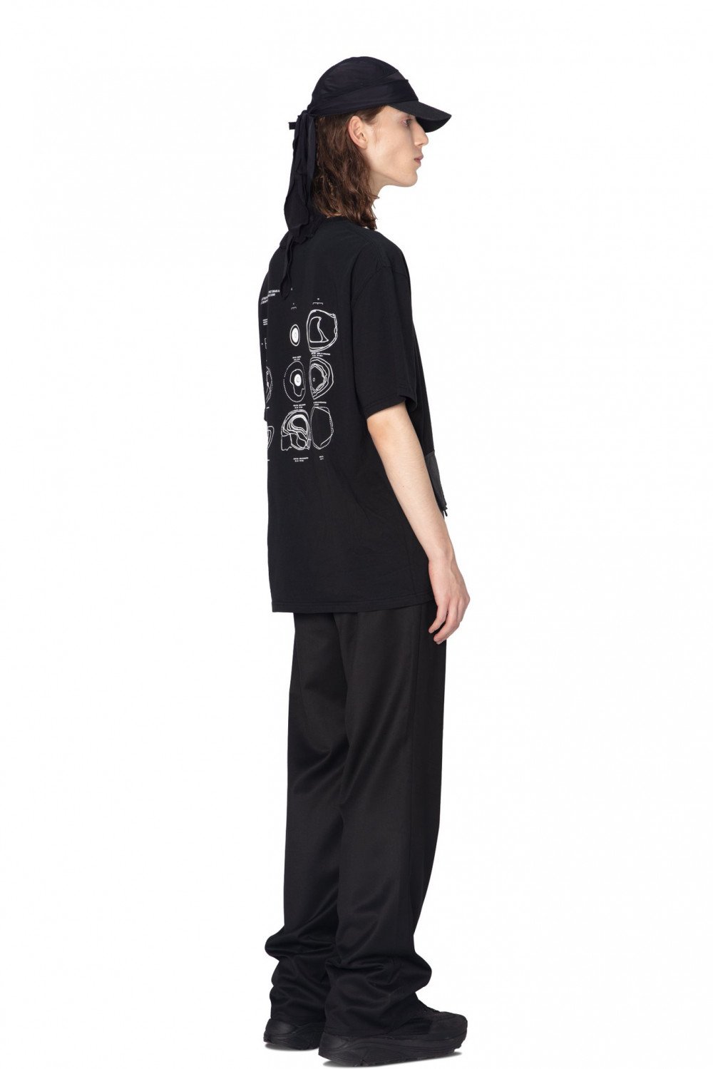 C2H4 concept ranges from hypothetical space scientists producing sport and streetwear-inspired designs creating an intergalactic underground culture. Using her studio as a laboratory, Chen’s meticulously elevates wardrobe cornerstones as seen with the "Post Human Era" Illusion Of Euphoria Printed T-Shirt.
