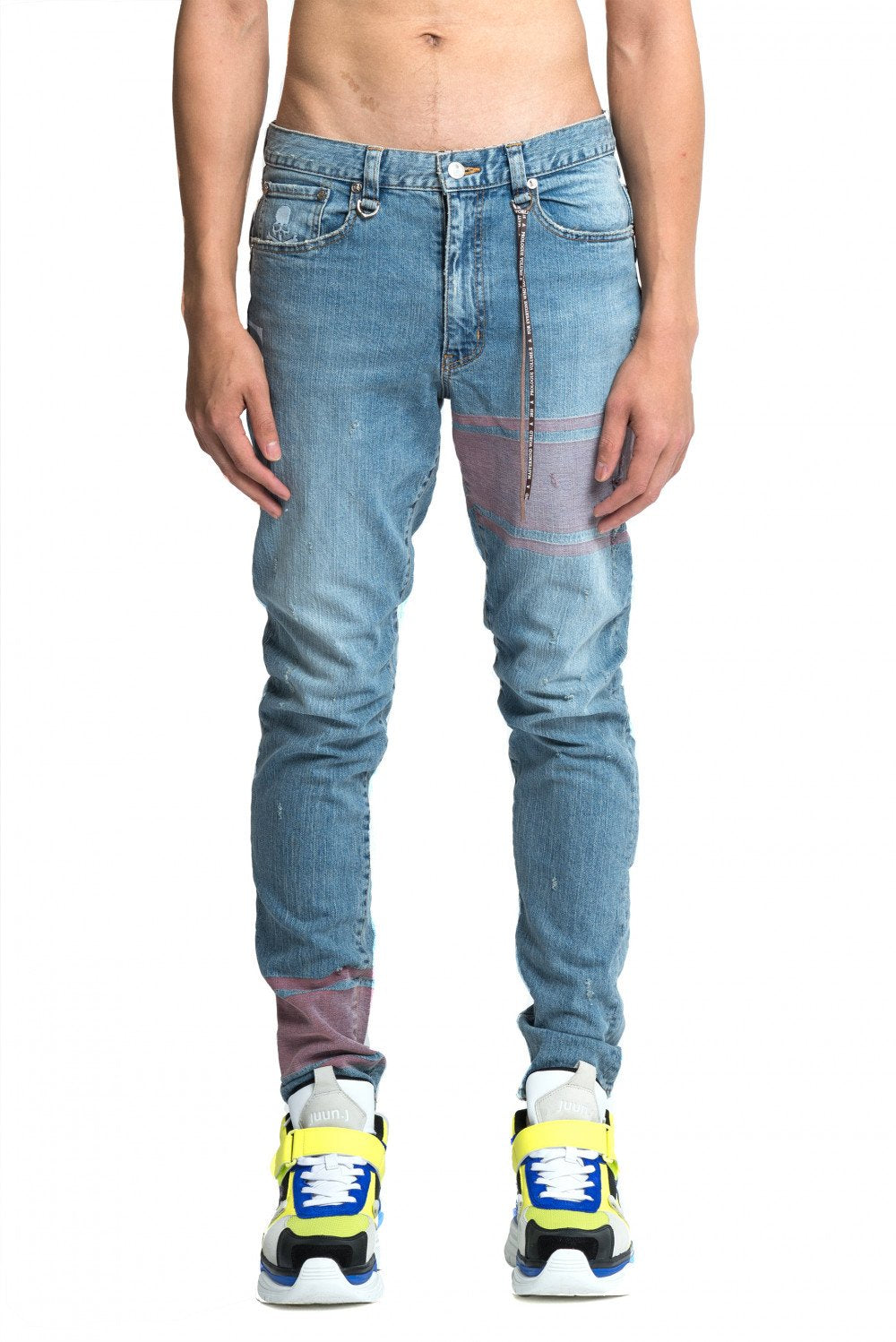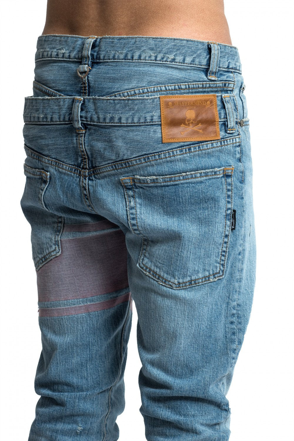 The skull and crossbones motif has now become notorious in luxury streetwear, Mastermind Japan and now Mastermind World has been the original pioneer of the streetwear movement we see today. The Indigo and Red Denim Jeans are a staple piece in any streetwear collection.