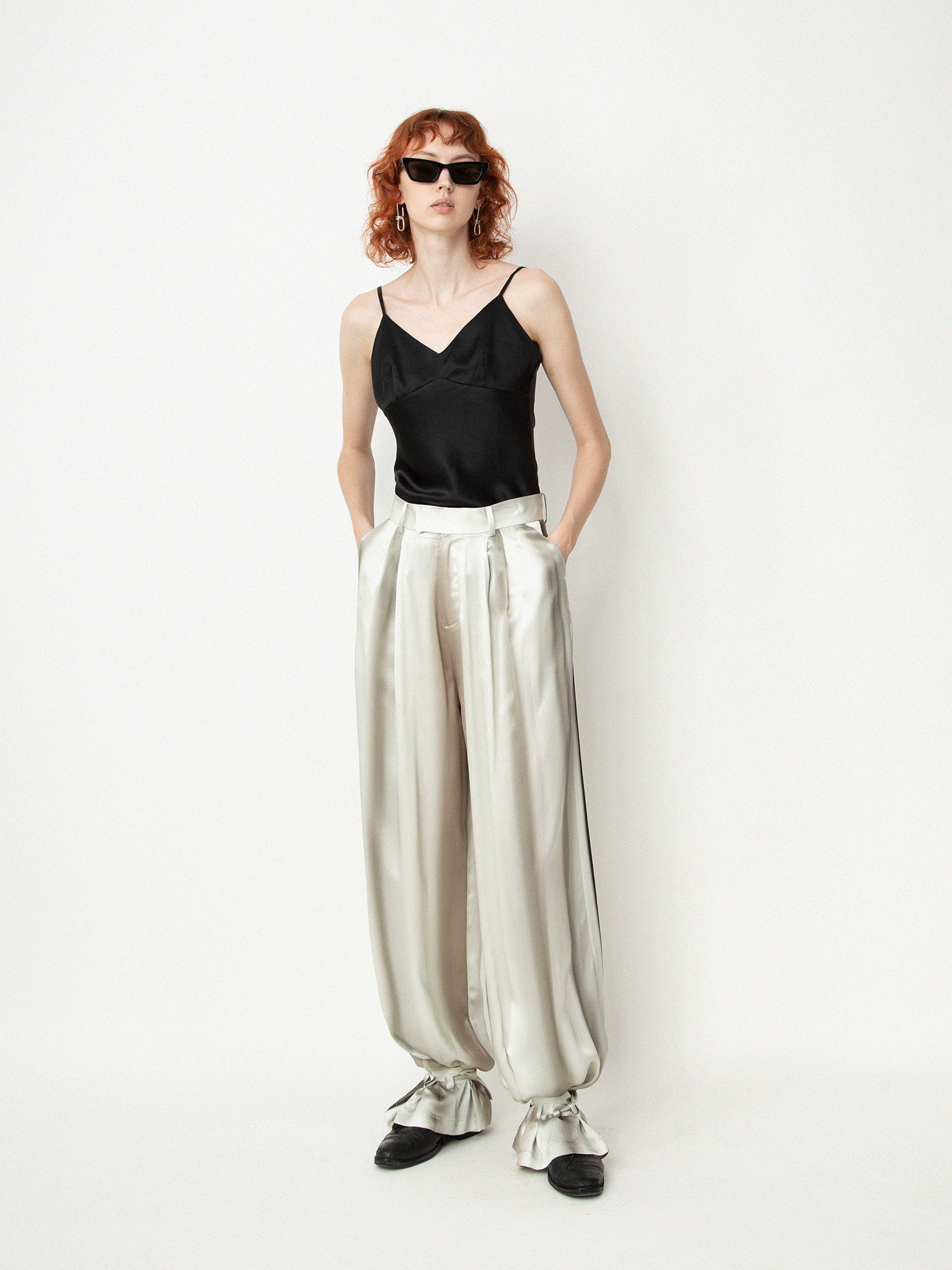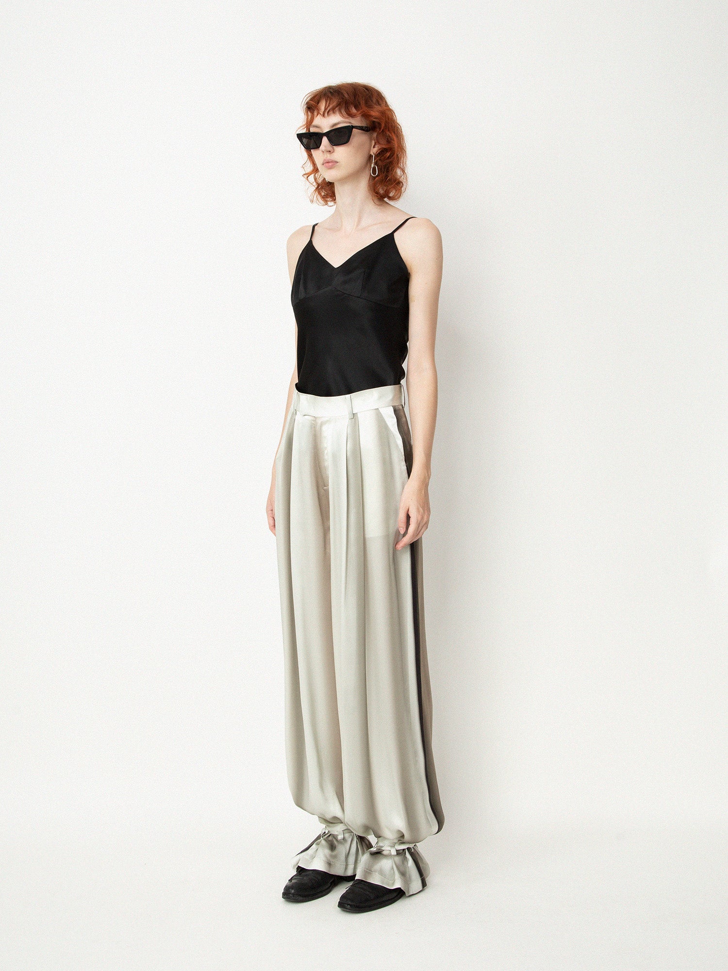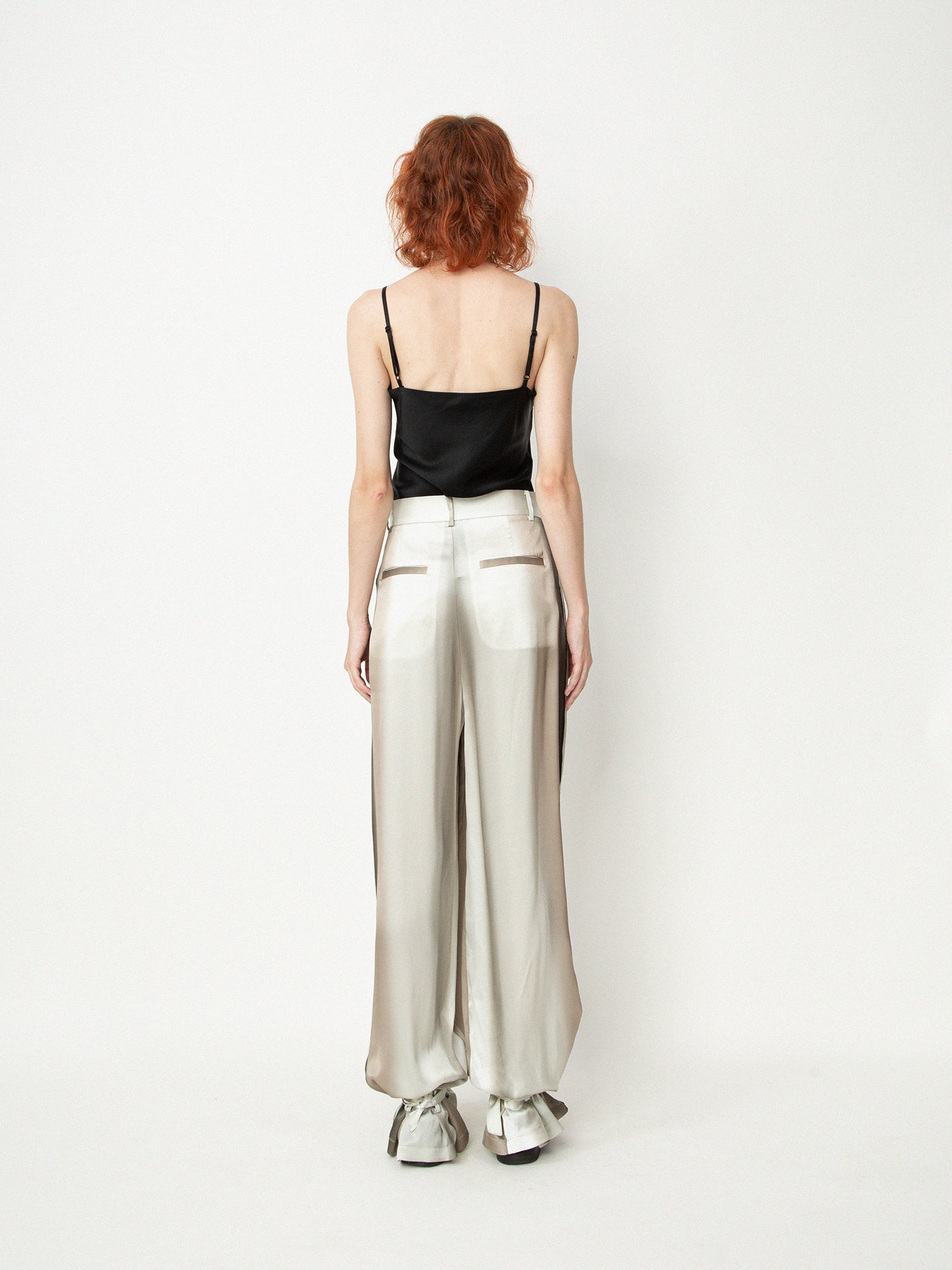 ii delivers a sense of originality, simplicity, spontaneity and a hint of childlike innocence pushing boundaries among ages to present qualitative collections with timeless touches designed for independent individuals as seen with the Ink Prints-Silk High Waisted Trousers from ii sense.
