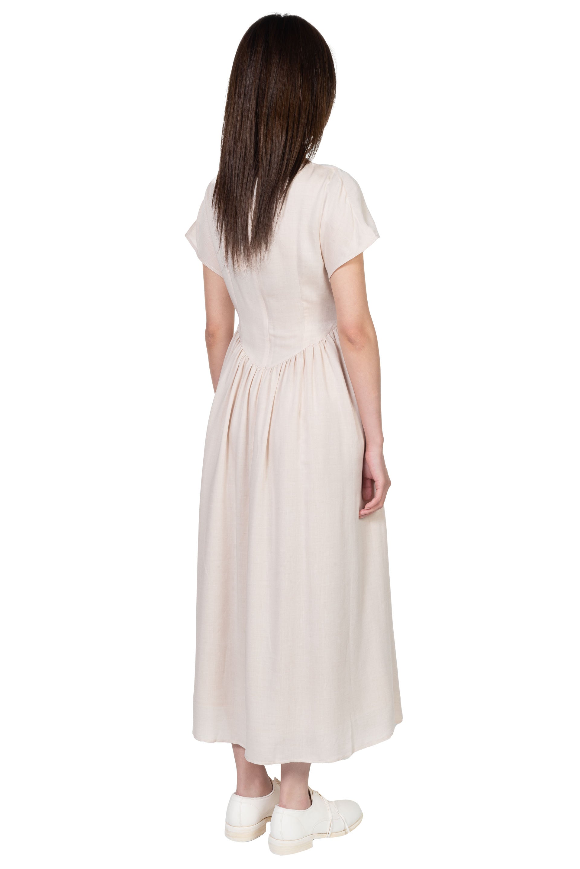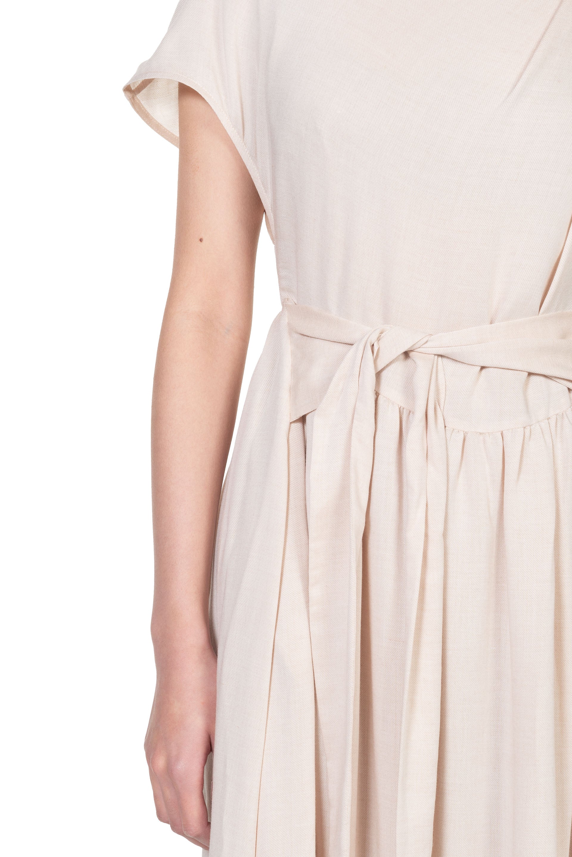 pushing boundaries among ages to present qualitative collections with timeless touches designed for independent individuals as seen with the Ivory Tie Waist Dress.