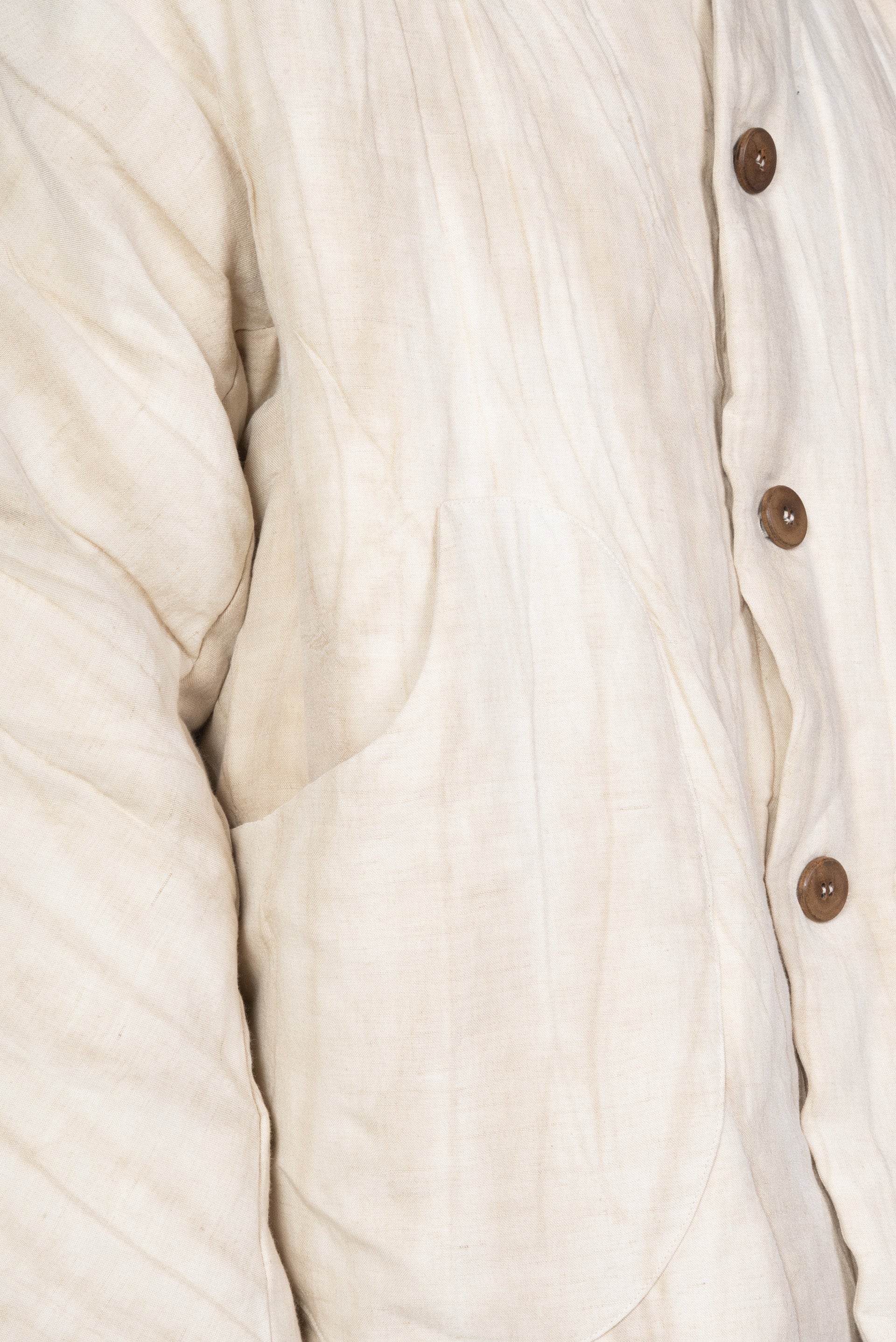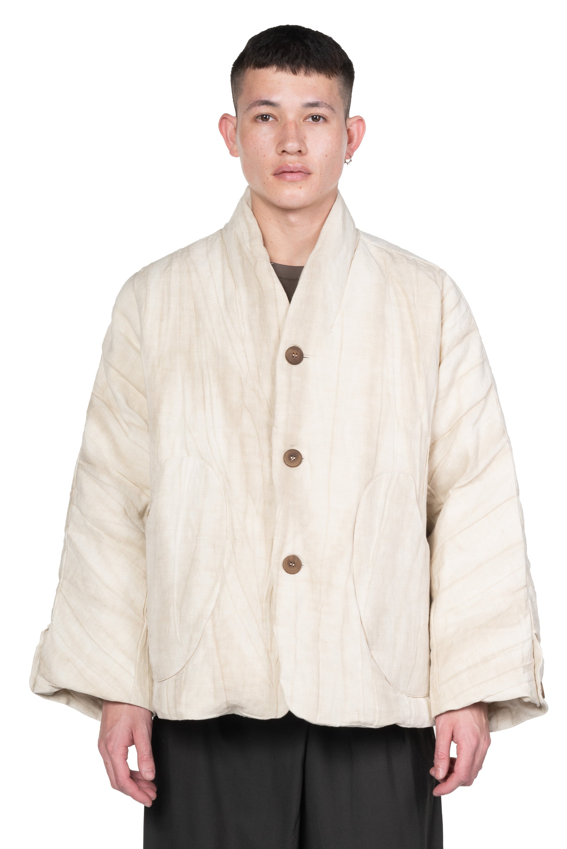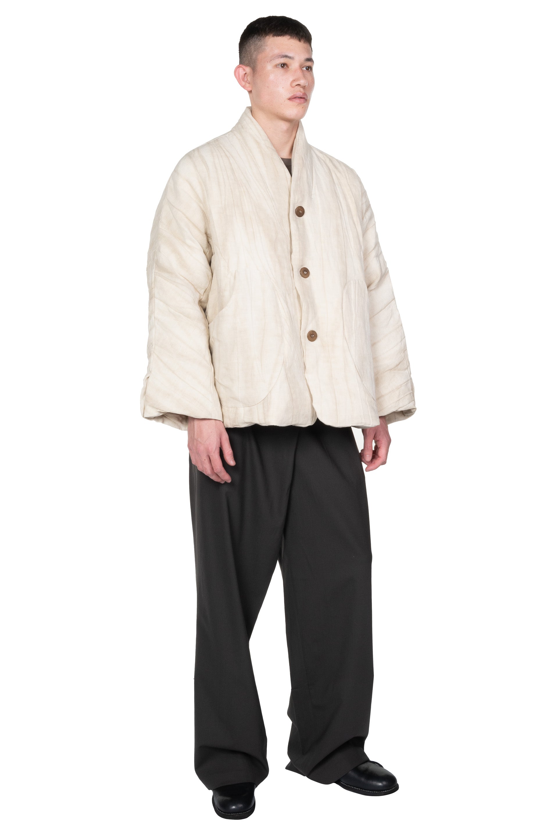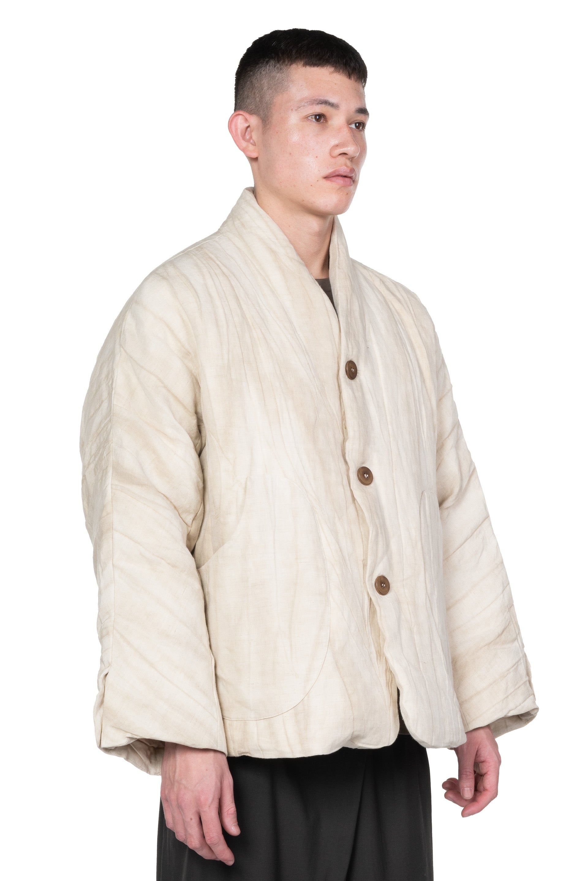 Kar Studio is an independent interior design studio, furniture and clothing brand exploring the cause and effect of aesthetics, integrating tradition and modernity. Kar is presenting modern design with Oriental philosophy. Inspired by art, literature, memories and emotions Kar focuses on design sensibility aiming to convey emotion that will resonate with people as seen with the Ivory White Padded Kimono Jacket.