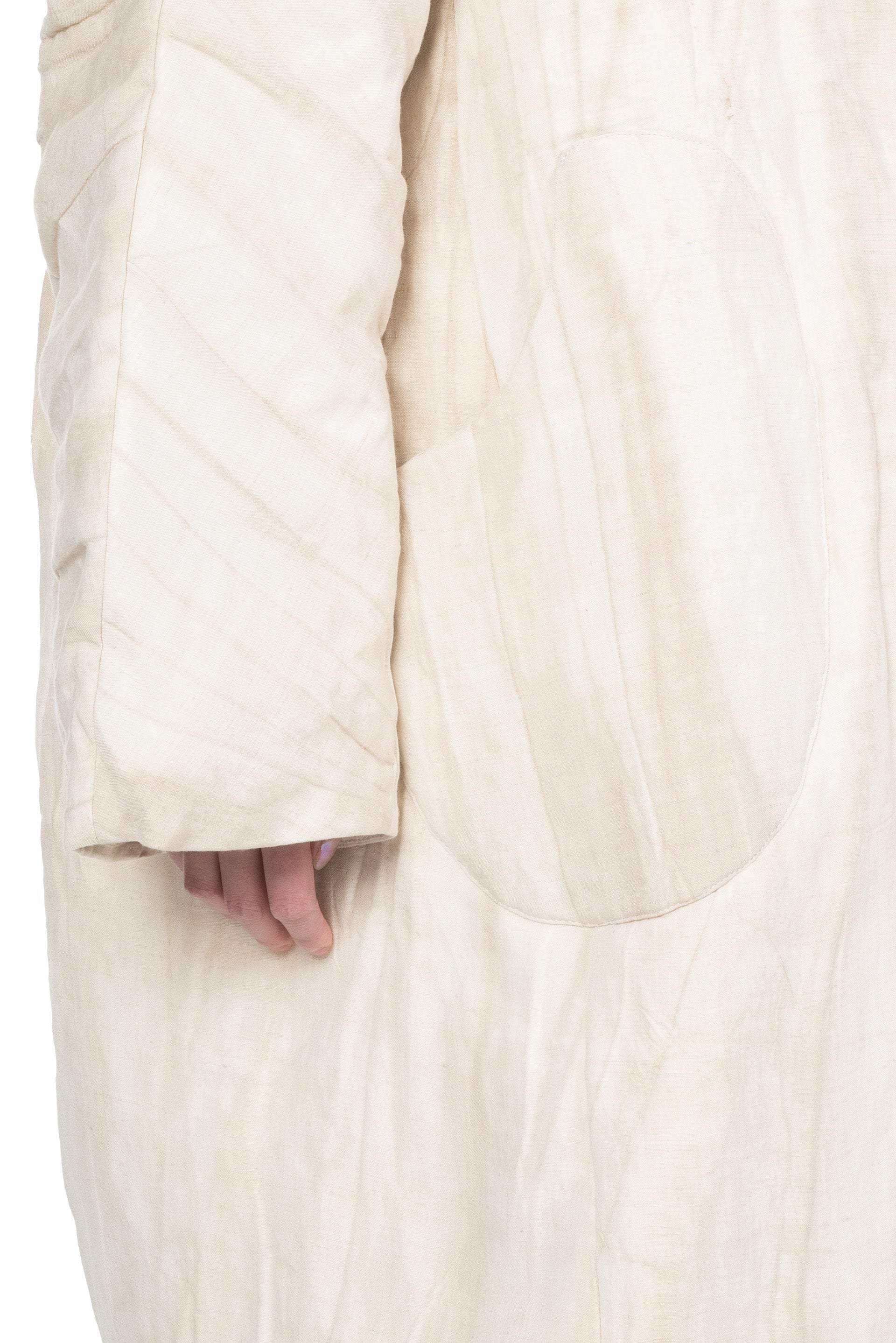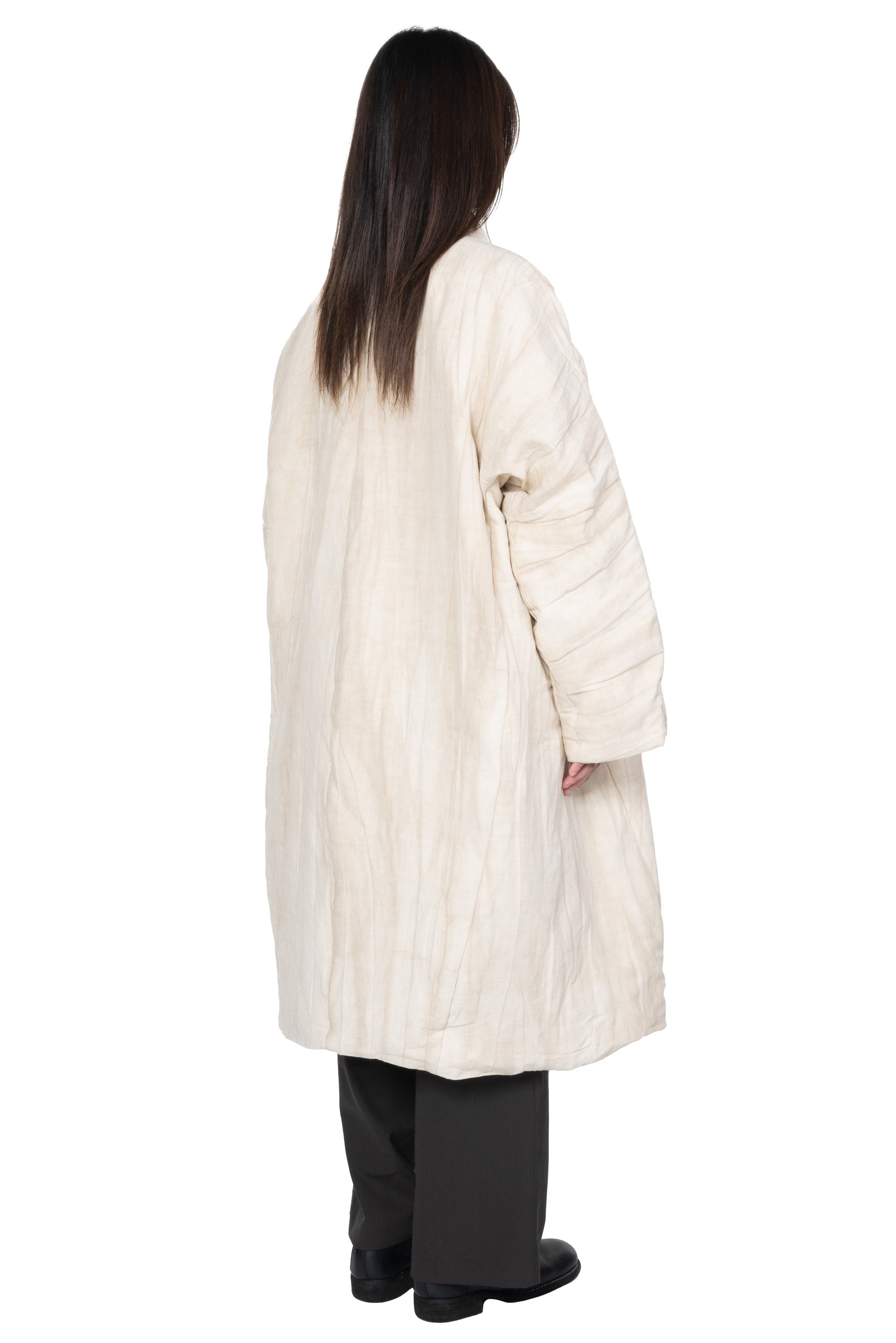 Kar Studio is an independent interior design studio, furniture and clothing brand exploring the cause and effect of aesthetics, integrating tradition and modernity. Kar is presenting modern design with Oriental philosophy. Inspired by art, literature, memories and emotions Kar focuses on design sensibility aiming to convey emotion that will resonate with people as seen with the Ivory White Padded Long Coat.
