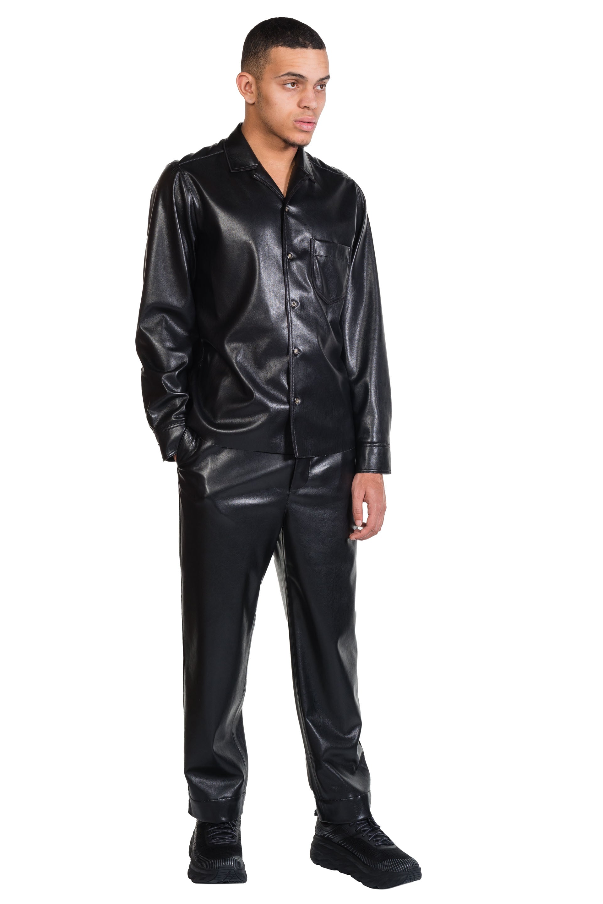 This easy-to-wear casual pant has a relaxed shape and a wide leg. Dynamic and versatile, the Jain features a drawstring waist and is crafted from our classic vegan leather.