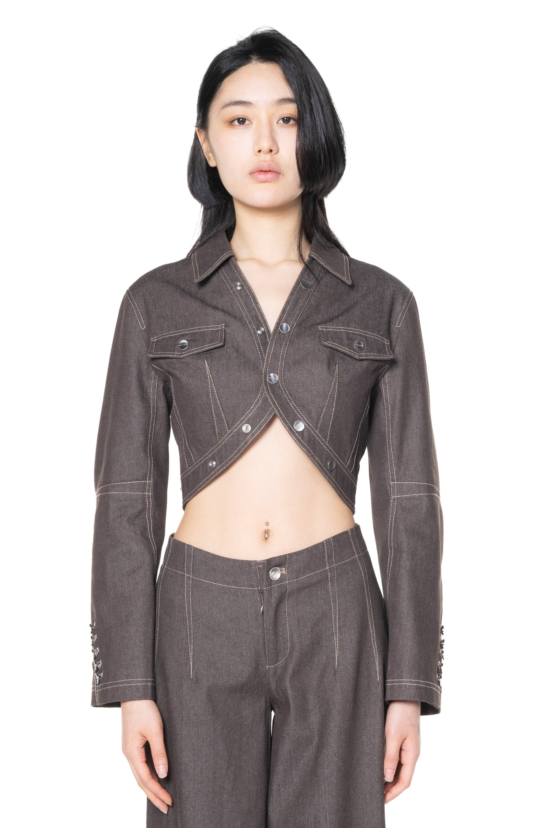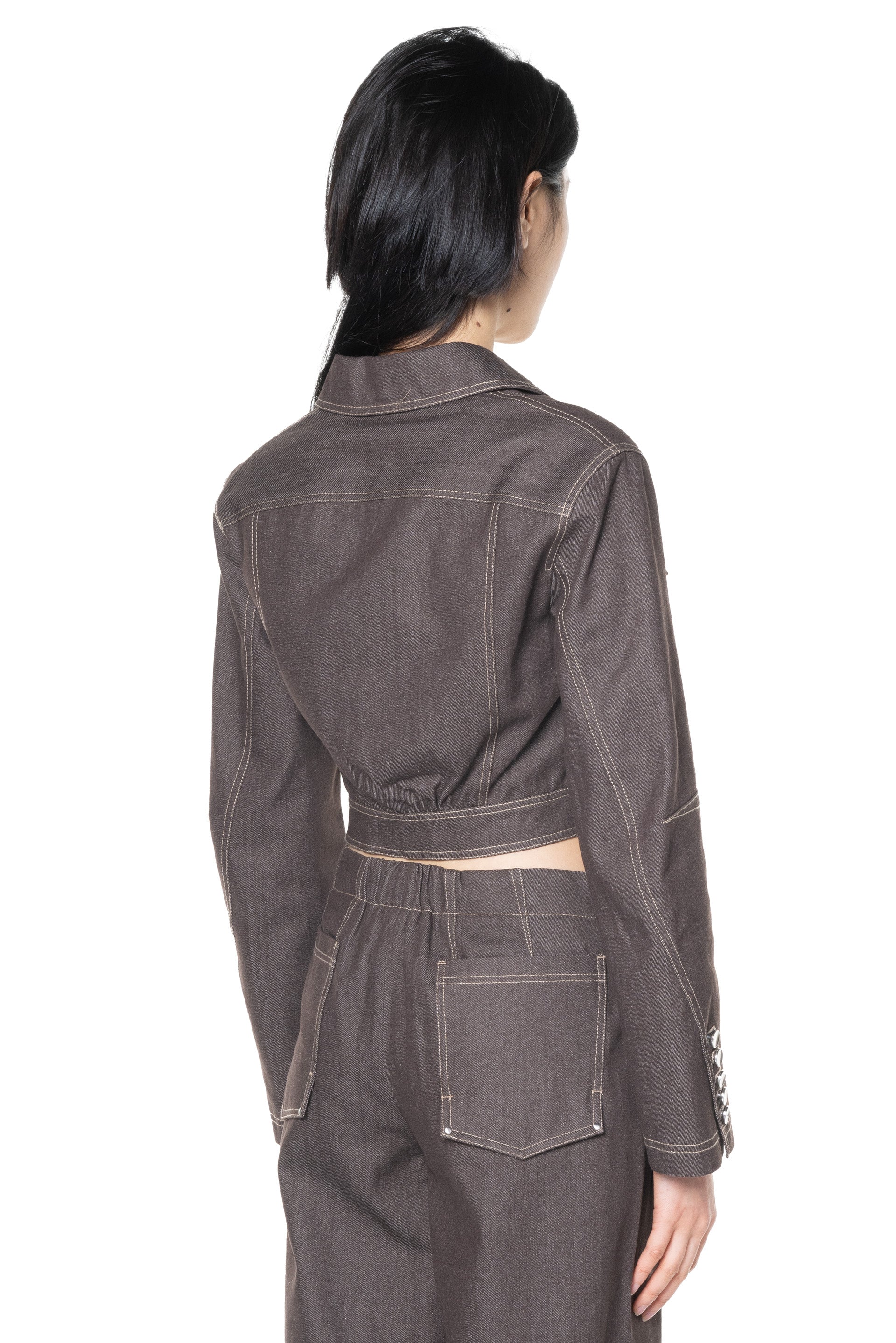OUDE WAAG strikes a balance between Asian aesthetics and Western cutting. It is at the heart of designer’s philosophy: celebrating the power of women, yet simultaneously critiquing the ongoing objectification and idealisation of the body as you can see with the Jean Cropped Jacket.