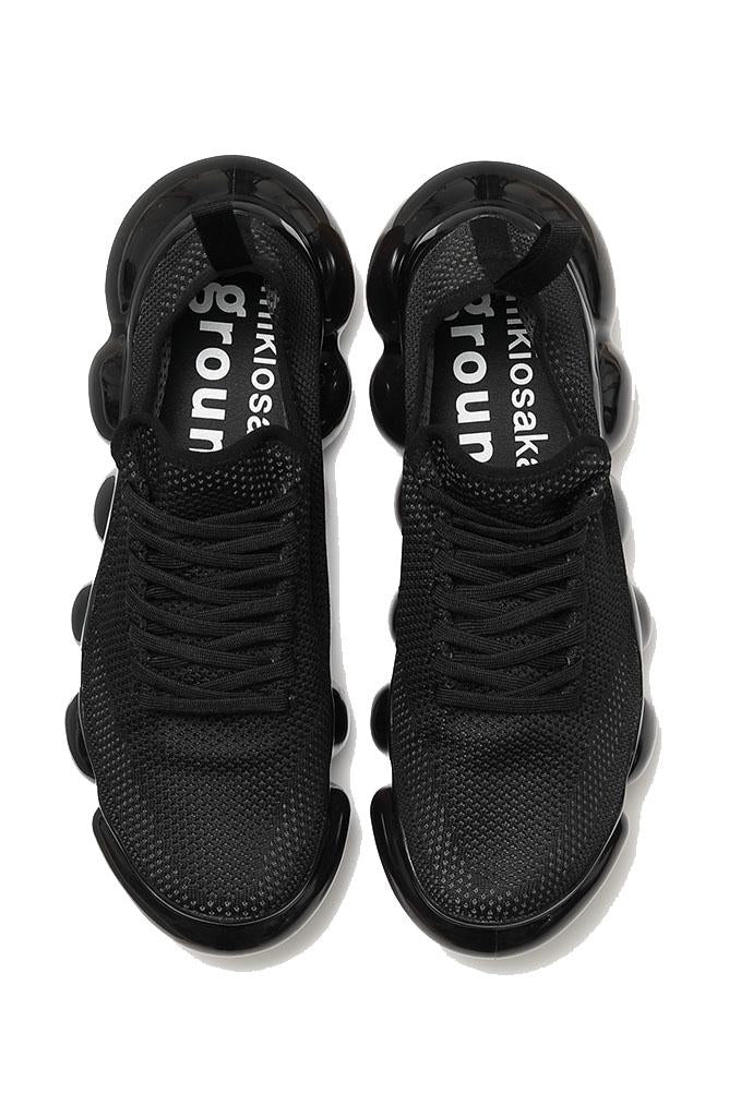 Thick Black clear soles made of transparent spheres reminiscent of jewelry draw the wearer's and viewer's attention to wearer's feet. Each sphere is designed to move softly with the movement of your foot, giving you a unique walking and gripping experience. In addition, the flexibility of the material is controlled to provide optimal cushioning when worn, creating a fluffy, floating sensation that you can't feel when you touch them with your hands.The Black Gray knit upper, which is simple in contrast to the distinctive shape of the outsole, is deliberately minimalist in order to match with a wide range of fashion. The height of the heel is about 5 cm for all sizes, and while the heel is voluminous, it is transparent to reduce the appearance of weight.
