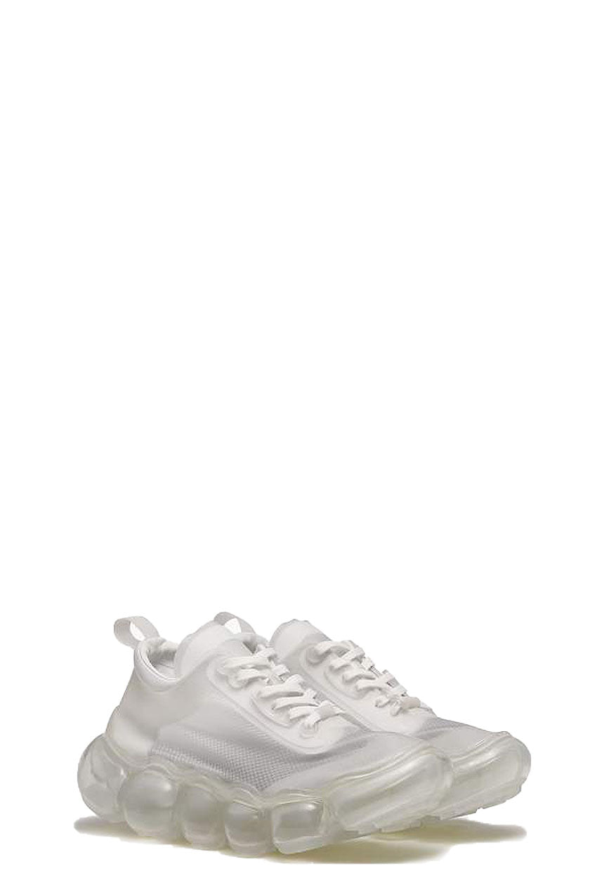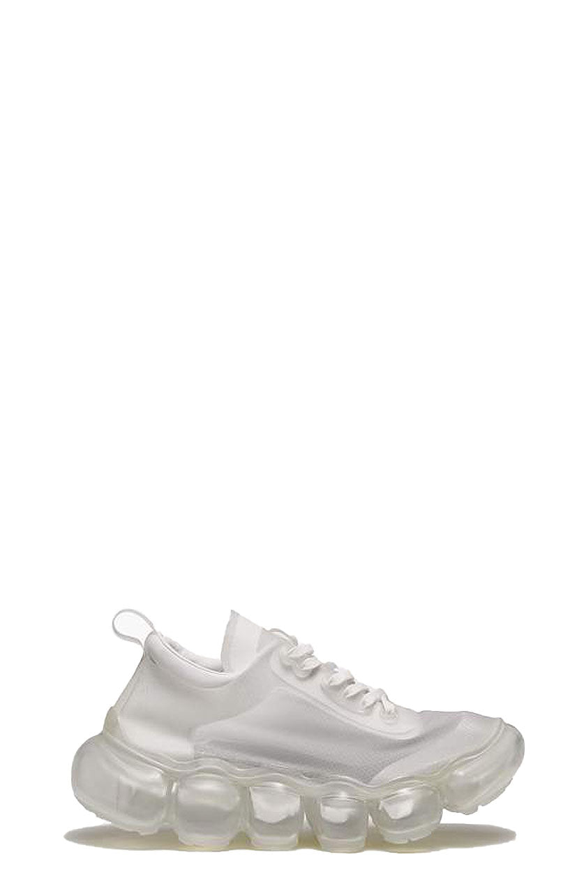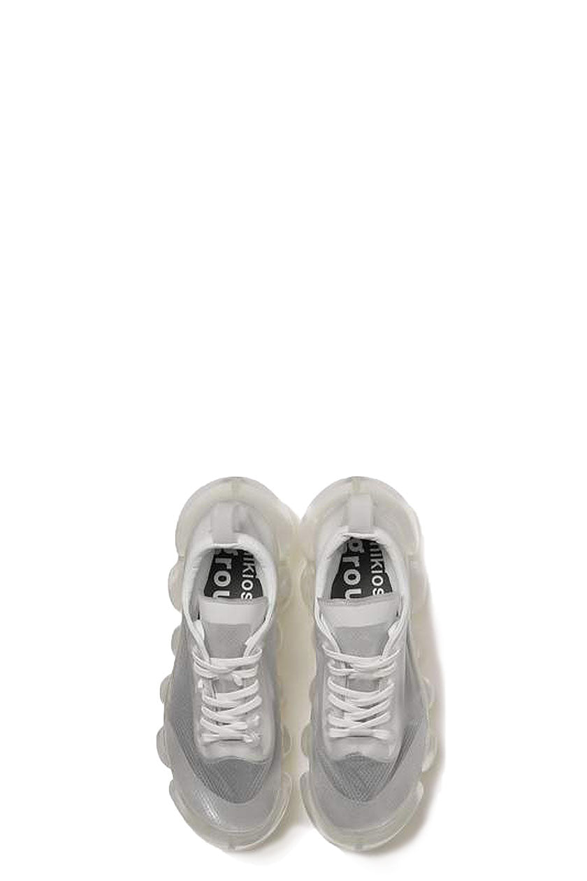 Grounds translates the pulse of Japanese youth into bold shoe design as seen with the Jewelry Transparent Clear. Shoes that are wearable jewelry Thick-soled clear soles made of transparent spheres reminiscent of jewelry draw the wearer's and viewer's attention to wearer's feet. Each sphere is designed to move softly with the movement of your foot, giving you a unique walking and gripping experience. In addition, the flexibility of the material is controlled to provide optimal cushioning when worn, creating a fluffy, floating sensation that you can't feel when you touch them with your hands. The transparent upper matched with the clear outsole gives a cool and futuristic impression. The heel is voluminous, it is transparent to reduce the appearance of weight.
