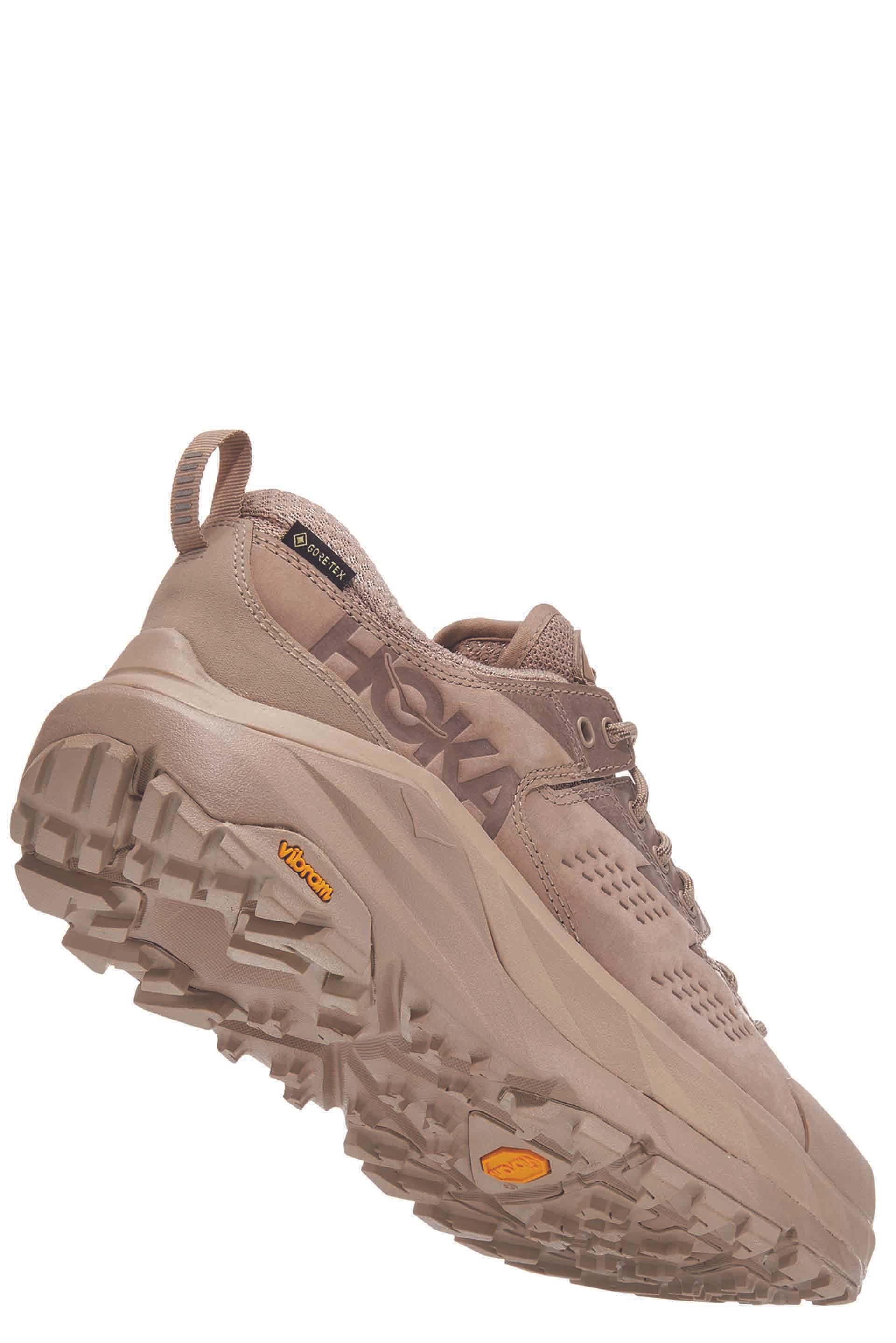 Engineered with the same geometries and materials as the original silhouette, the Kaha Low GORE-TEX emerges this season in a lower, ankle-height profile. Taking its name from the Māori word for strength and support, the Kaha delivers on both, making uphill climbs easier and downhill descents faster. Remarkable in its weight-to-cushion ratio, the Kaha Low GORE-TEX offers the full HOKA package — combining proprietary foams, patented geometries, exceptional Vibram® Megagrip traction and an adjustable lacing system for foot lockdown. Soft and smooth, yet inherently supportive, the new Kaha Low GORE-TEX features the same GORE-TEX bootie as the original, designed to keep feet comfortable and dry in any forecast.