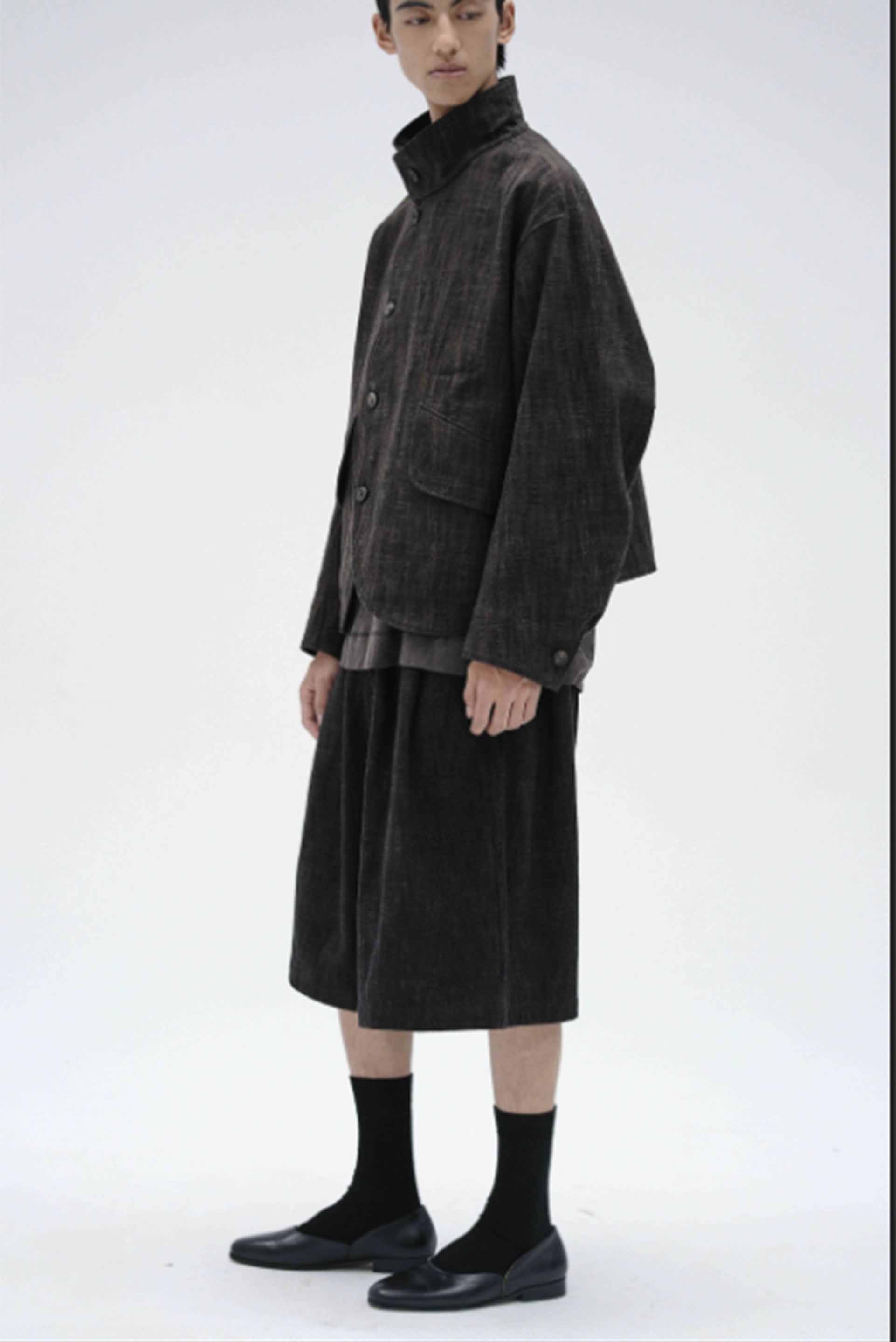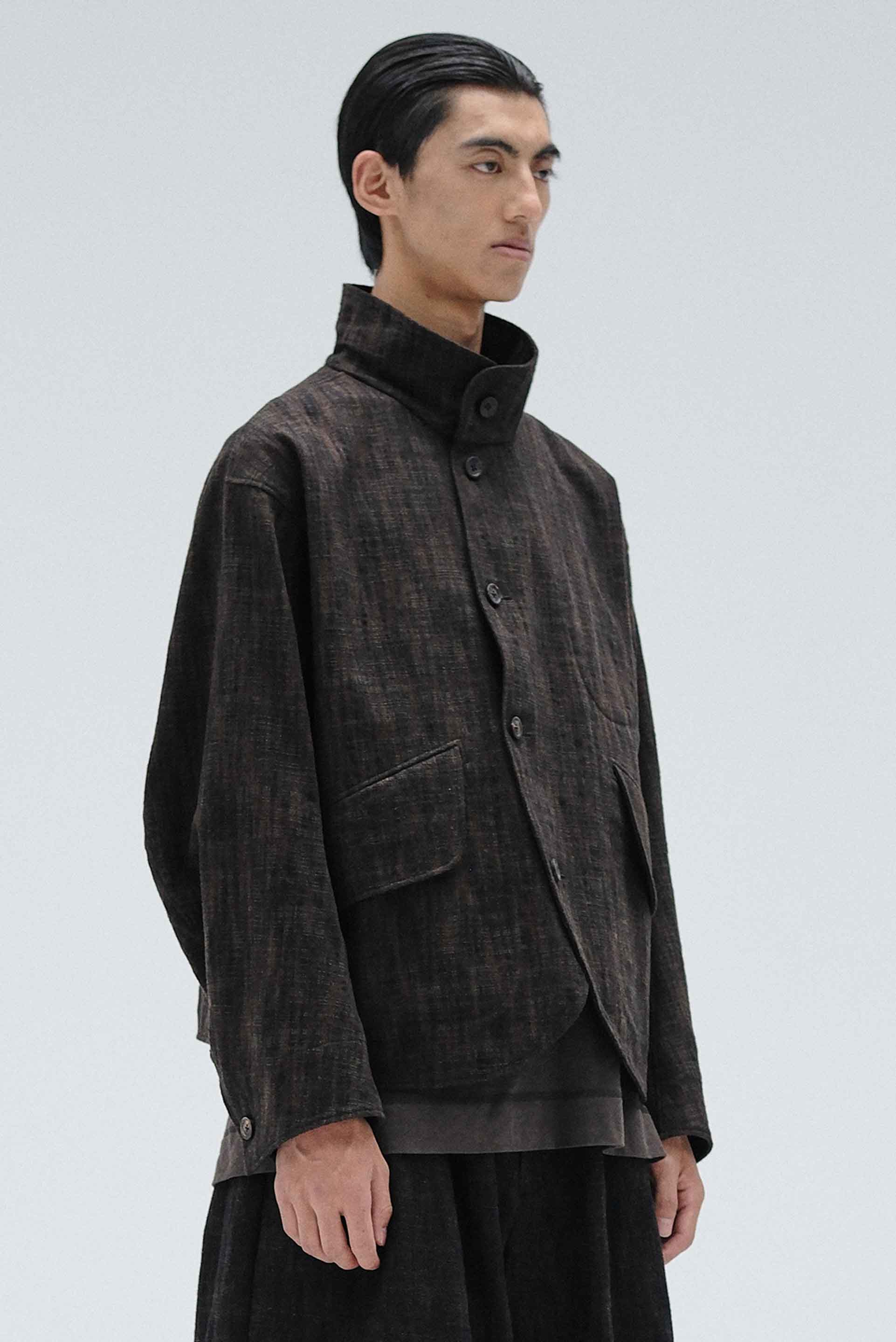 ATTEMPT reconstructs different styles and elements to create a new aesthetic system. By taking a more experimental approach to creation and production, which involves an understanding of the past and the current form of society, Attempt is creating an aesthetic form that is anchored in the present but different from it. It must ultimately be a product that cannot be defined as seen with the Kalary Jacket Dark Brown