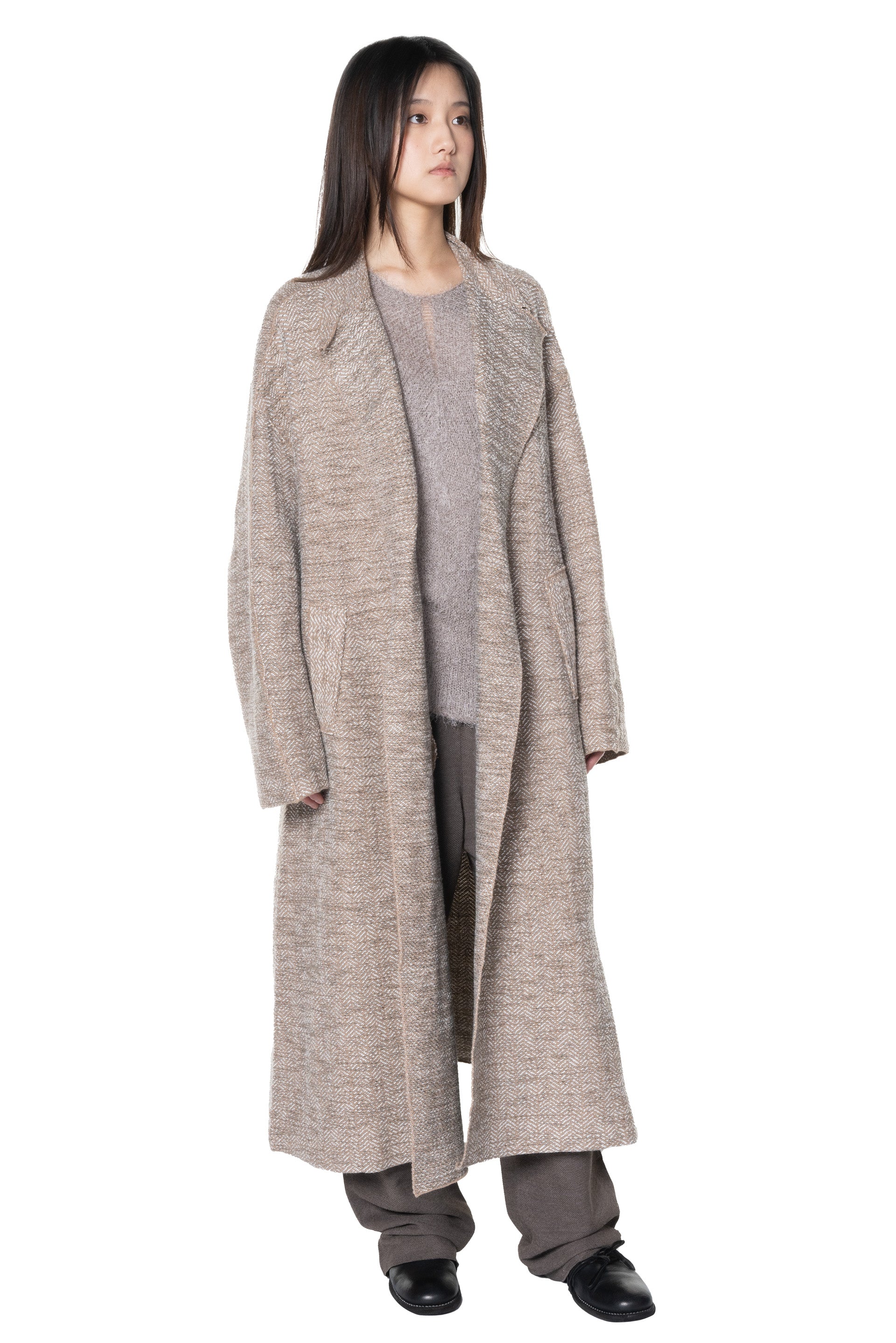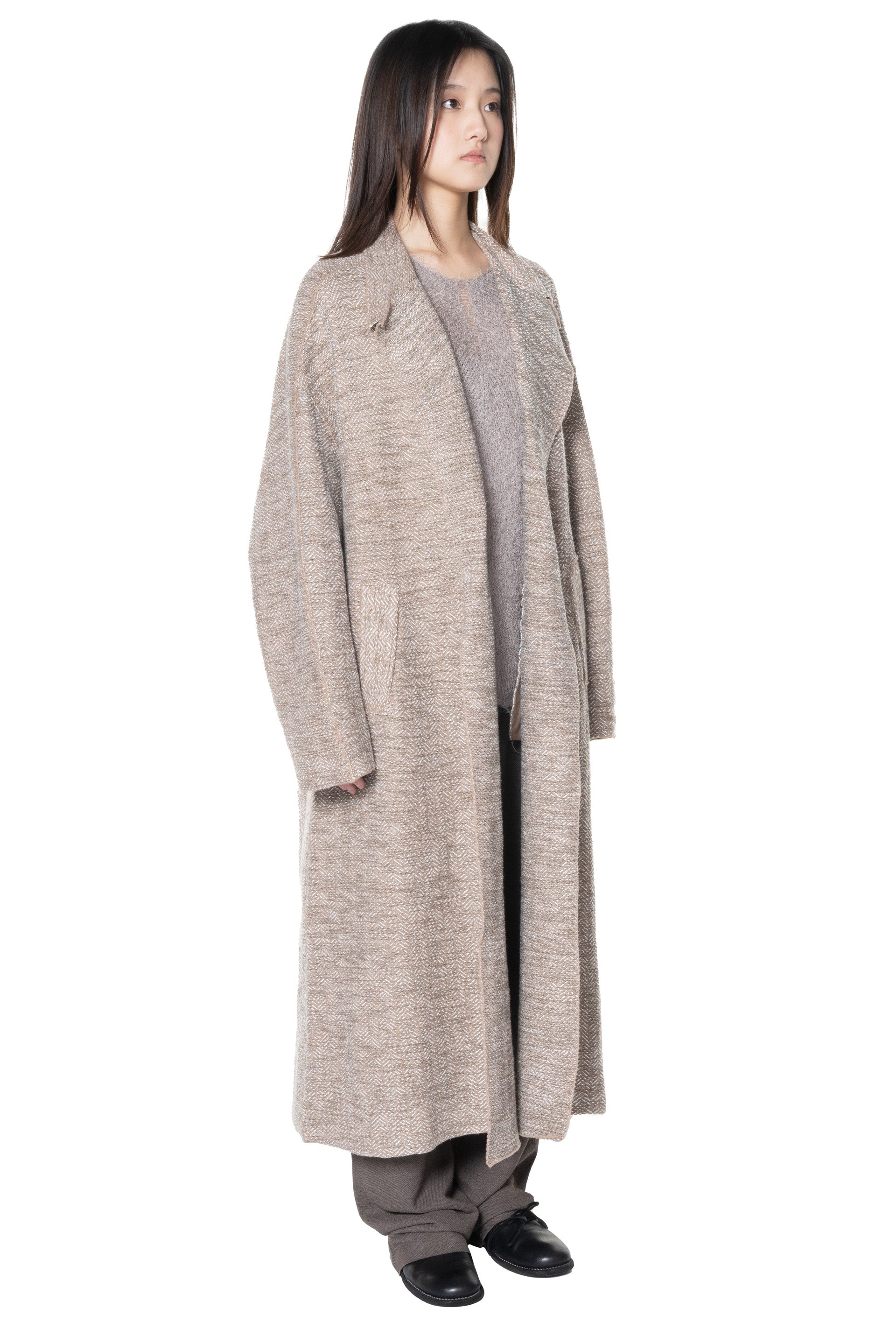 Boboutic consider knits an ideal medium, since its versatility allows conceiving unique surfaces and unexpected shapes. The approach to knitwear is unpredictable, aiming at creating a product where materials and structures compensate each other as seen with the Khaki Natural Coat.