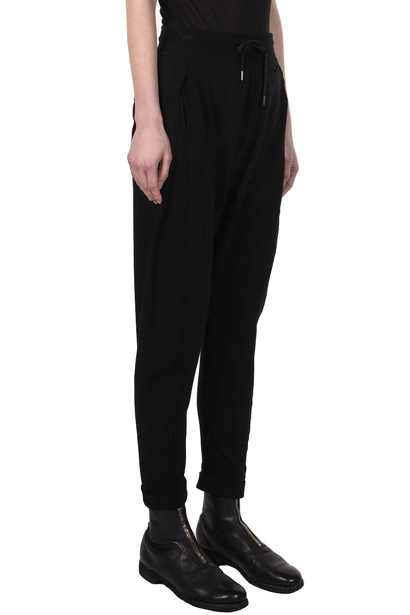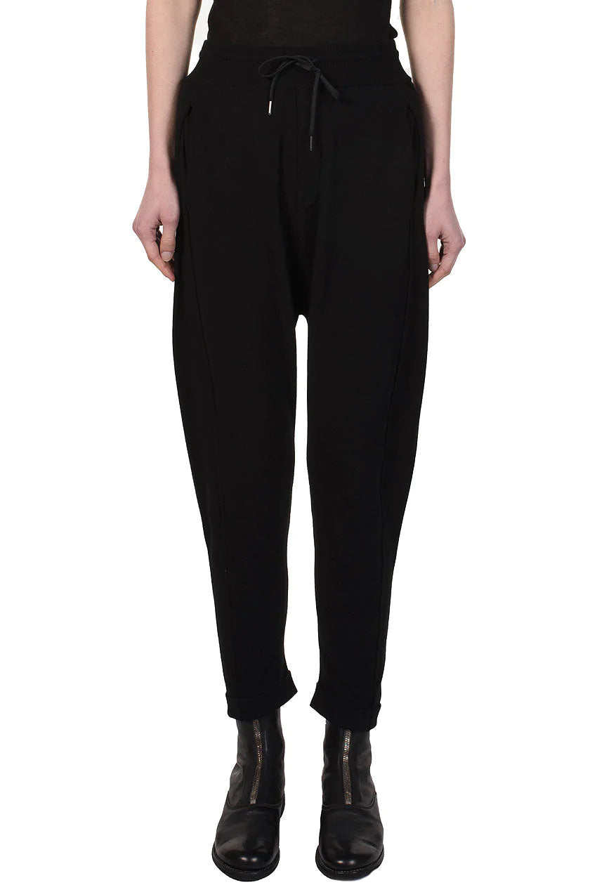 Jogging stretch knit pant. Drawstring at waist. Regular fit. Soft and light feel.