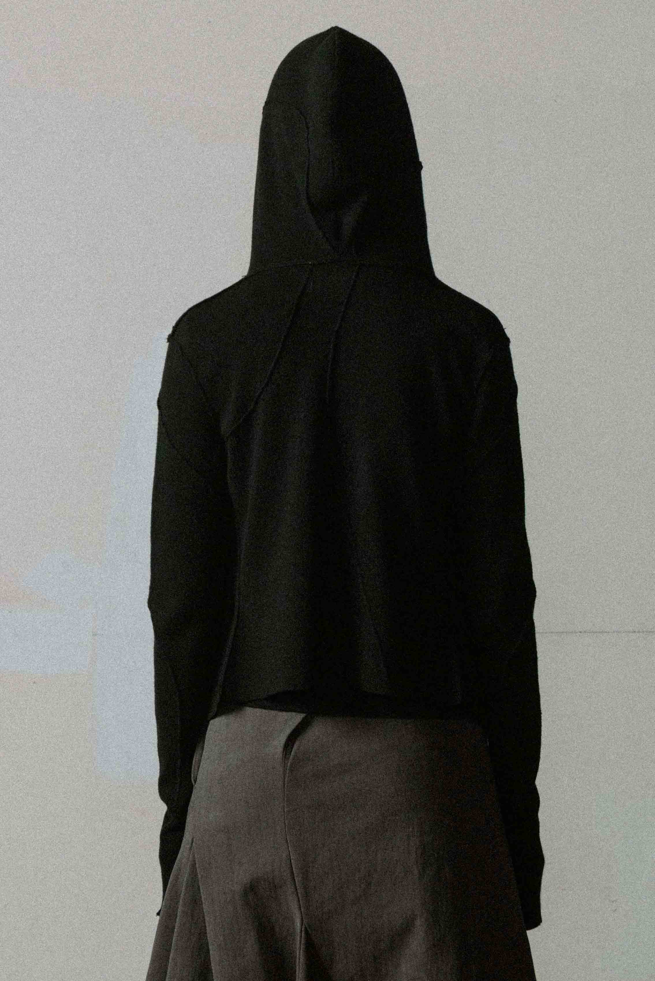 ATTEMPT reconstructs different styles and elements to create a new aesthetic system. By taking a more experimental approach to creation and production, which involves an understanding of the past and the current form of society, Attempt is creating an aesthetic form that is anchored in the present but different from it. It must ultimately be a product that cannot be defined as seen with the Knitted Hoodie Black.