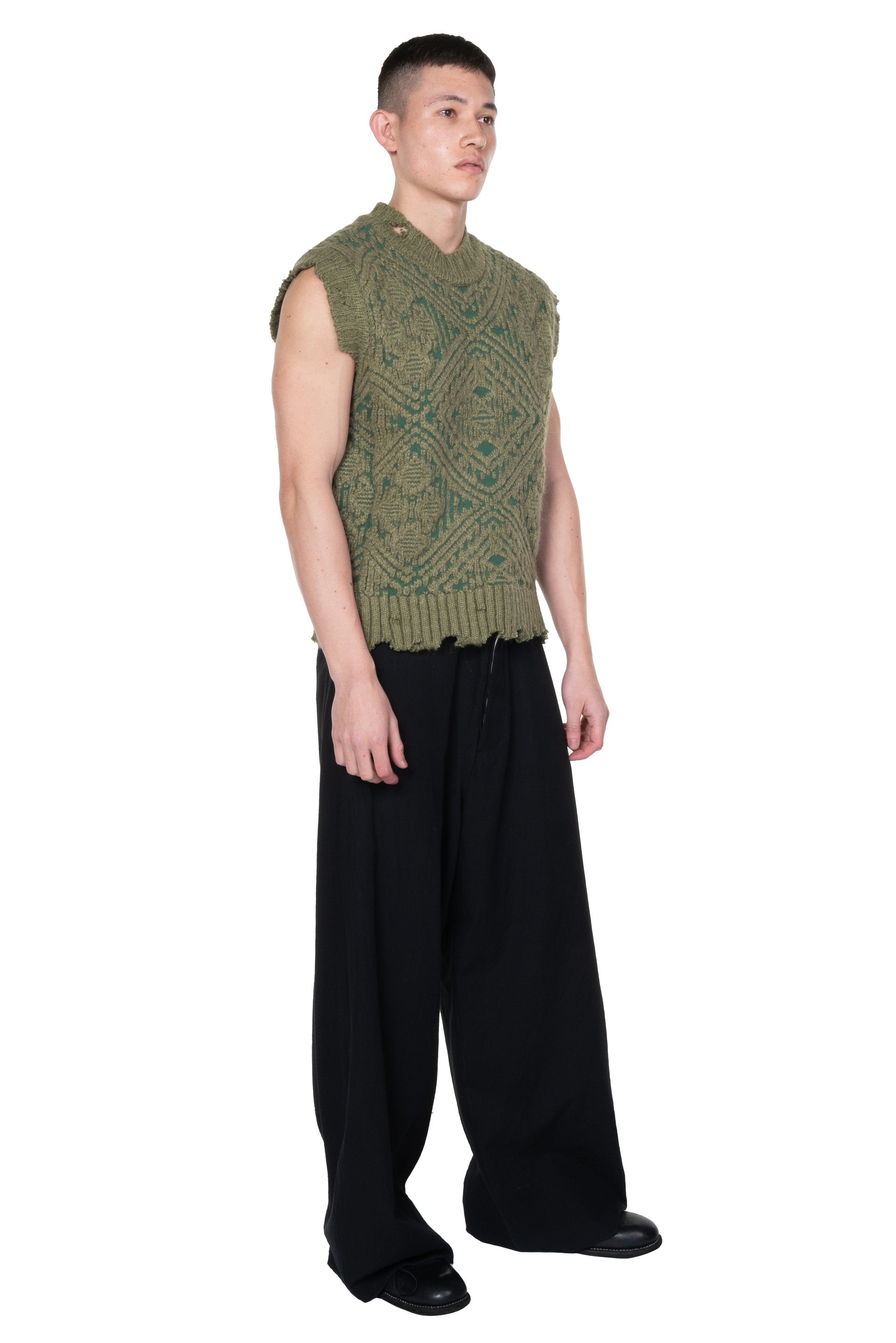 Inspired by Korean and Scandinavian culture, the brand reinterprets and combines two contrasting traits to create an individual and unique aesthetic and perspective. Constructed from top-tier materials sourced from around the globe, Andersson Bell’s designs are ultimately intended to last a lifetime as seen with the Knitted Jacquard Crew-neck Vest Khaki.