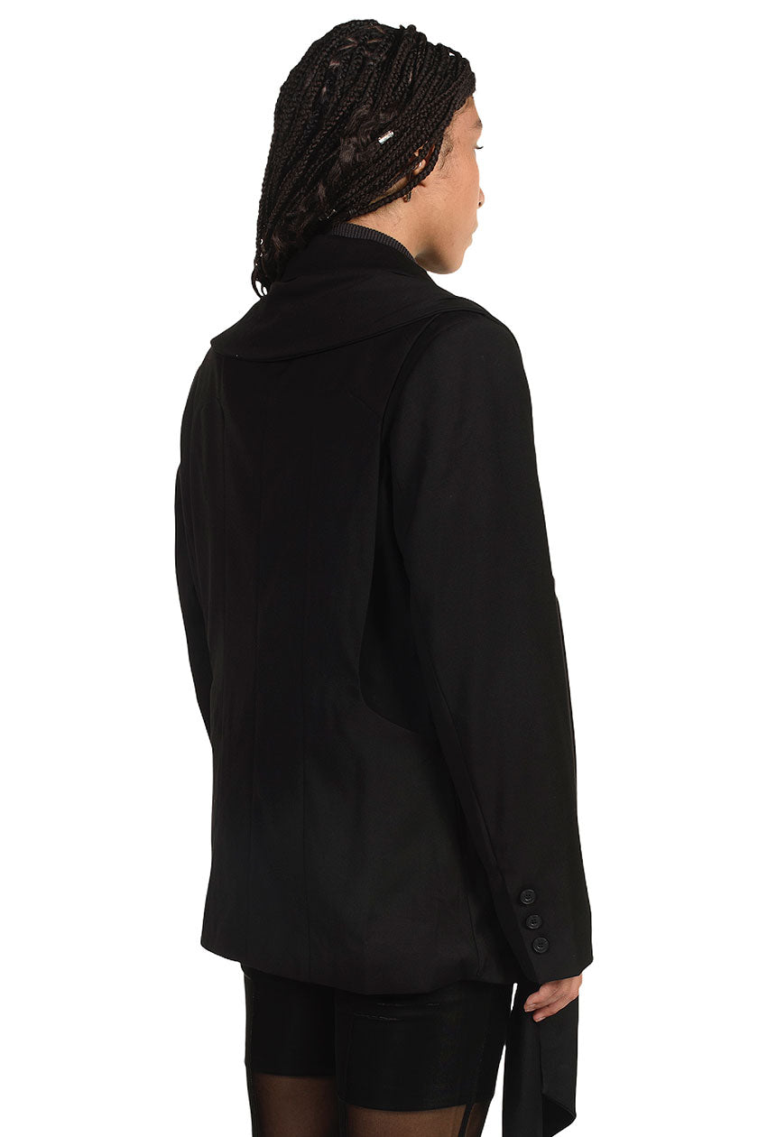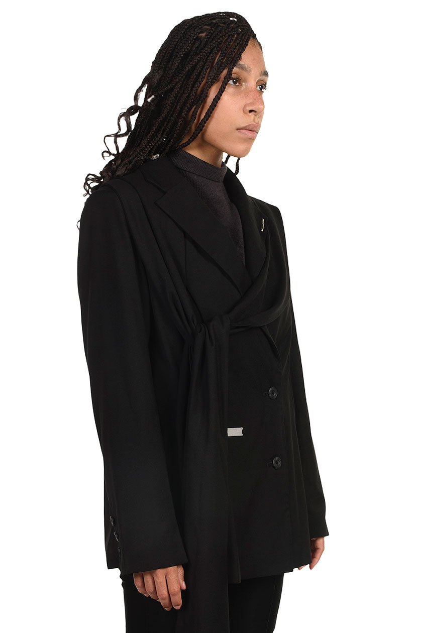 C2H4 concept ranges from hypothetical space scientists producing sport and streetwear-inspired designs creating an intergalactic underground culture. Using her studio as a laboratory, Chen’s meticulously elevates wardrobe cornerstones as seen with the Layered Arc Cutting Tailored Jacket.