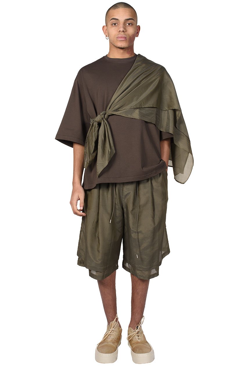 Joe chia is built immensely around exceptional construction, fine fabrications and precise tailoring, entwining classicism with contemporary references that stand the test of time, challenging and reimagining duality with innovation and a sense of audacity as you can see in the Layered drop crotch Shorts.