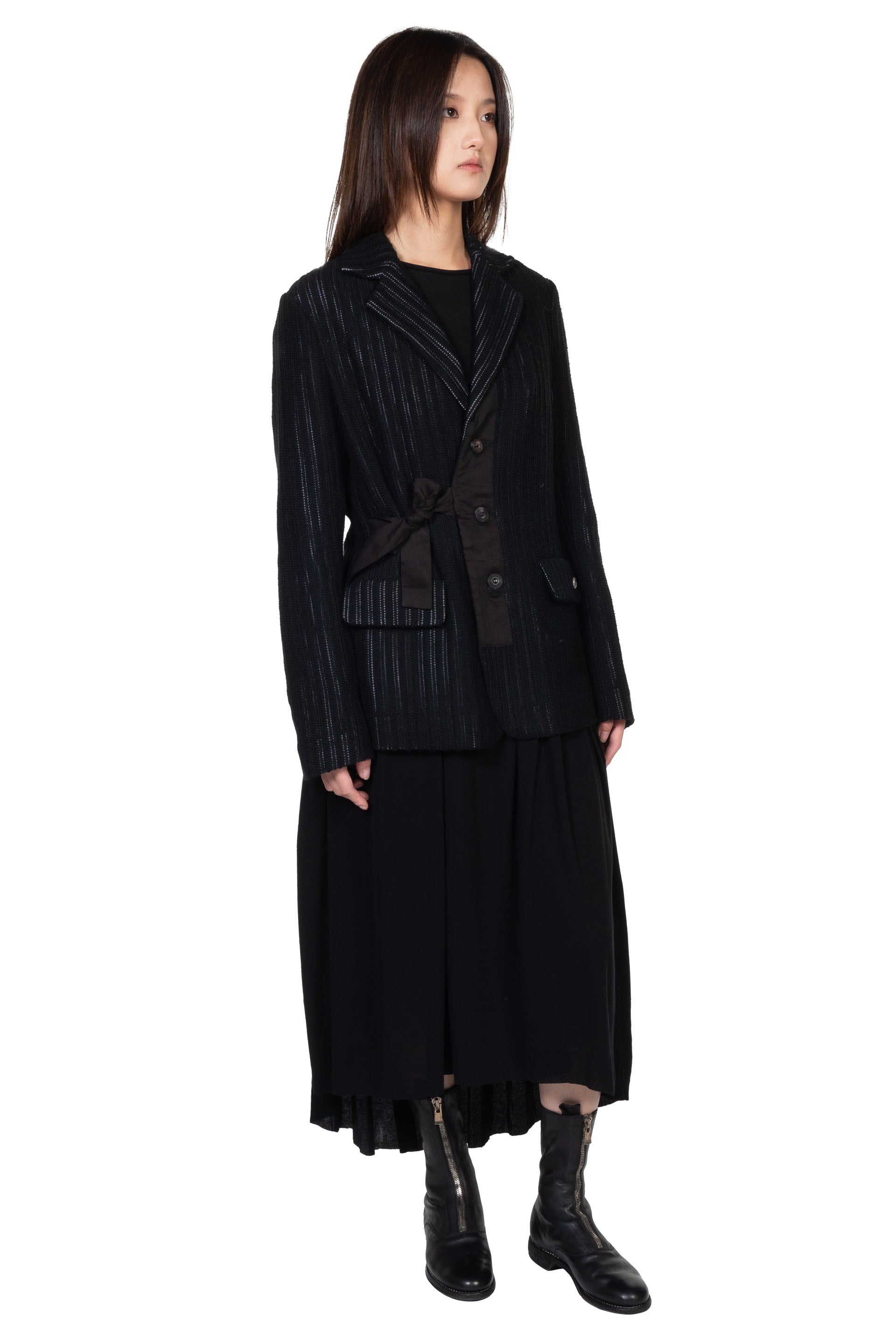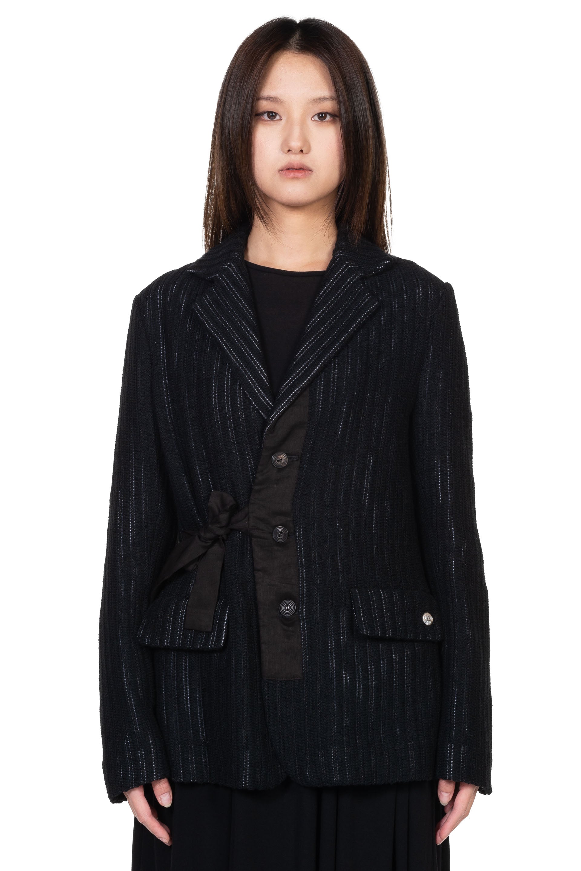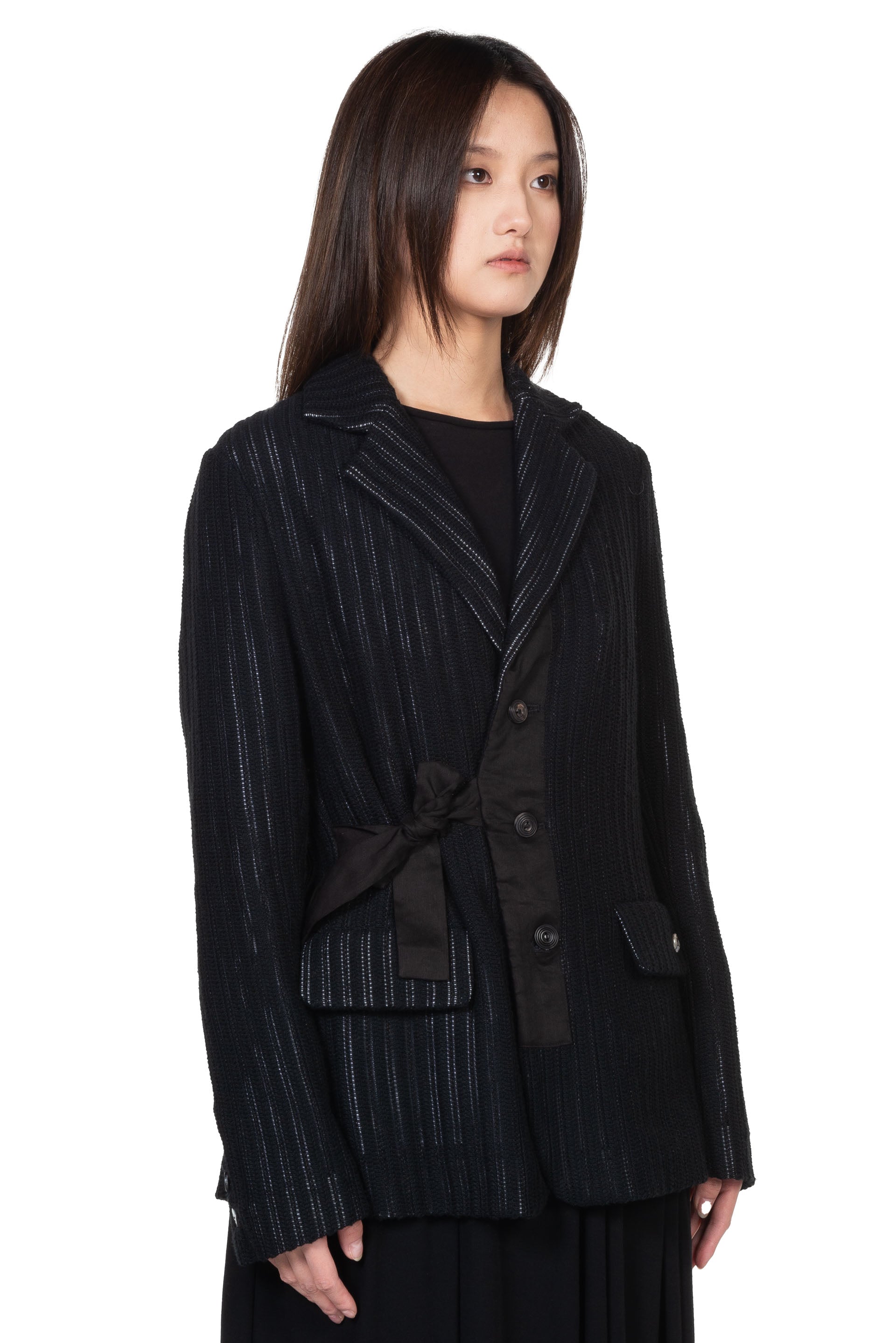 A Tentative Atelier aims to explore artistic handicraft elements and innovative forms and silhouettes on garments combining with neo-vintage effect. The label does not only focus on fashion, it is a platform to encourage and sustain the spirit and tradition in craftsmanship to create new form as seen with the Layered Knitted Jacket.