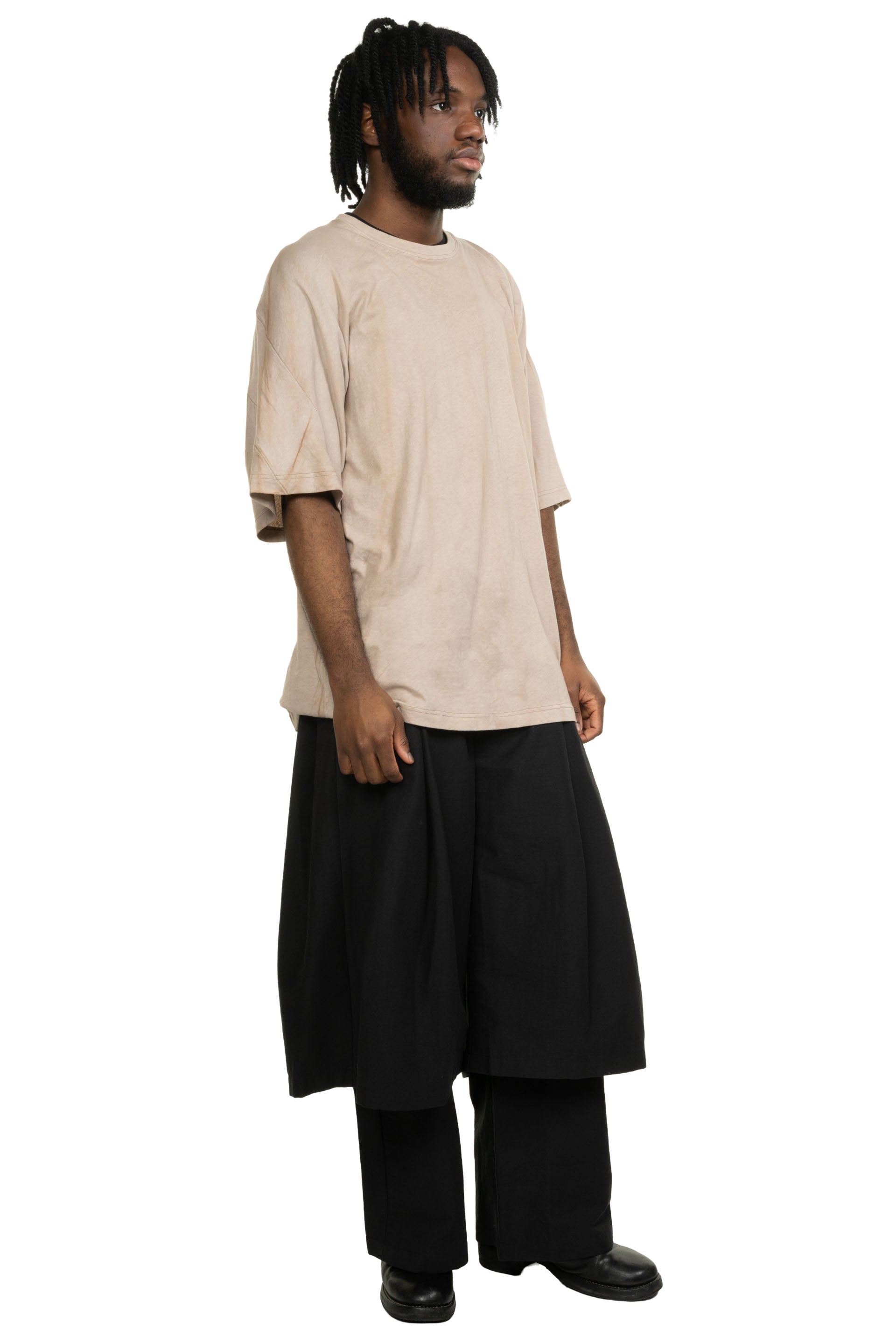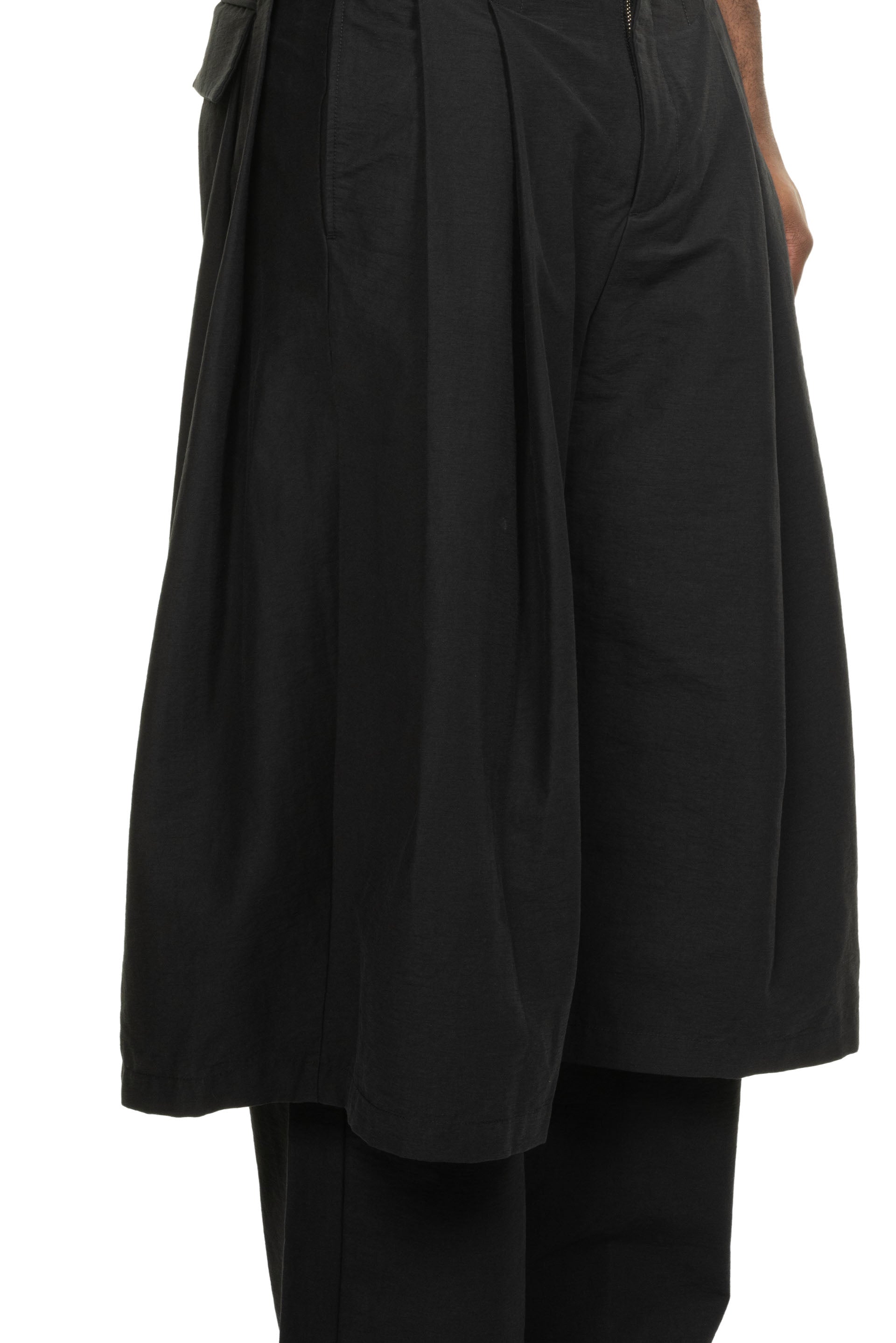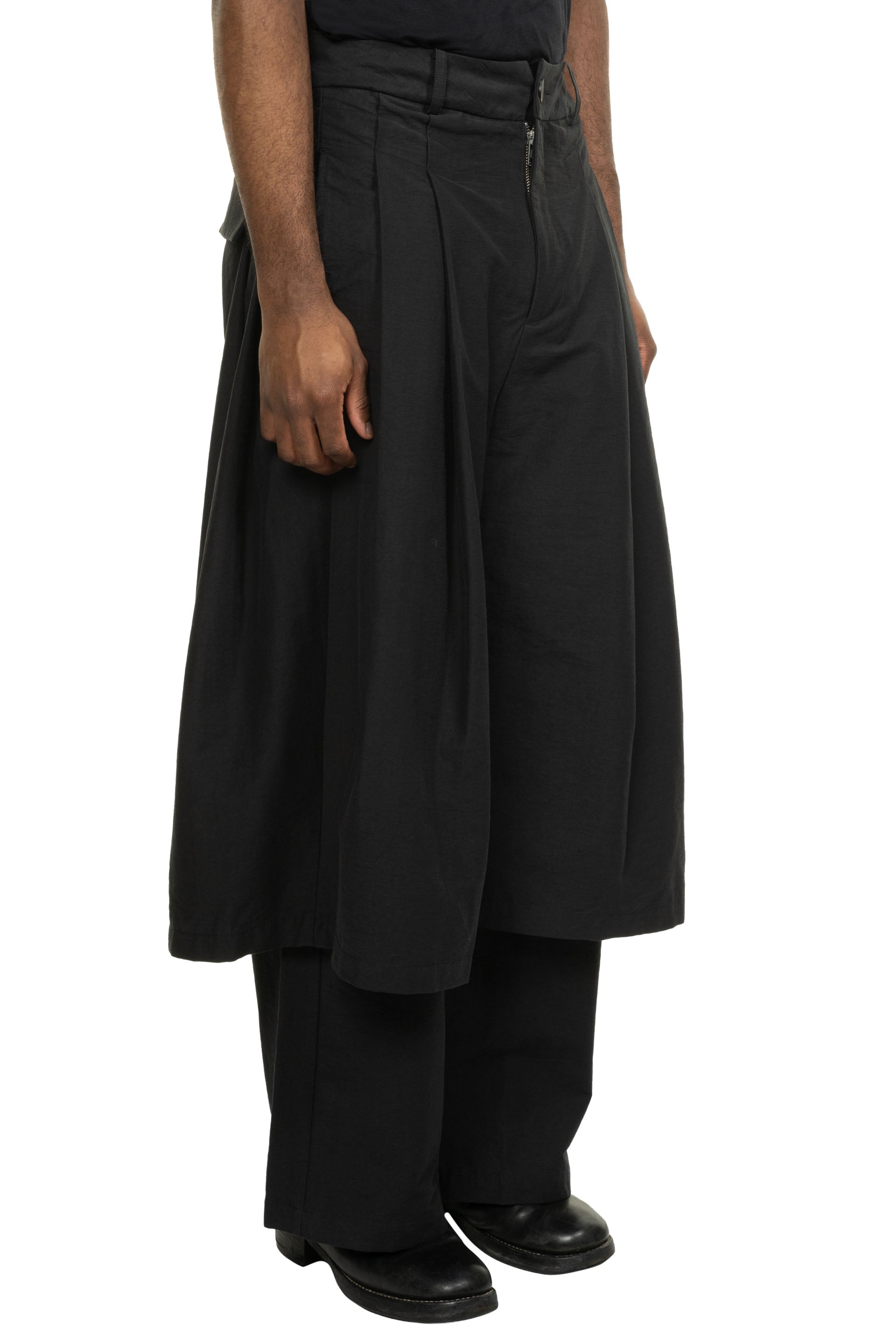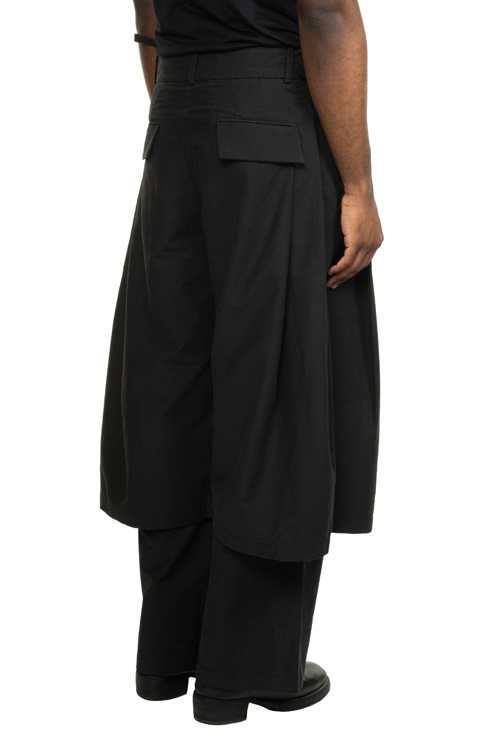 ATTEMPT reconstructs different styles and elements to create a new aesthetic system. By taking a more experimental approach to creation and production, which involves an understanding of the past and the current form of society, Attempt is creating an aesthetic form that is anchored in the present but different from it. It must ultimately be a product that cannot be defined as seen with the Layered panel Pants Black.
