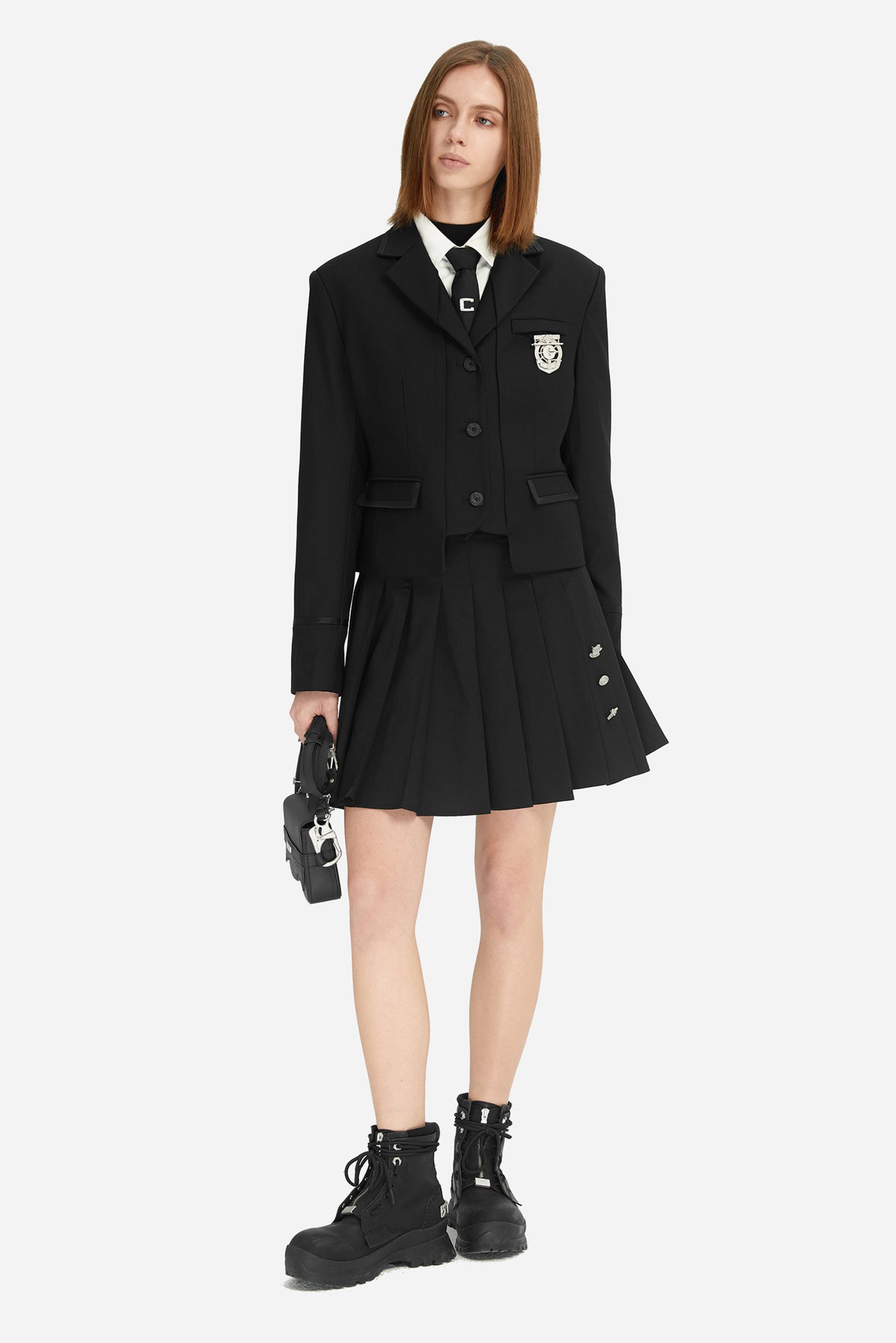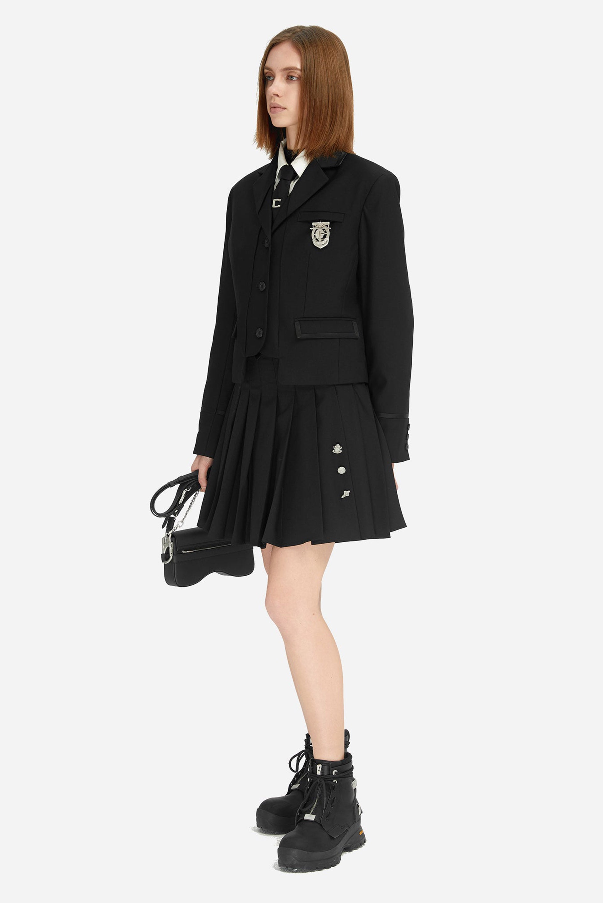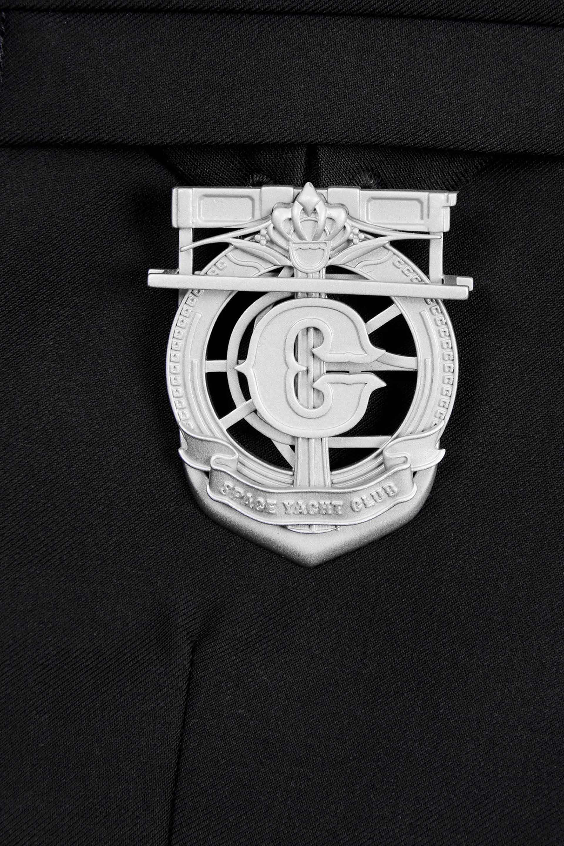C2H4 concept ranges from hypothetical space scientists producing sport and streetwear-inspired designs creating an intergalactic underground culture. Using her studio as a laboratory, Chen’s meticulously elevates wardrobe cornerstones as seen with the Layering Badged Tailored Jacket