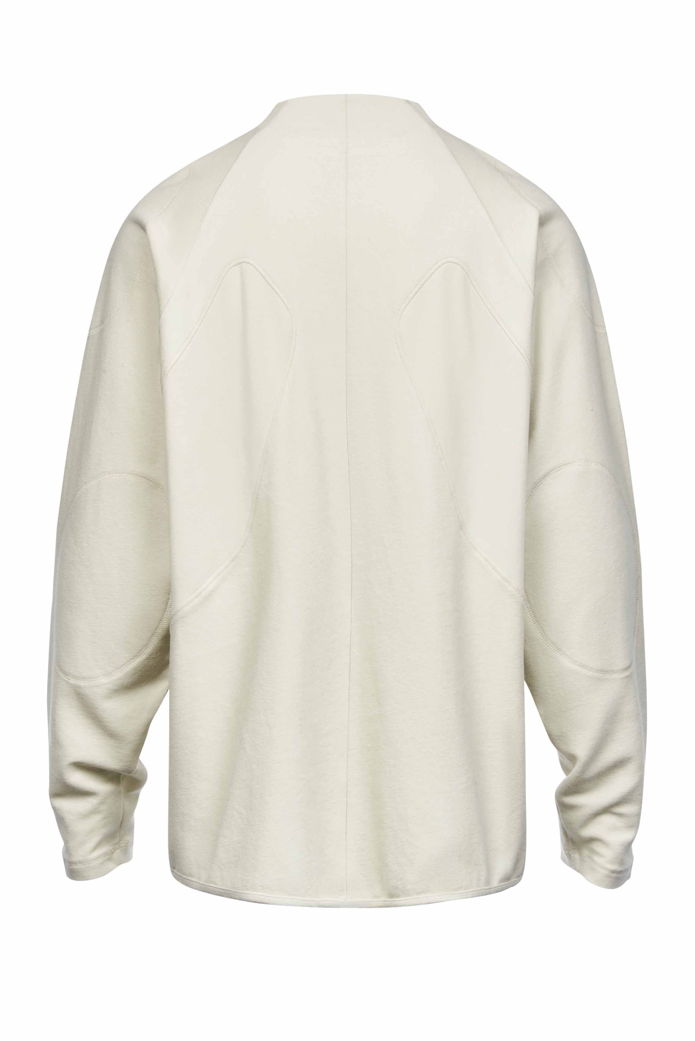 Long sleeves. Signature round collar. Patchwork details throughout. Mix of textural fabric.